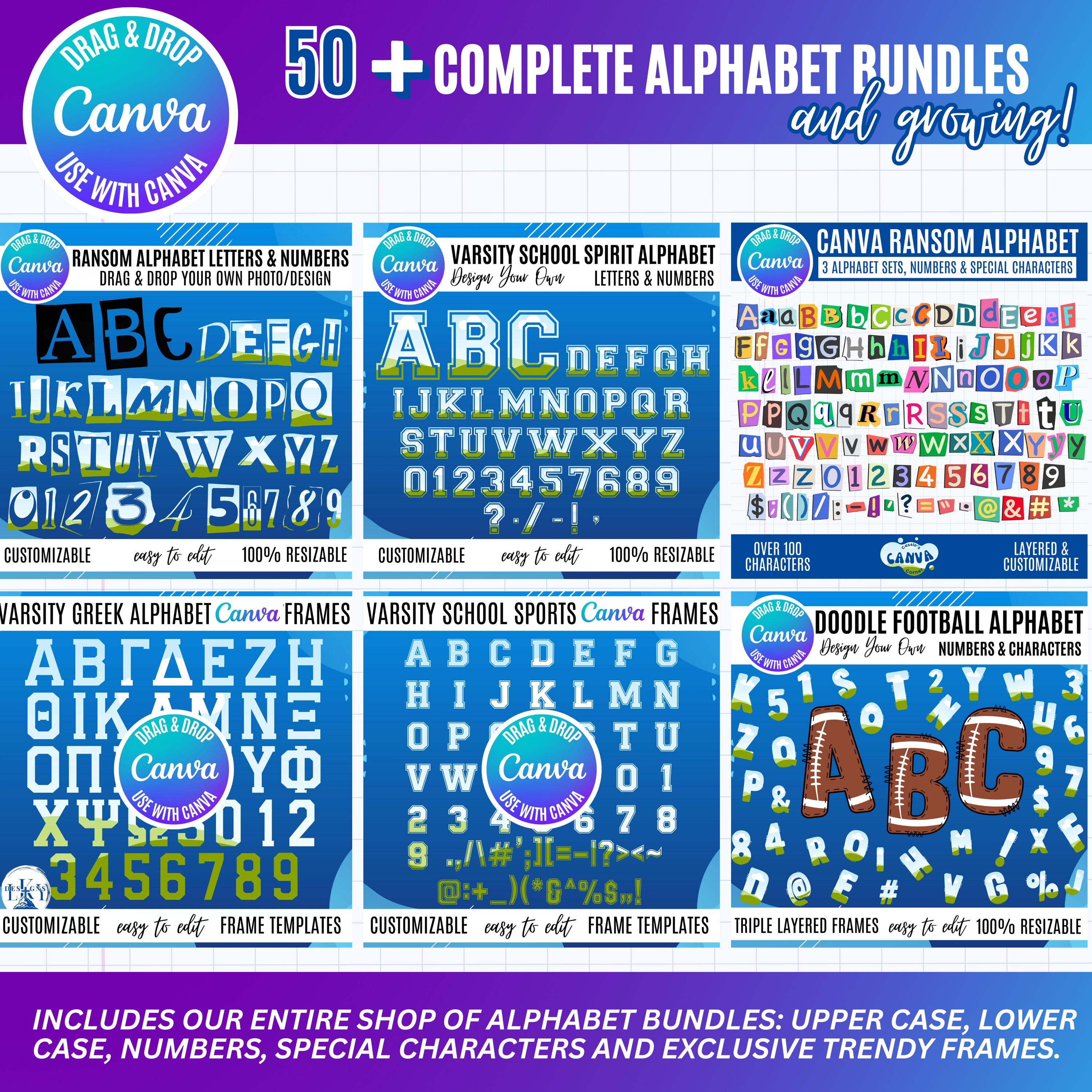 *** This listing offers a digital download, allowing you to access your files right away. Because this is a digital product, no physical items will be mailed to you. *** The images provided in this listing serve as examples of what you can create independently. *** The colors and resolution may differ from one screen or printer to another. *** For alphabet Canva frames, please note that these are NOT an installable font, it is a CANVA FRAME TEMPLATE.