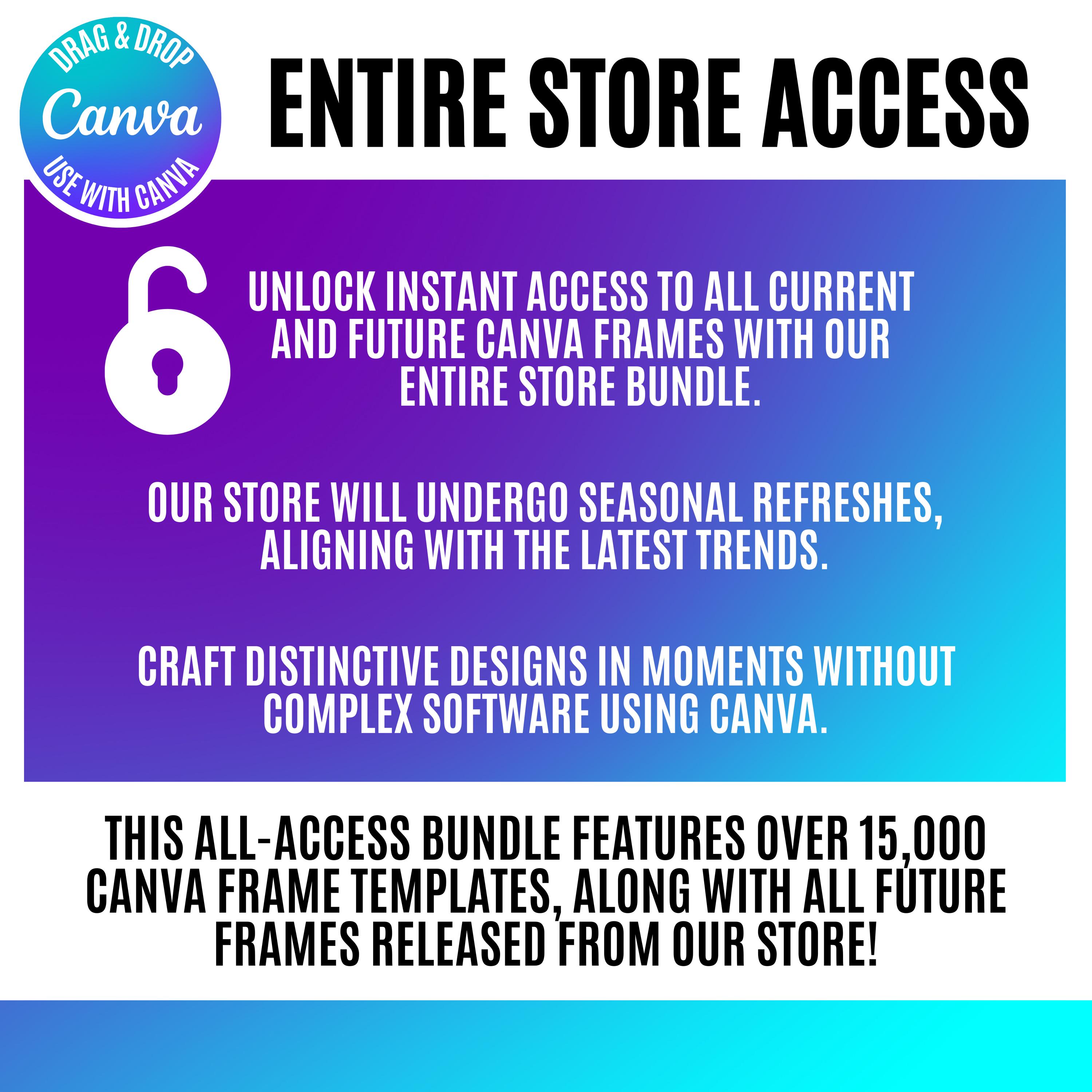 With a one-time payment, our All-Access Canva bundle offers you instant access to our entire shop, along with all future Canva frames that are added to our shop. Enjoy an incredible discount of over 100% compared to purchasing the Canva frames separately. Don't miss out on the current low All Access Pricing available in our shop!