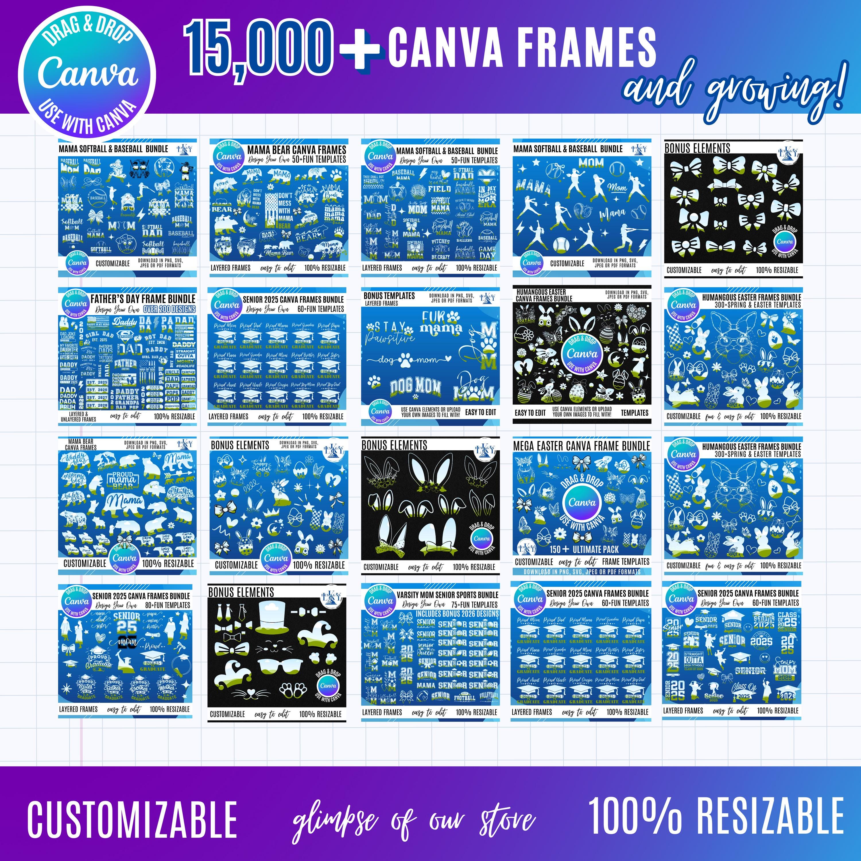 *** With more than 15,000 Canva frames **currently** at your fingertips, you'll have access to the entire collection of Canva Image Frames available in our shop. Plus, you'll receive access to all new frames that are continually being added to our collection.