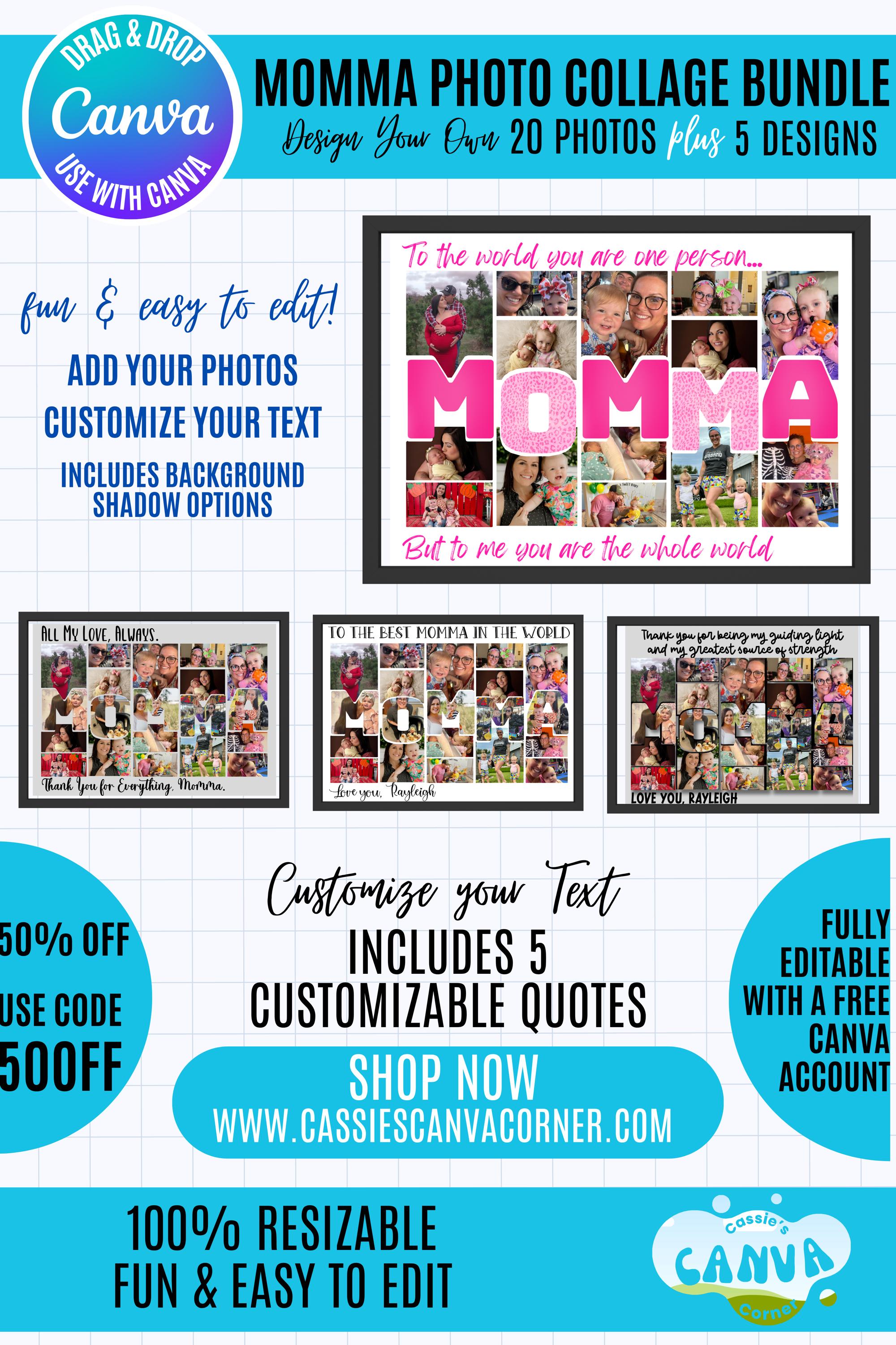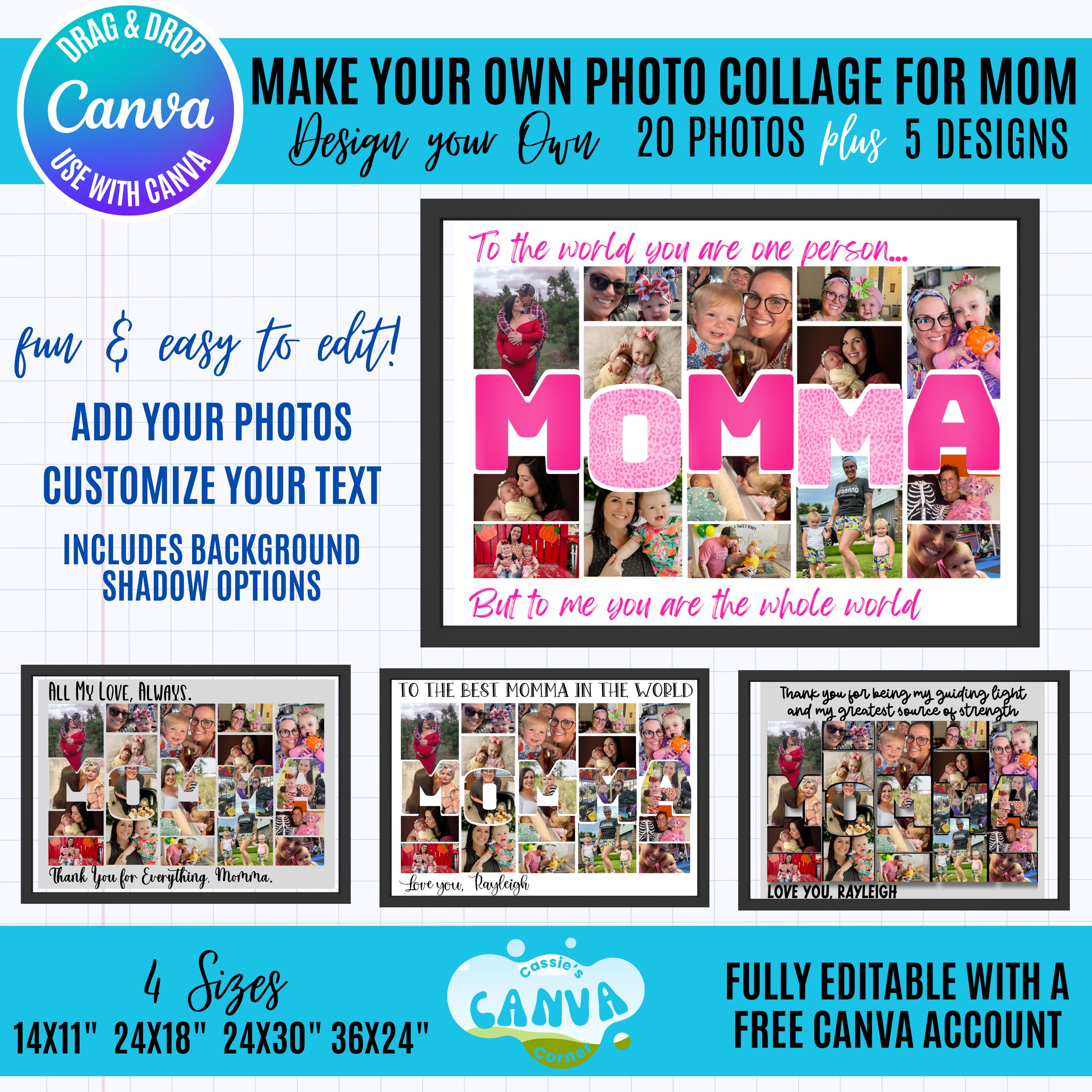 📝 Celebrate Mom with a personalized photo collage she’ll treasure forever! This Canva Momma 20-Picture Photo Collage Template is easy to customize and makes the perfect keepsake for Father’s Day, birthdays, or just because. Designed with love and simplicity in mind, this collage includes three different heartfelt quote options—so you can choose the message that fits your dad best.