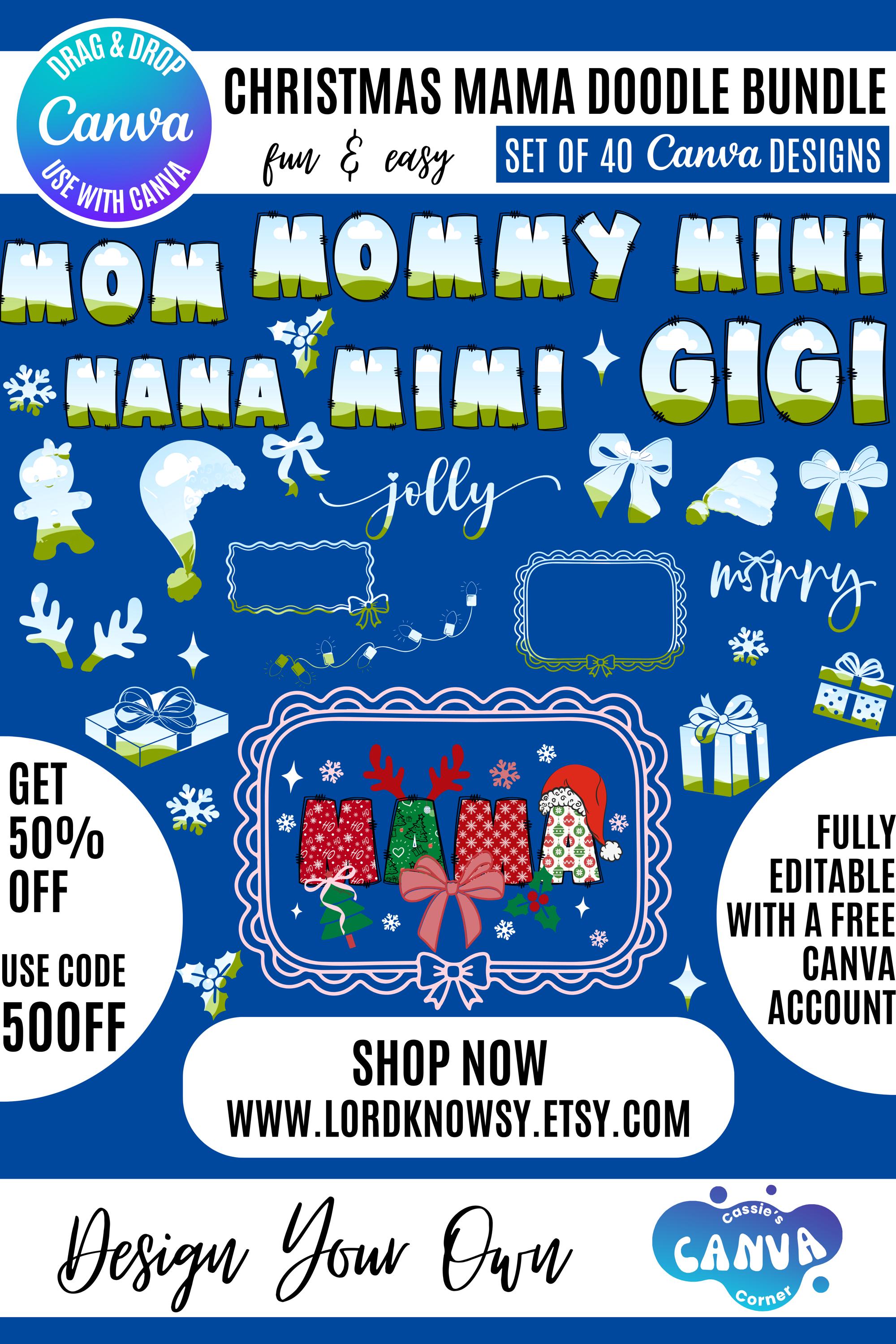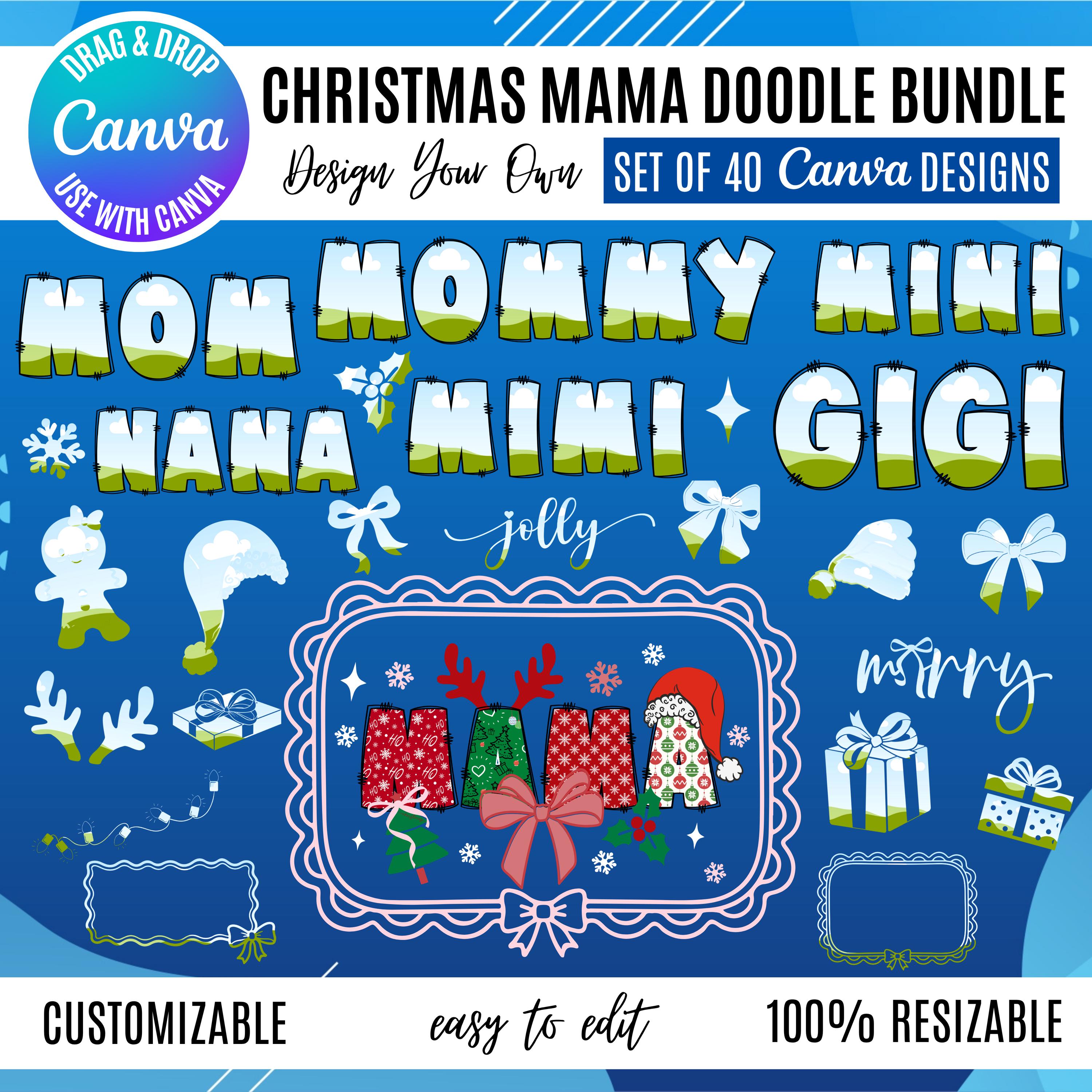 Coquette Mama and Mini Canva Bundle | 40+ Cute Doodle Elements for Mama, Mimi, Mini, Nana, Gigi & Christmas Coquette Designs | Editable Canva Templates
