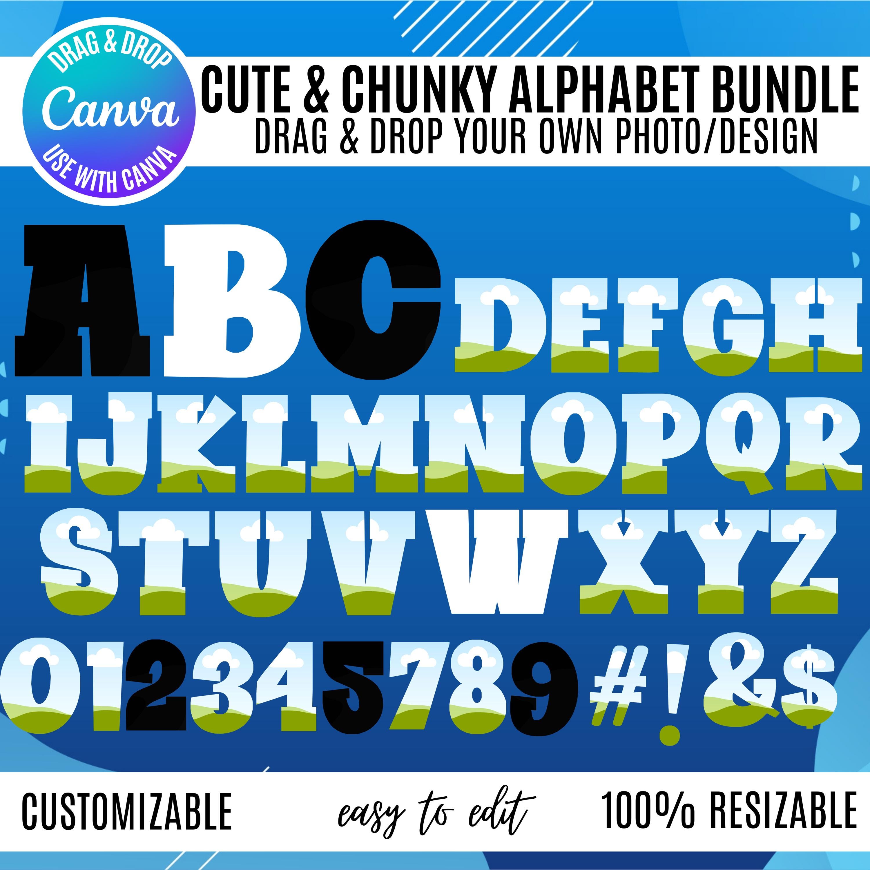 Cute Chunky Alphabet Canva Bundle | Letters, Numbers & Special Characters | All-Season Editable Canva Font Set | Fun Bold Design Elements
