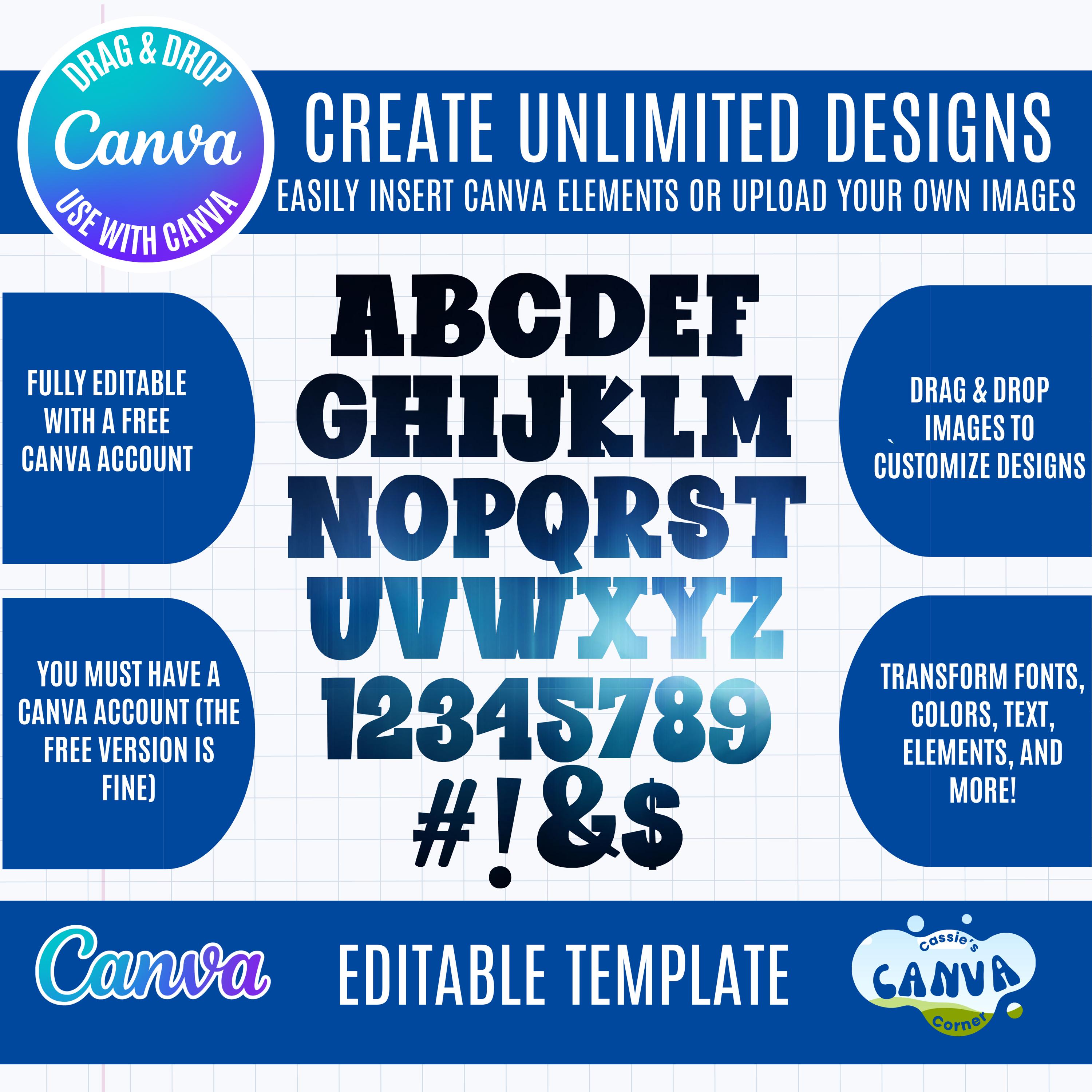 Chunky Alphabet Canva Frame Template: Bold Letters & Numbers (Digital Download)