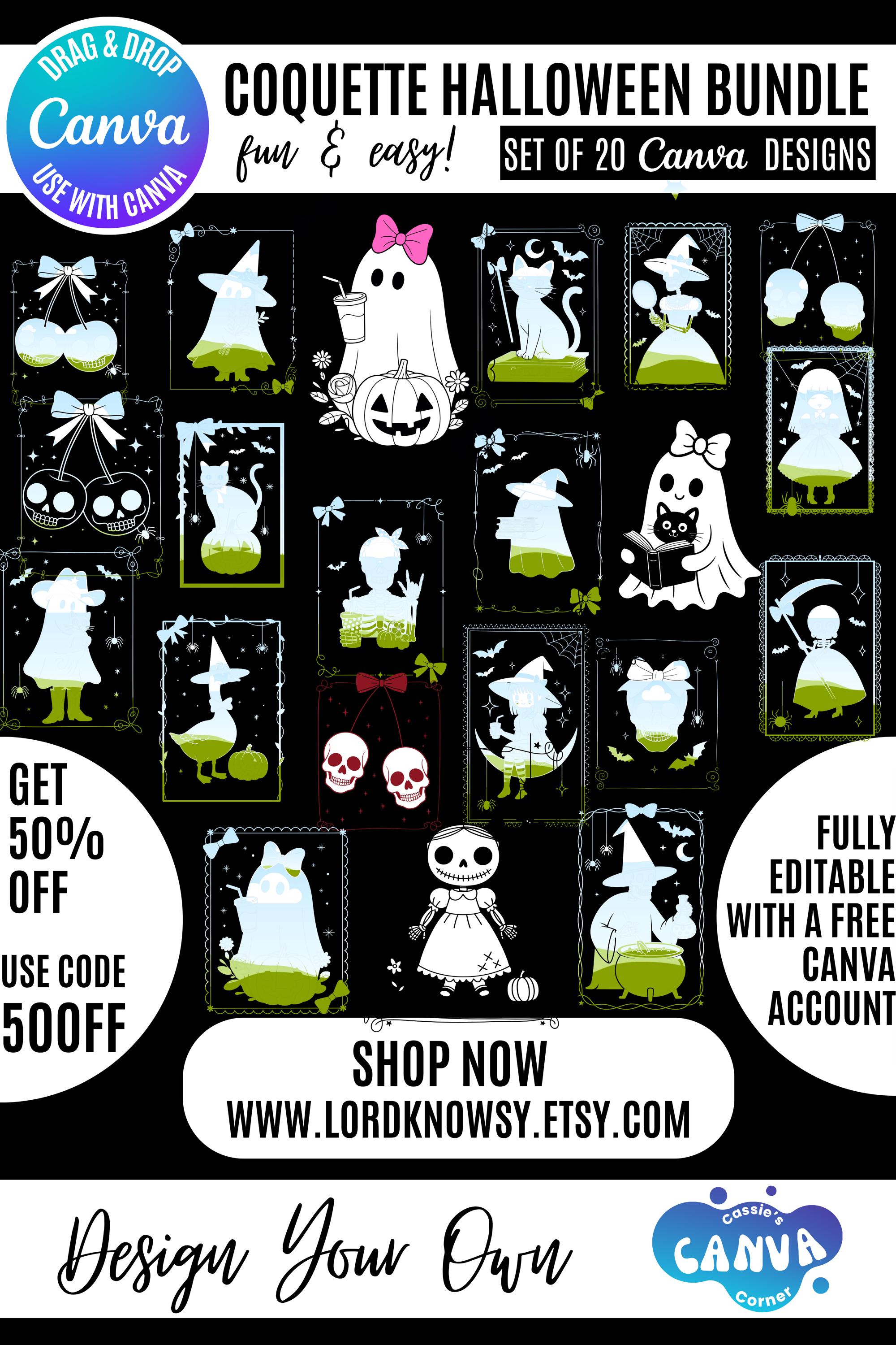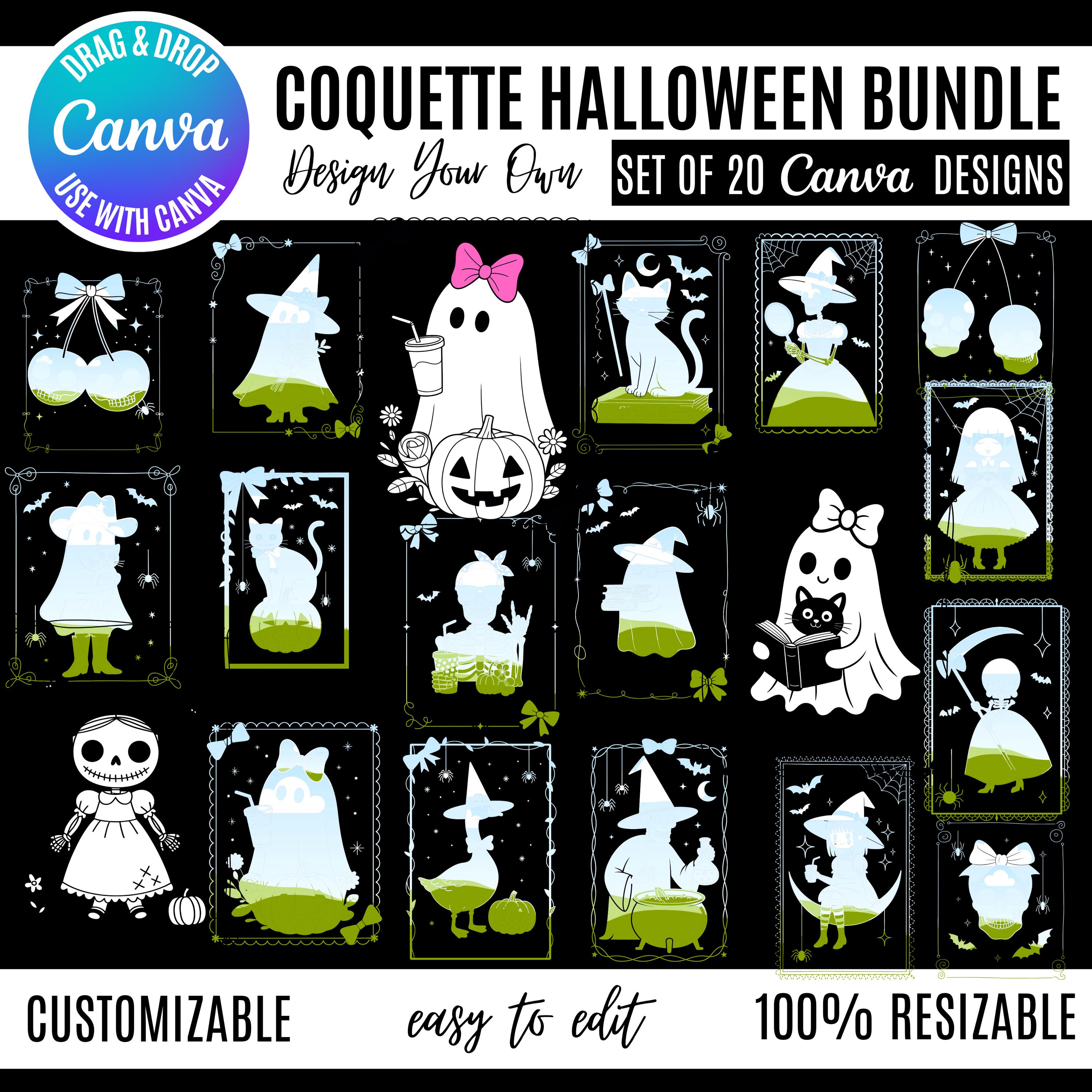 🎀🎃 Coquette Halloween Canva Bundle – Soft, Girly Fall & Halloween Designs! 🍂💕