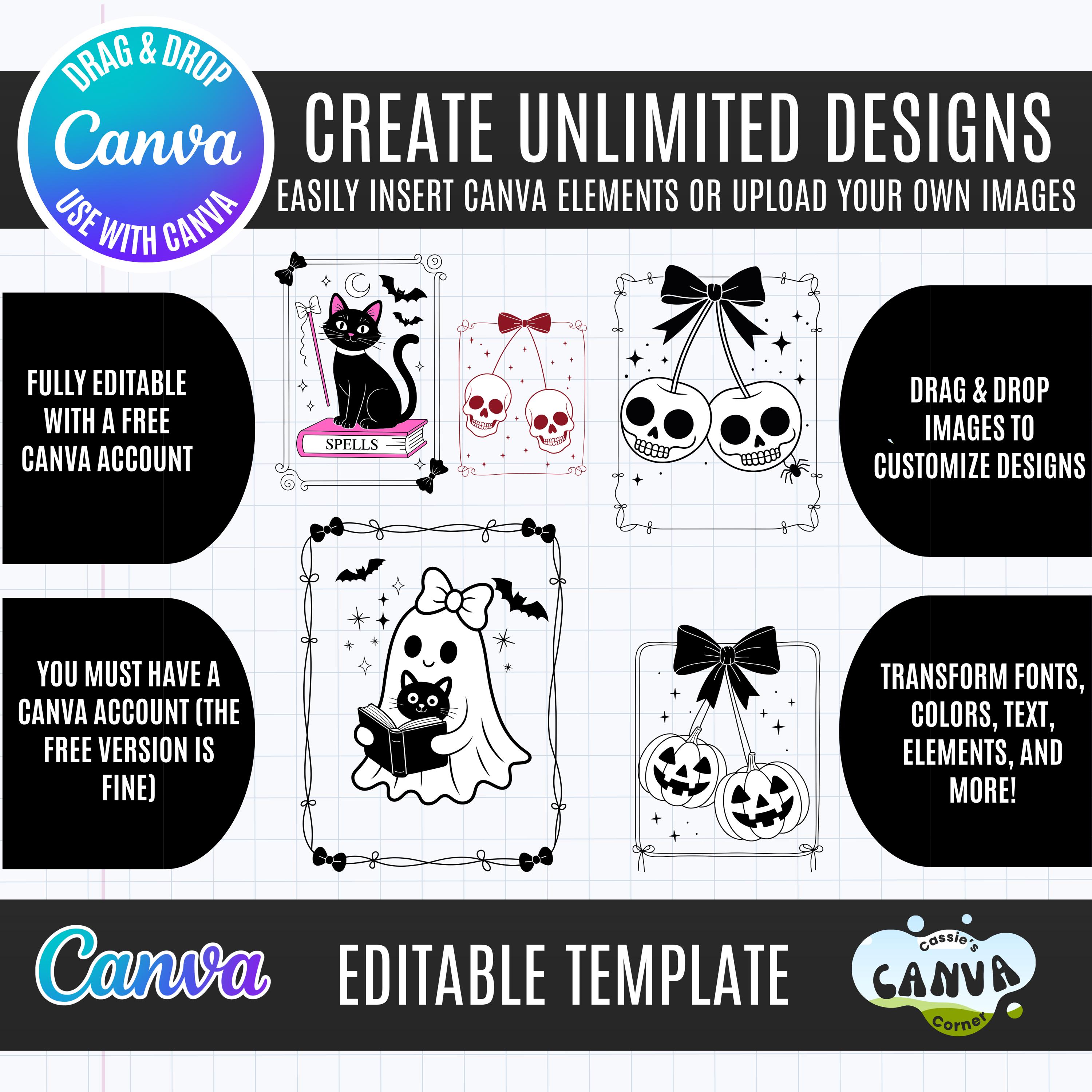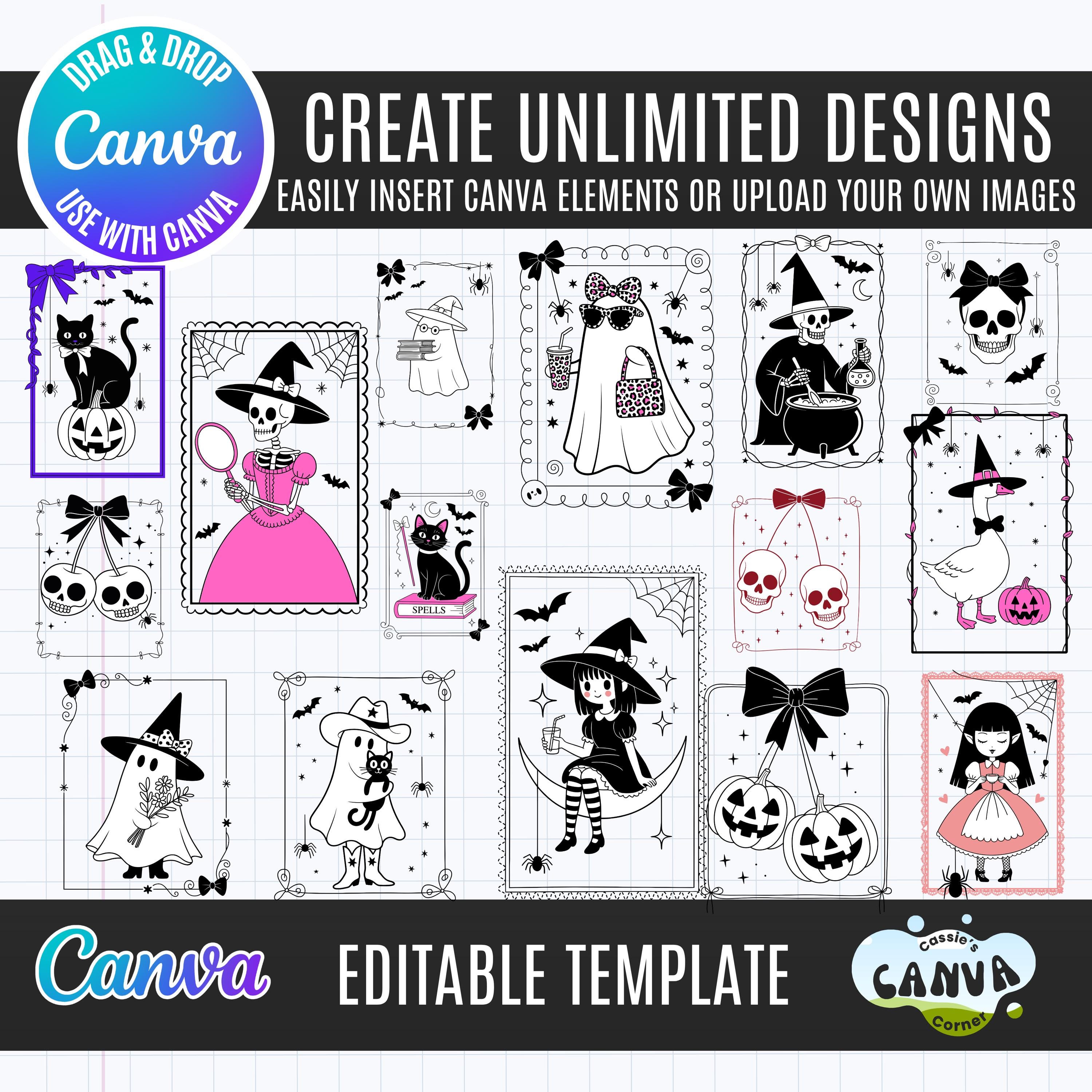 Whether you're a small shop owner or a DIY-loving creator, these templates are easy to edit and ready to add a feminine twist to your autumn and Halloween projects!