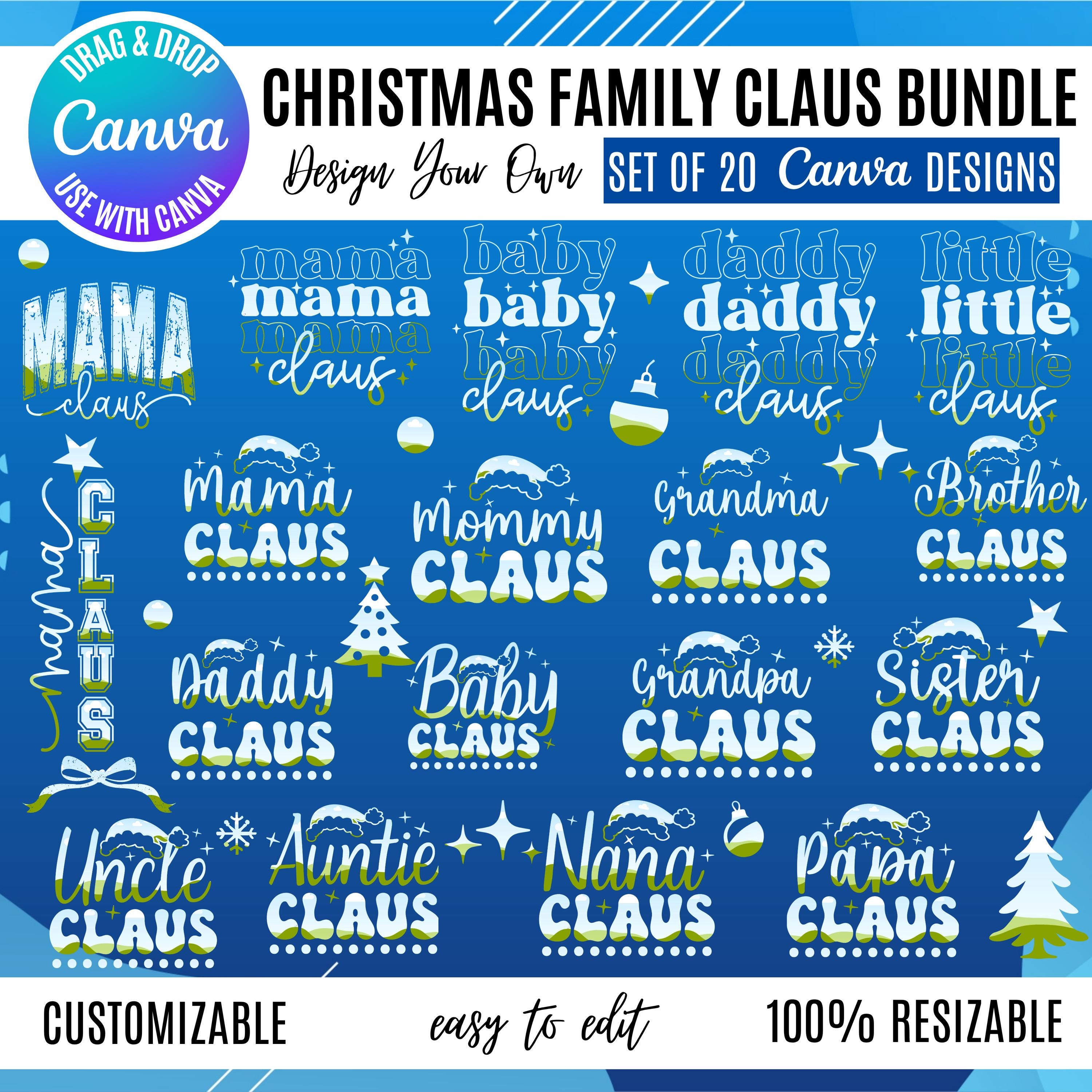 Bring the North Pole magic to your designs with this Matching Claus Family Canva Bundle! 🎁✨