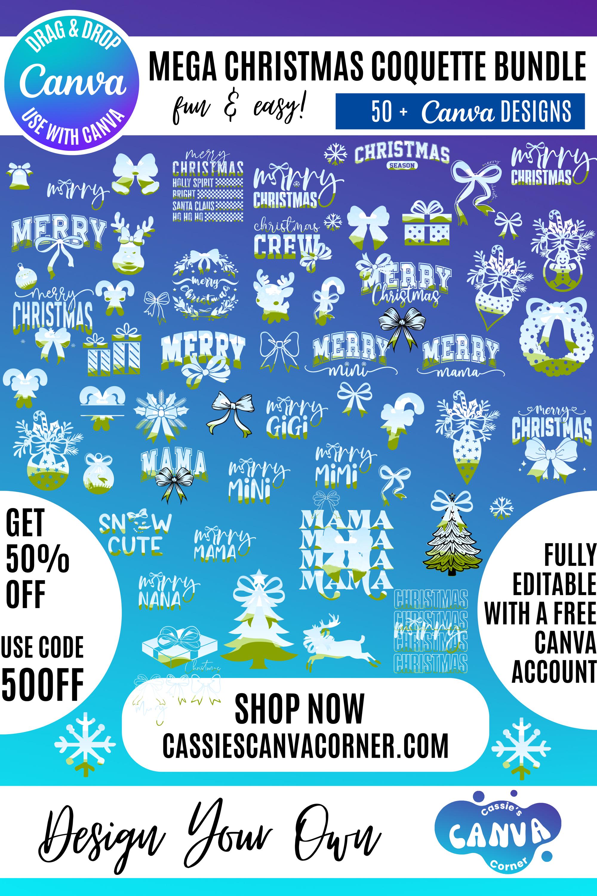Add a sprinkle of pink holiday glam and cozy feminine charm to your Christmas collection with this Mega Coquette Canva Bundle!