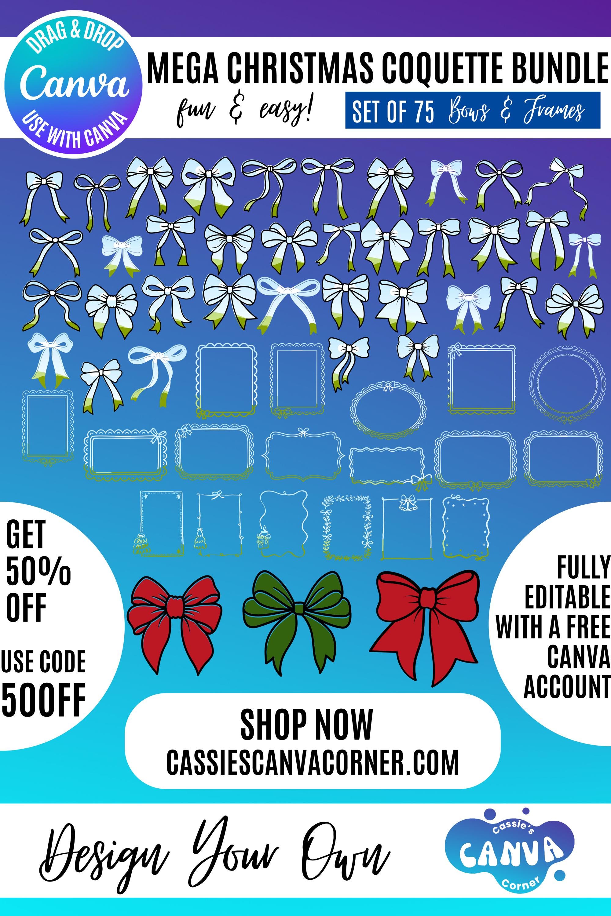 Add a sprinkle of pink holiday glam and cozy feminine charm to your Christmas collection with this Mega Coquette Canva Bundle!