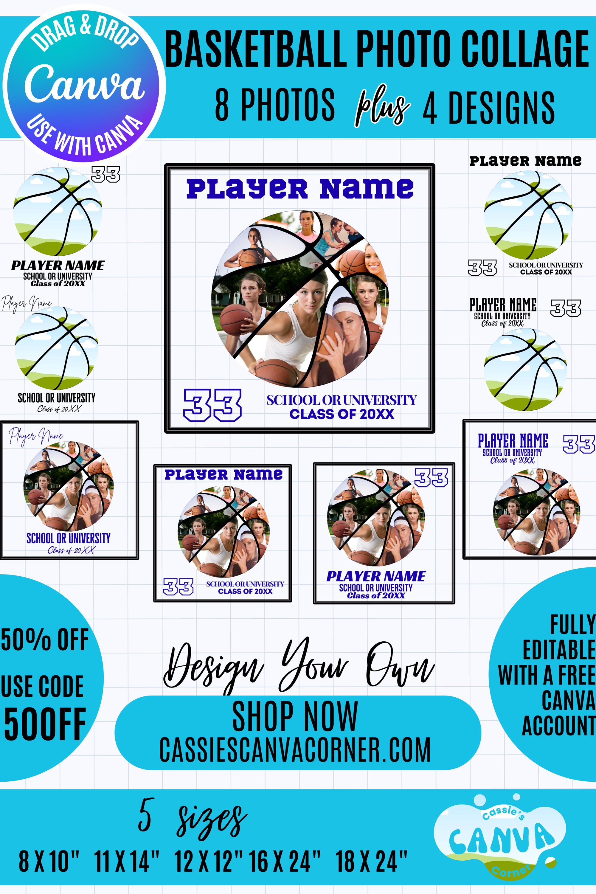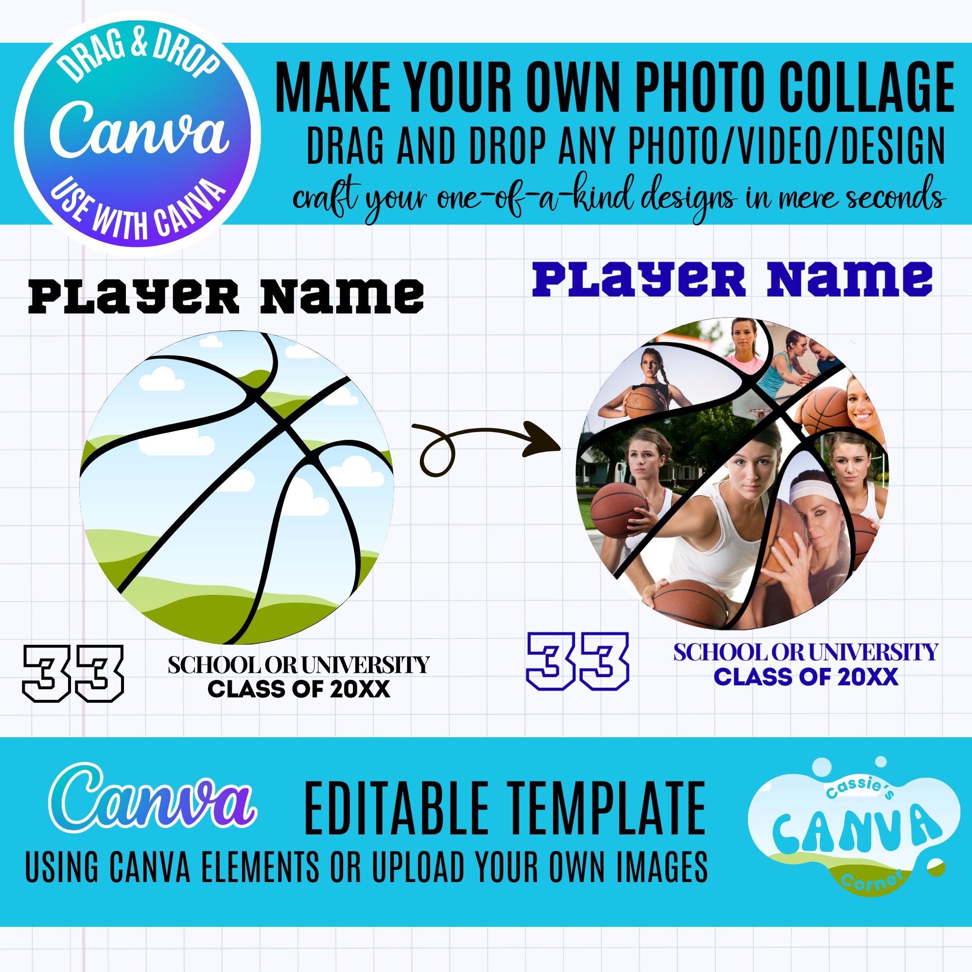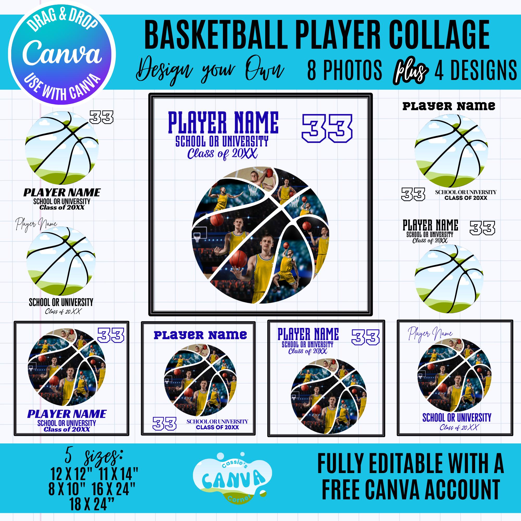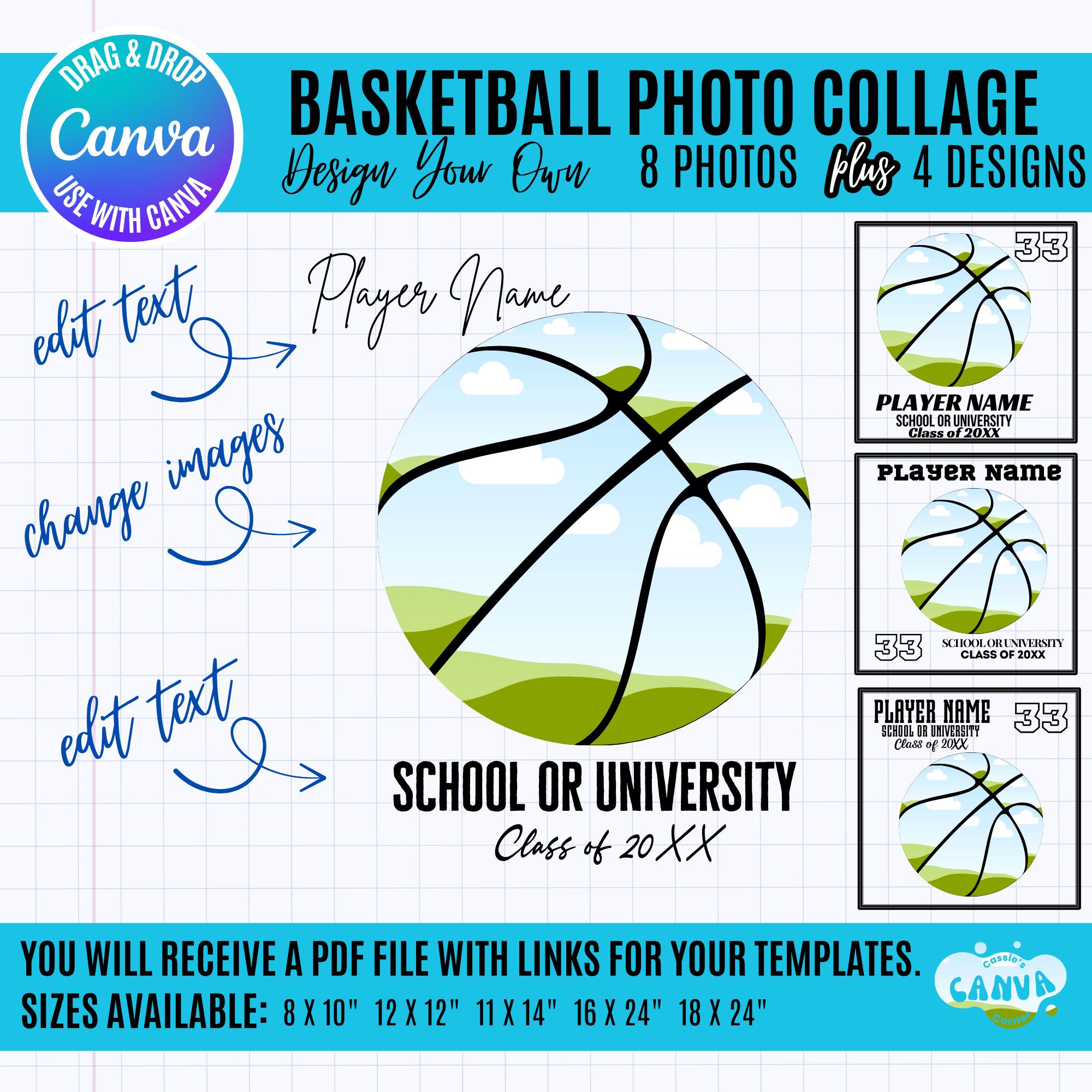 Basketball Photo Collage Canva Bundle | 4 Editable Sports Collage Templates with 8 Photo Placeholders | Senior Night Poster, Athlete Gift, Team Memory Board
