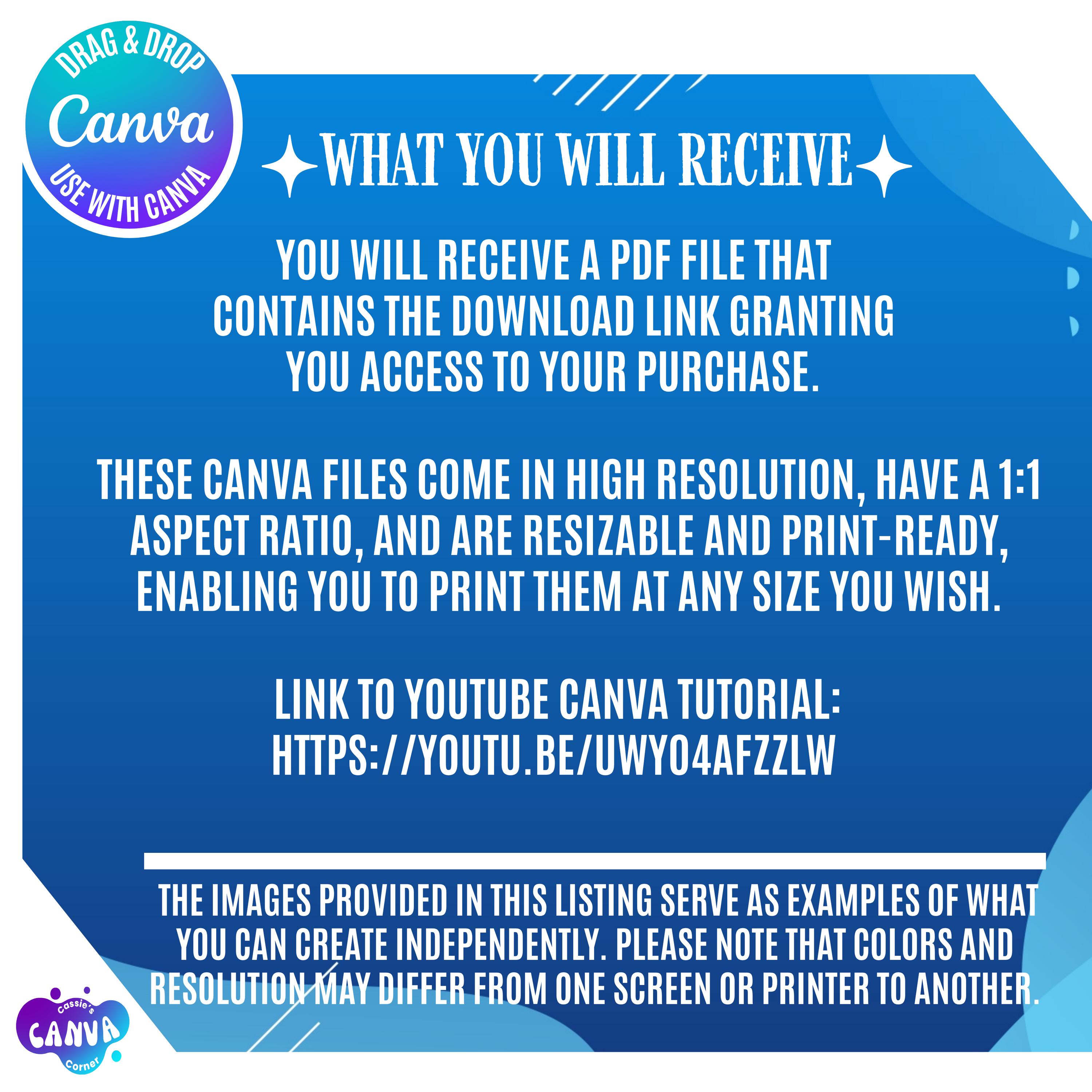You will receive a single PDF containing the link to your purchase download. By clicking on the link, you will gain access to the Canva template. Additionally, one very simple, beginner-friendly tutorial link will be included with your purchase.