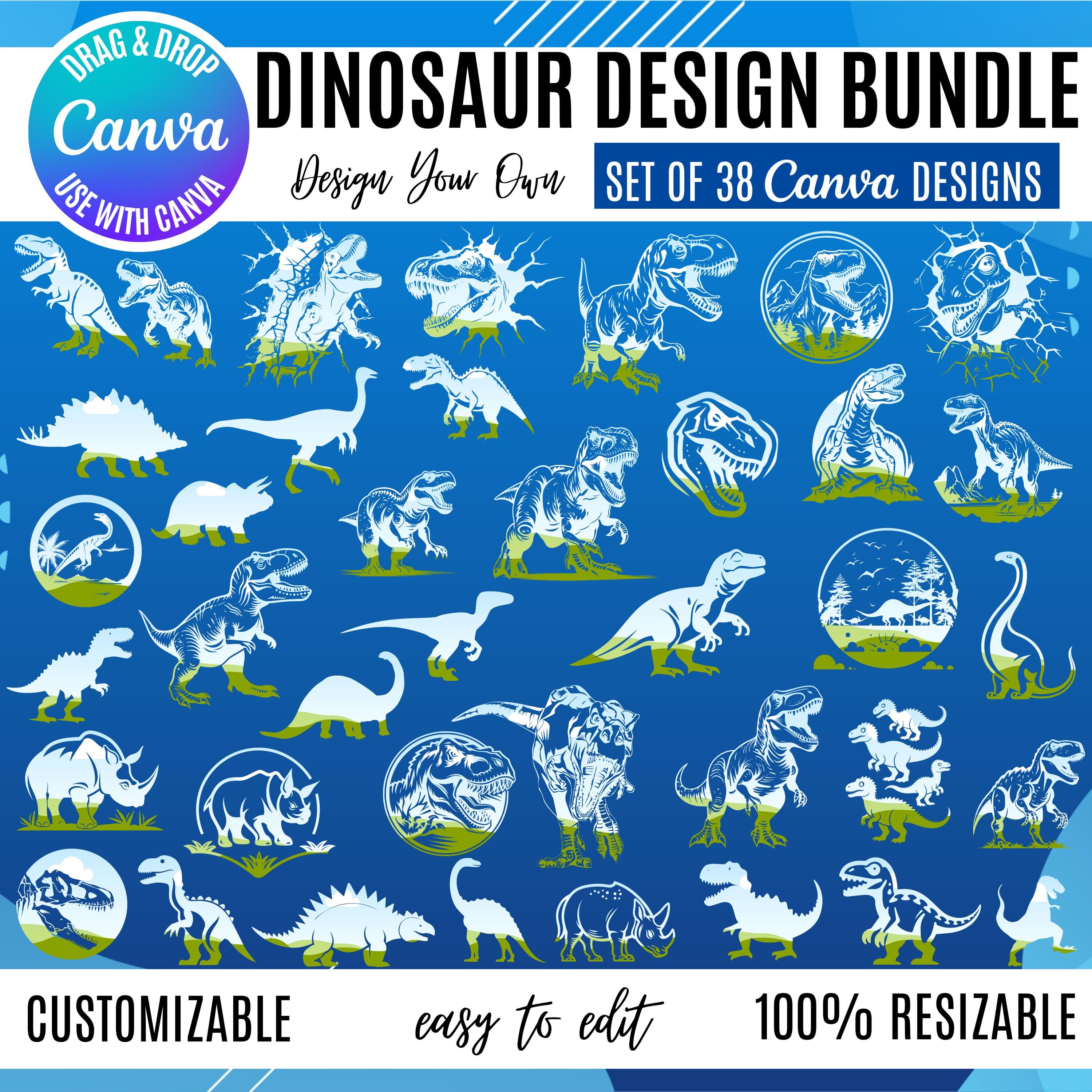 Dinosaur Canva Bundle, Dino Clipart & Illustrations, Editable Canva Templates for Digital Downloads, Canva Dinosaur templates, dinosaur clip