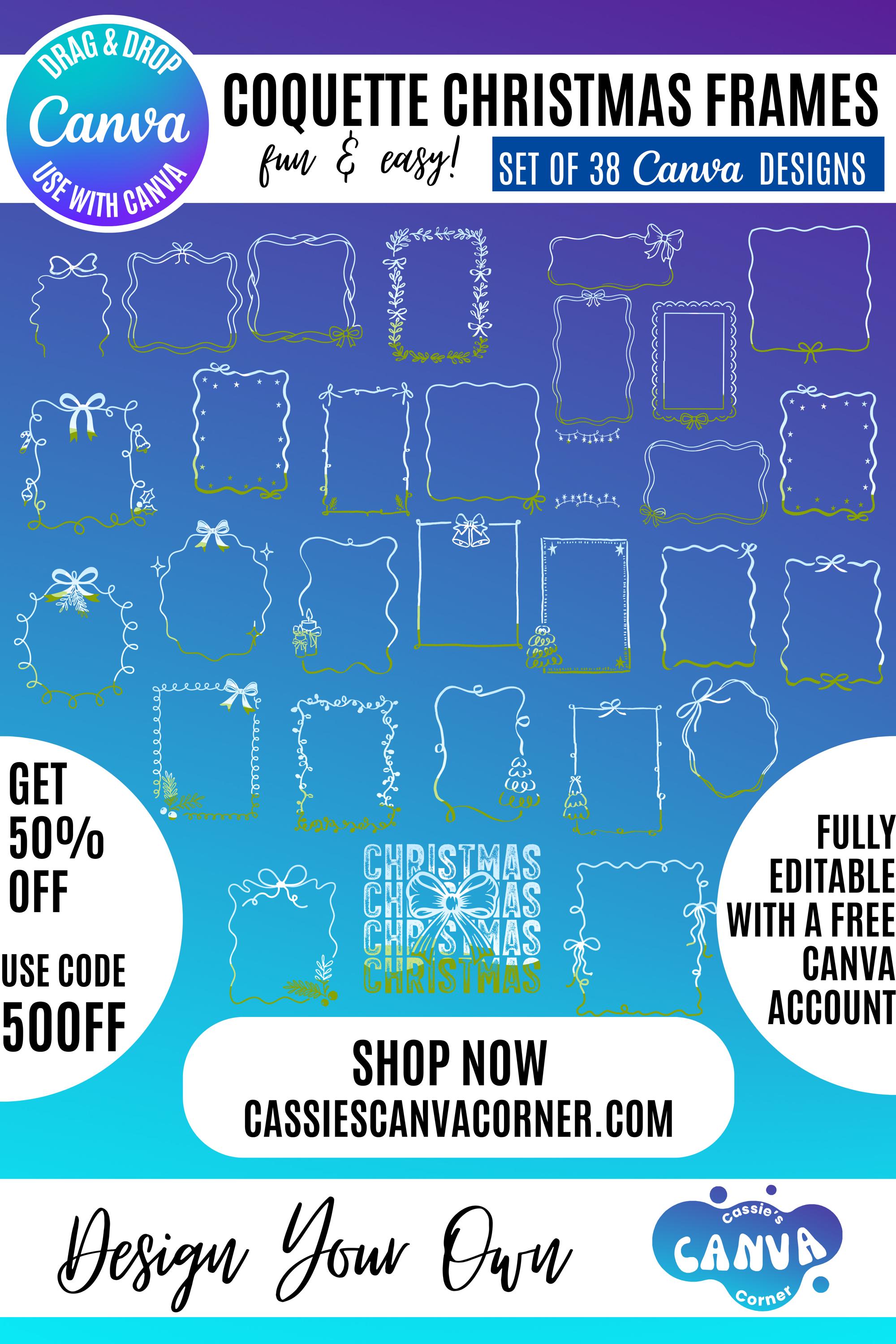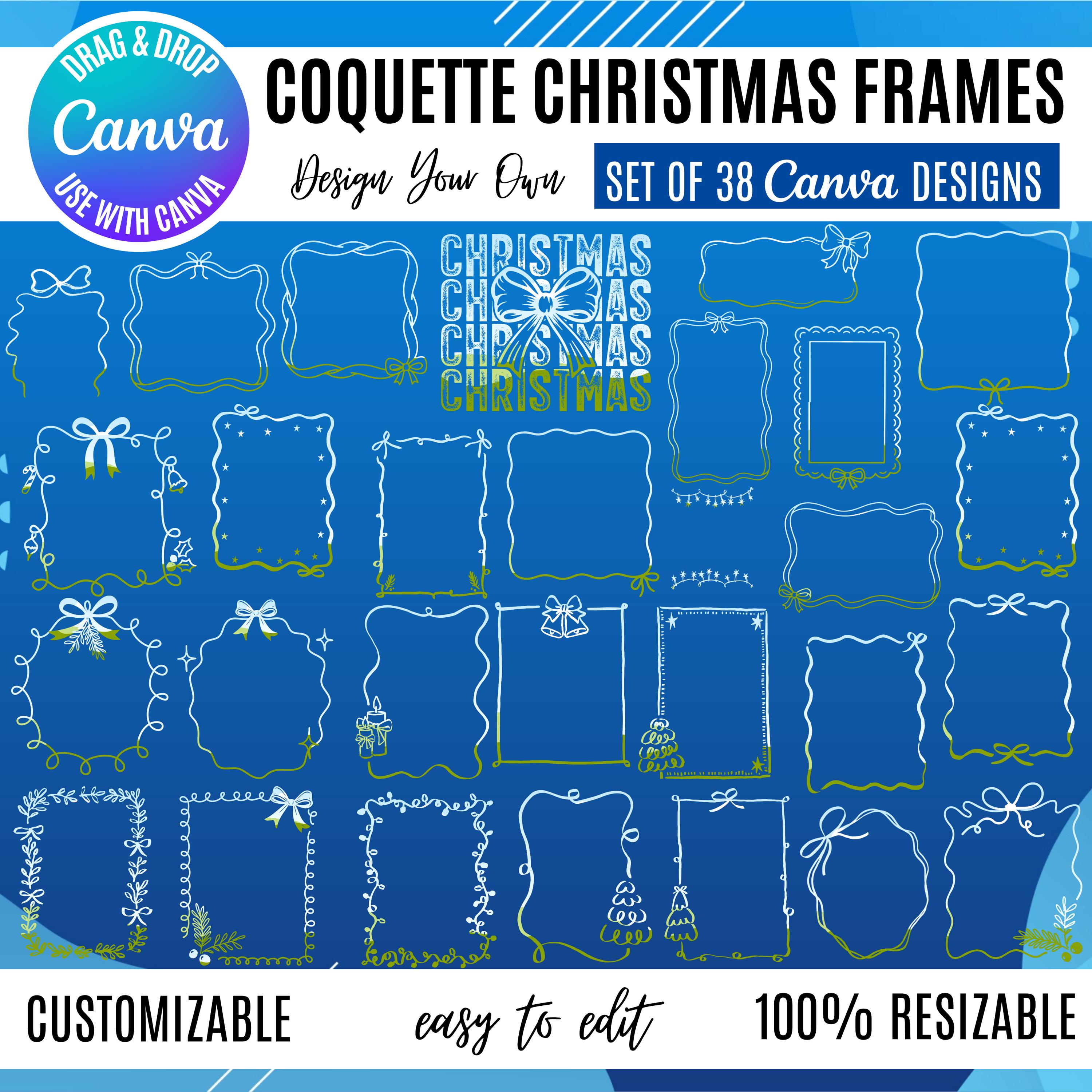 38 Editable Canva Frames in Coquette Christmas style