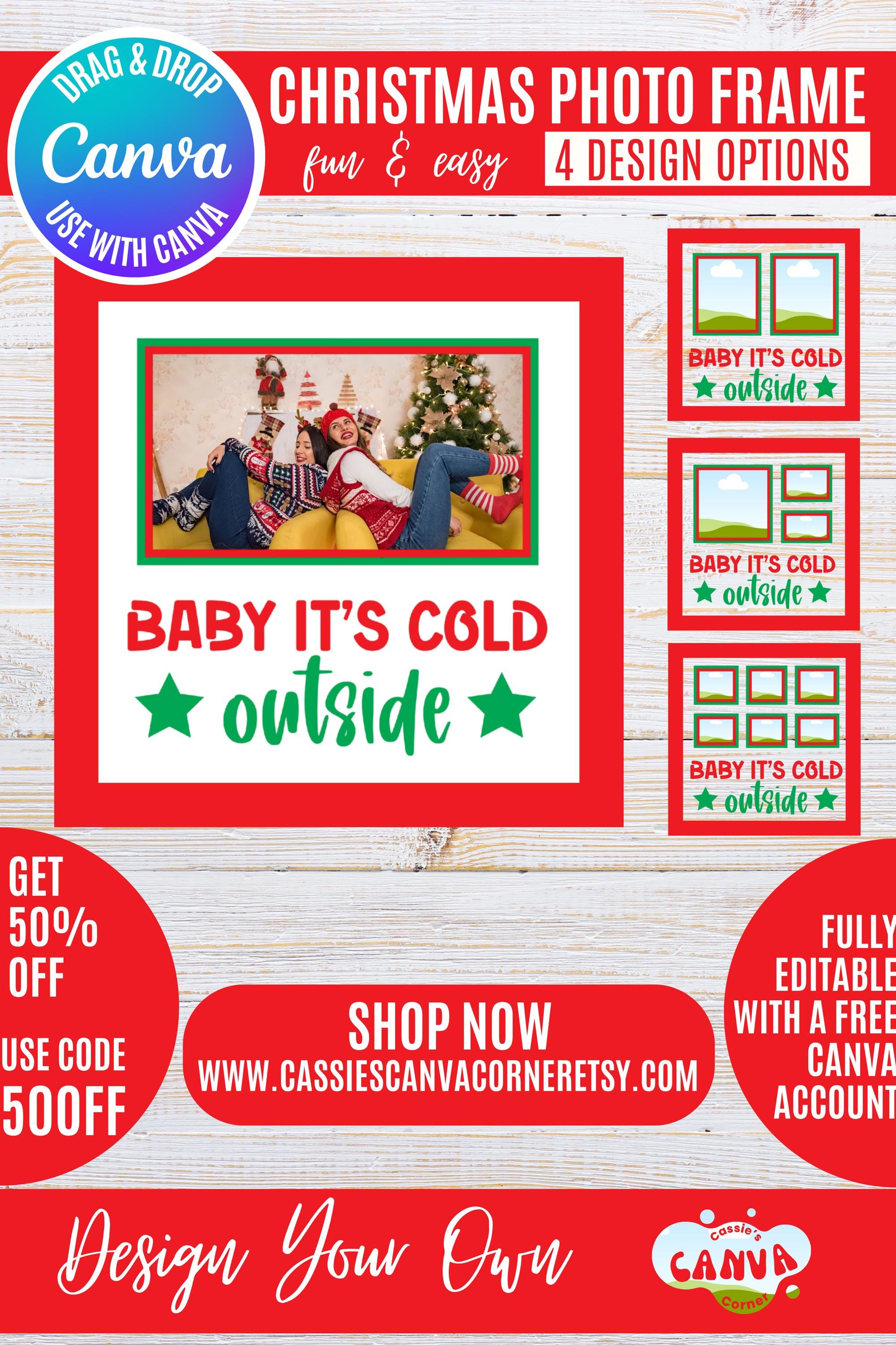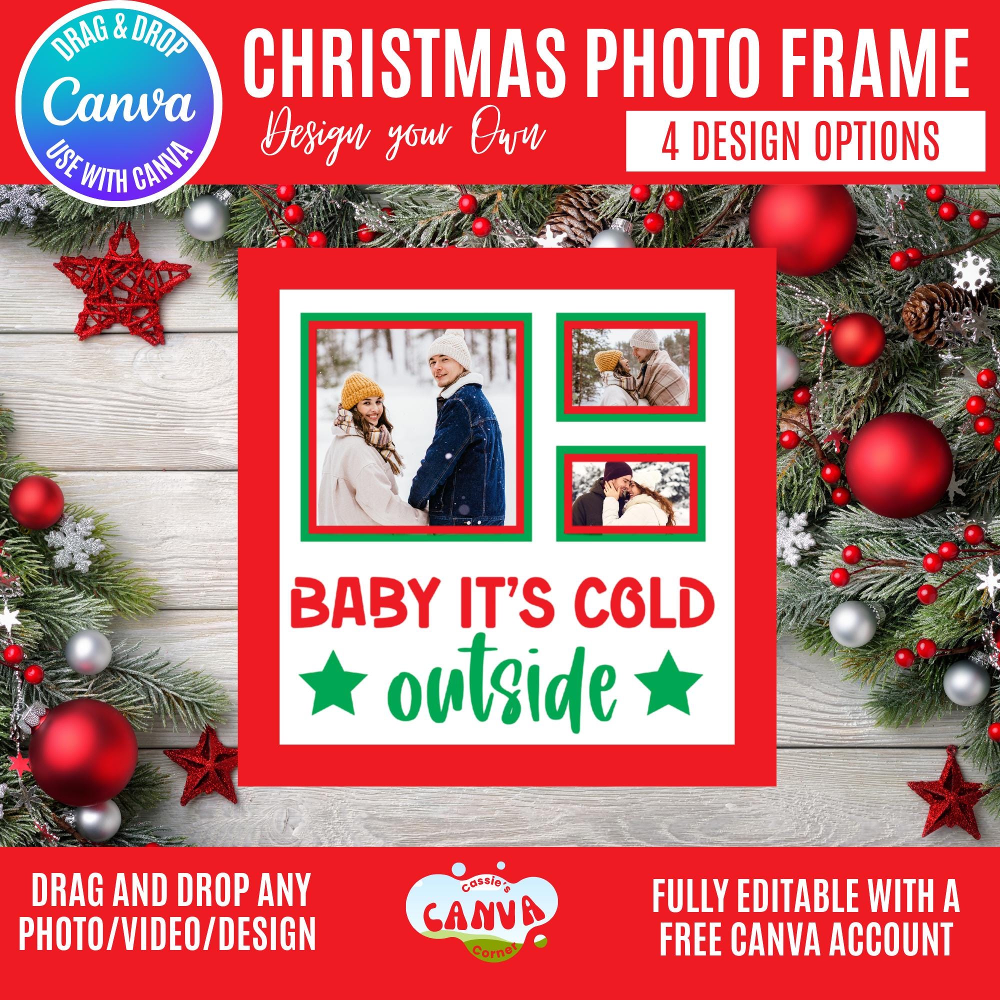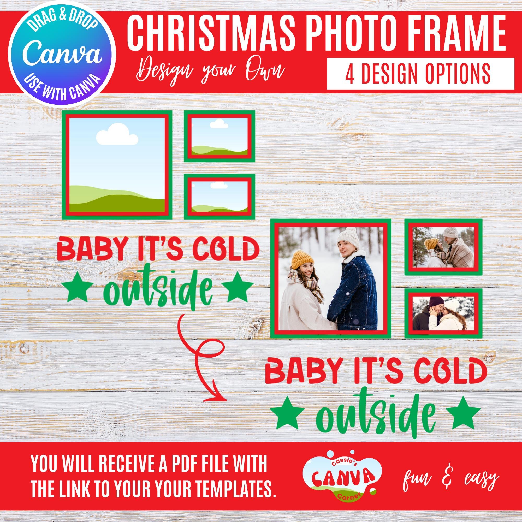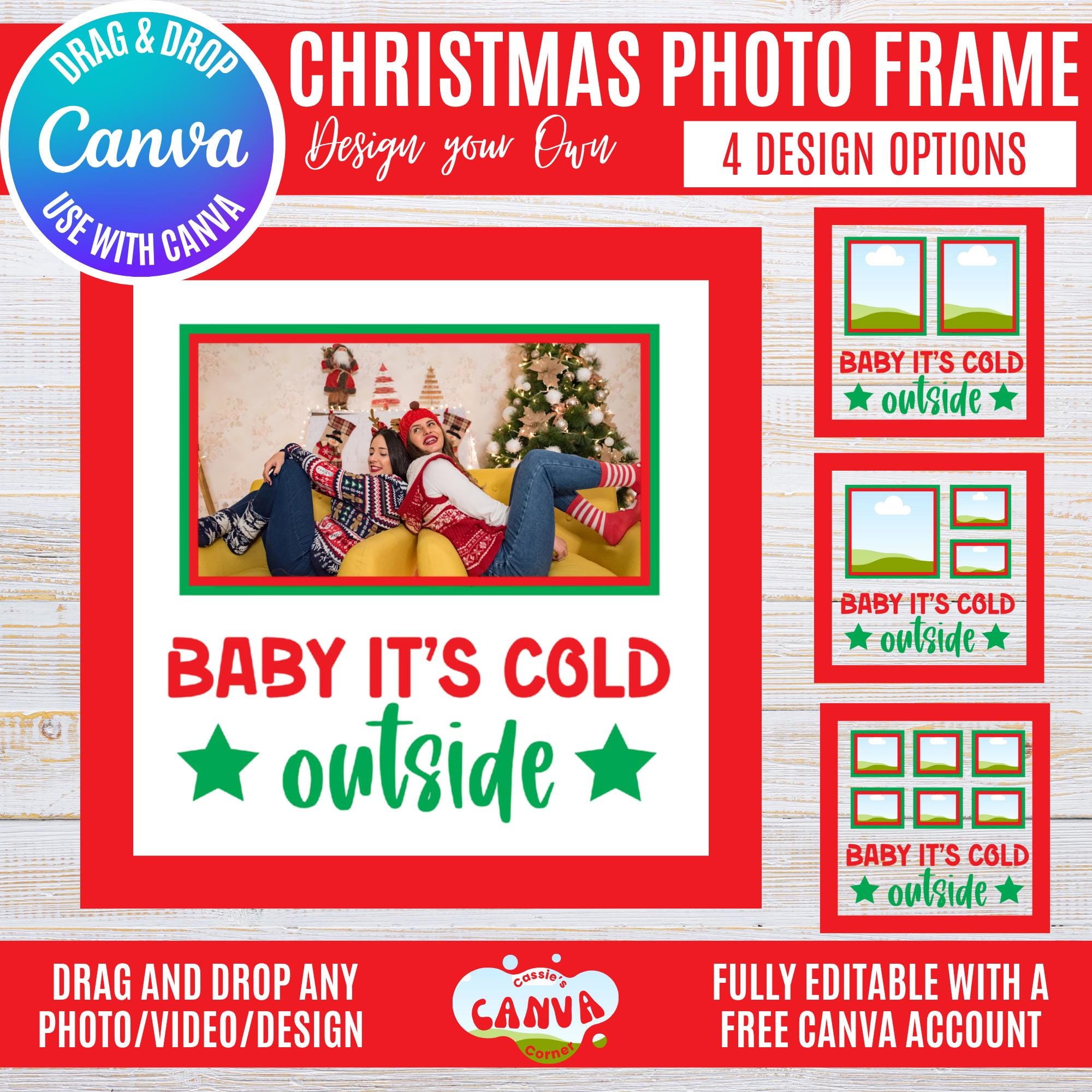 Canva Christmas Photo Frame Bundle | “Baby It’s Cold Outside” Holiday Frames for 1, 2, 3 & 6 Photos | Festive Winter Canva Templates