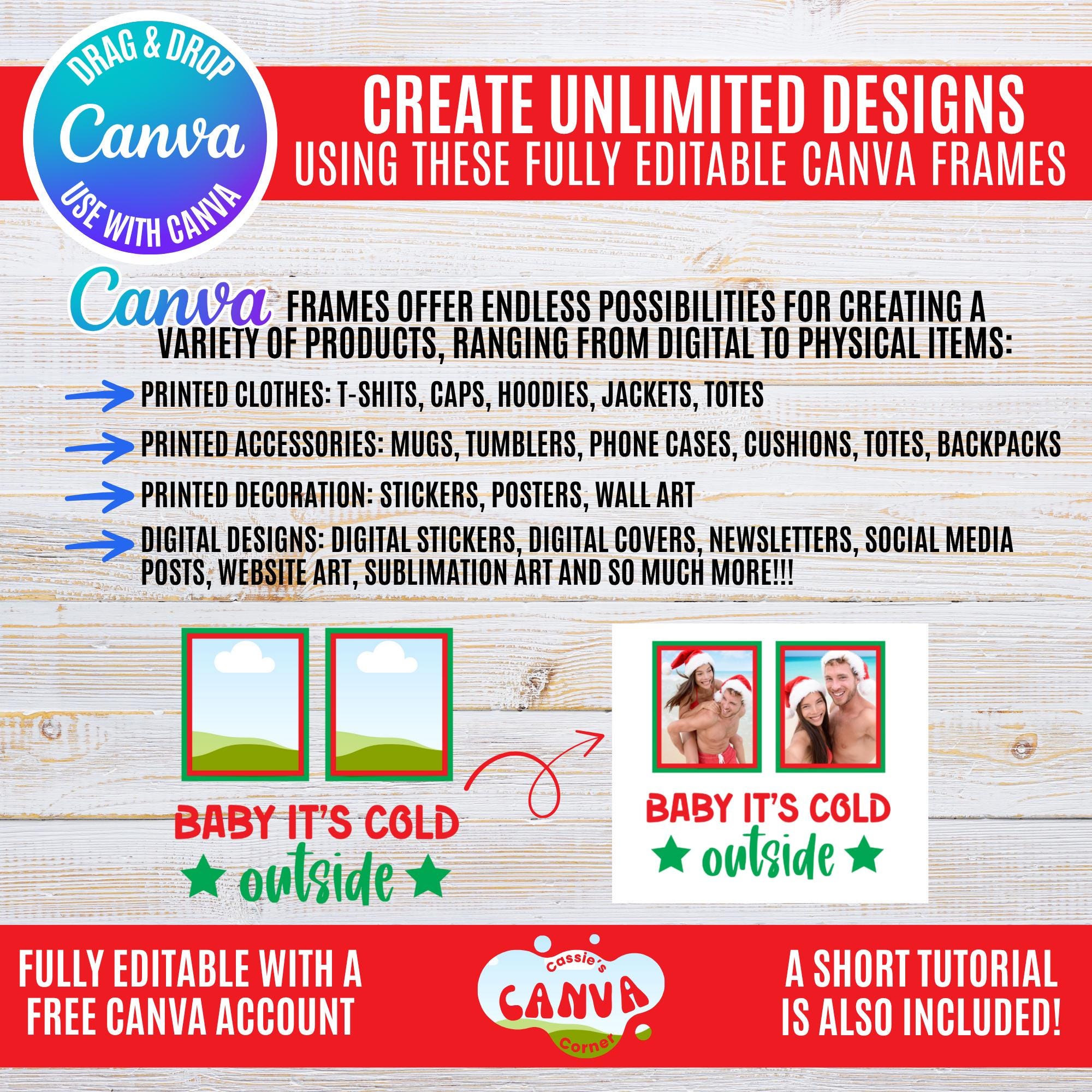 Bring your memories to life this winter with the “Baby It’s Cold Outside” Canva Christmas Frame Bundle — a perfect mix of cozy charm and holiday cheer.