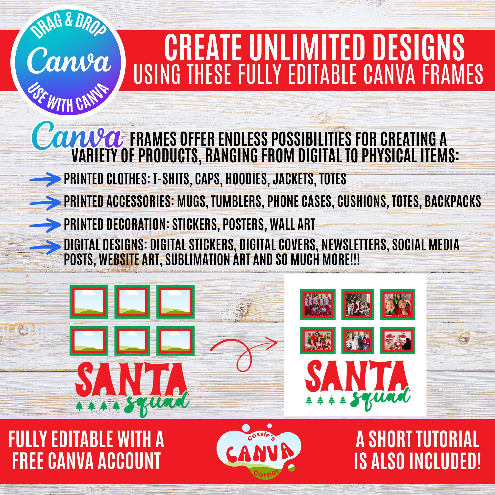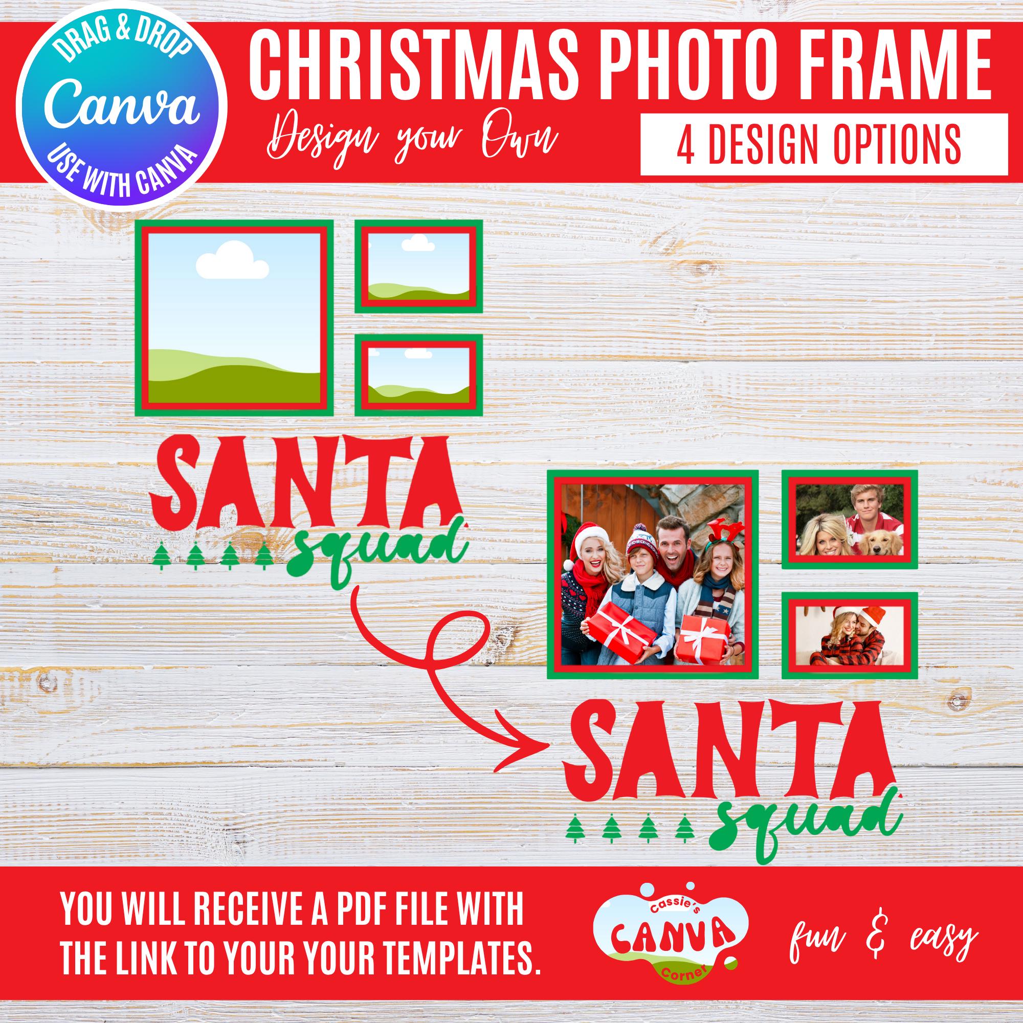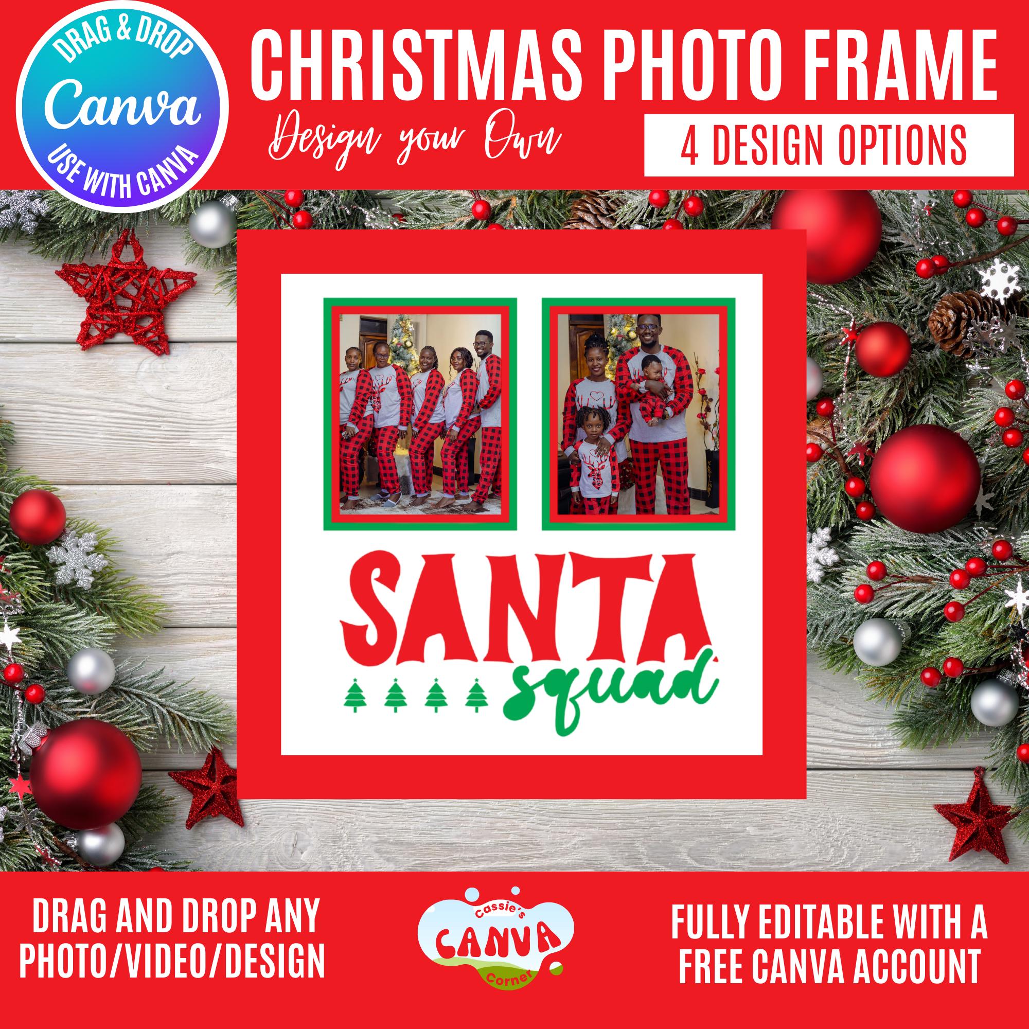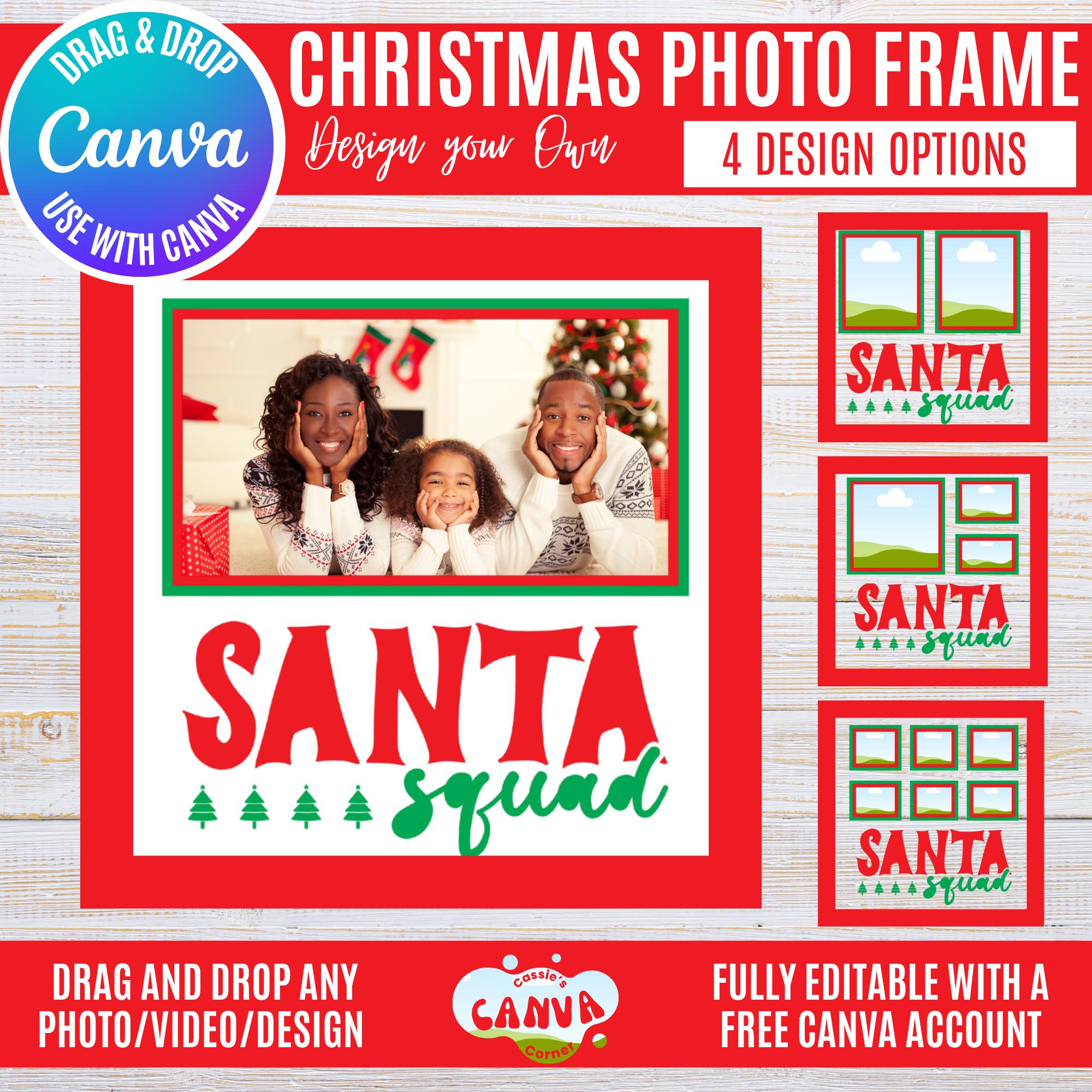 Canva Christmas Photo Frame Bundle | “Santa Squad” Holiday Frames for 1, 2, 3 & 6 Photos | Festive Winter Canva Templates