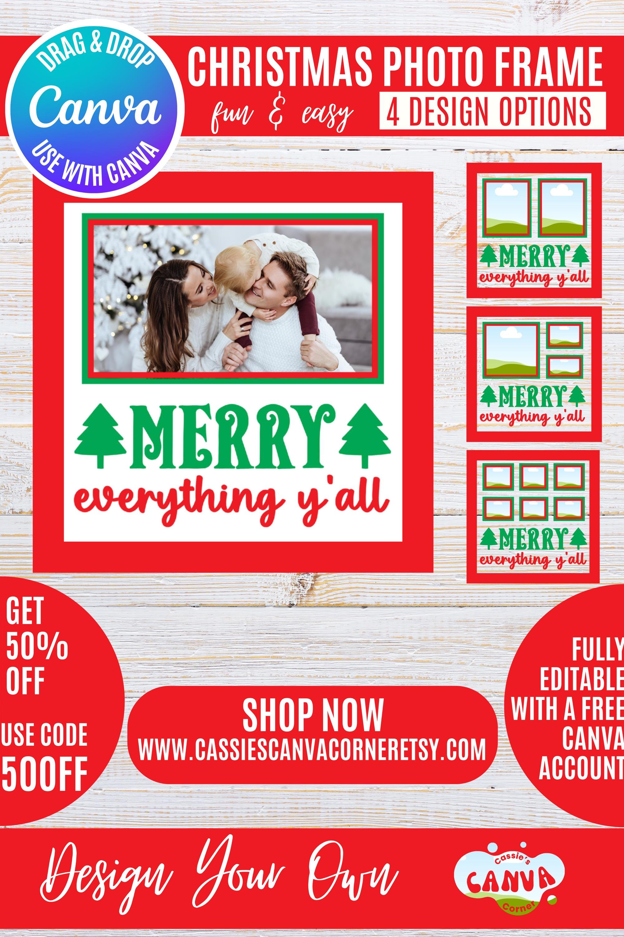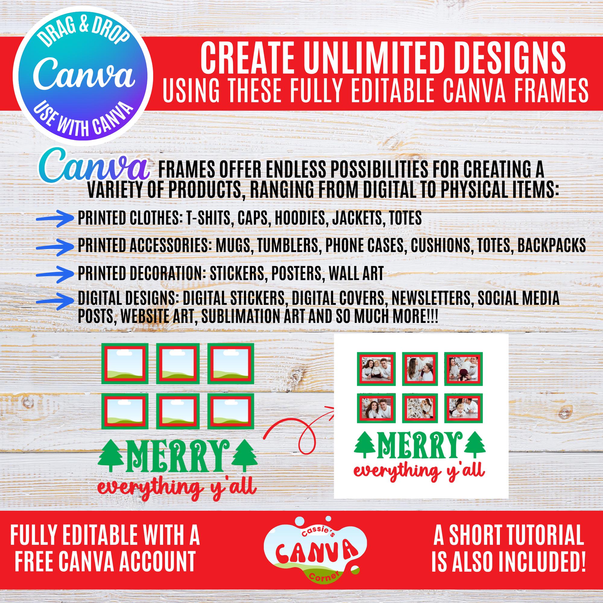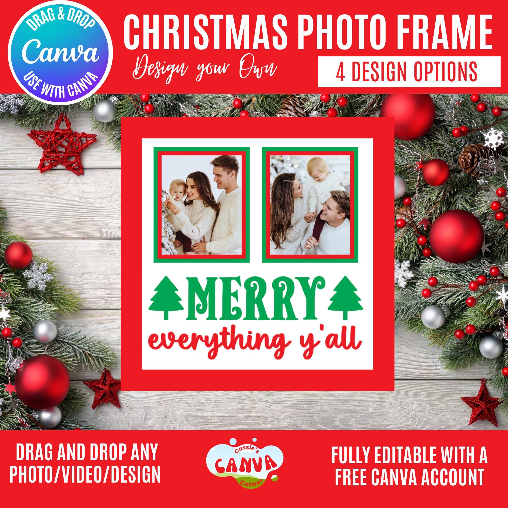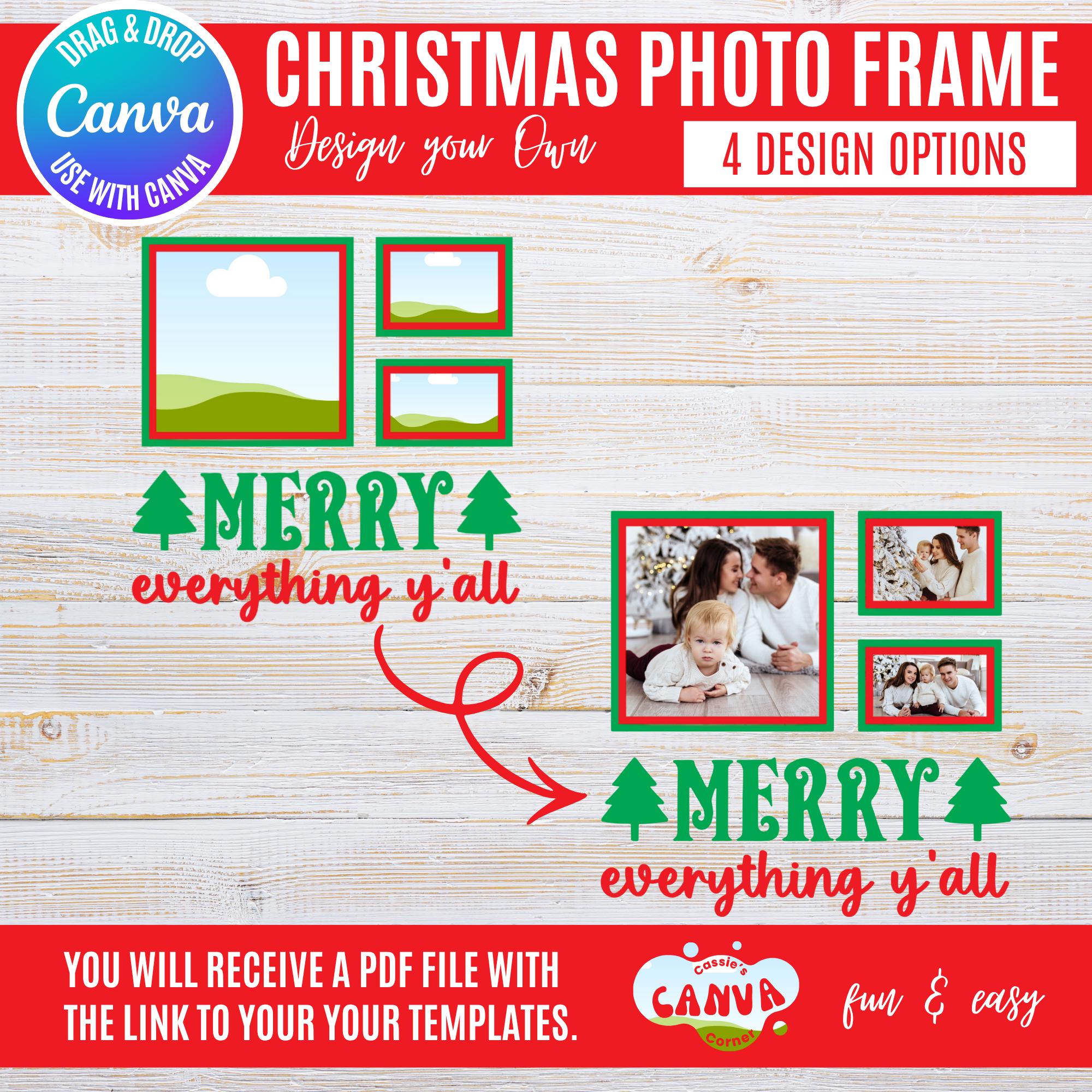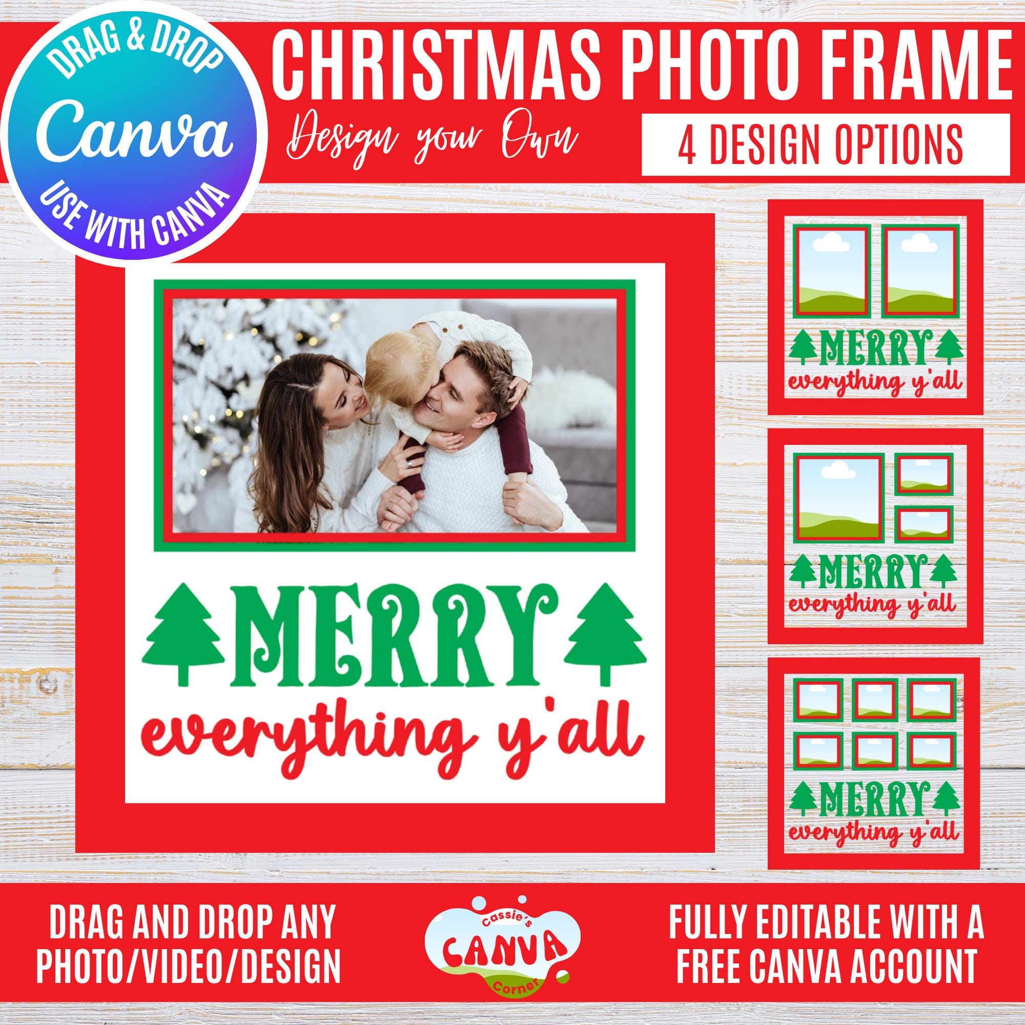 Canva Christmas Photo Frame Bundle | “Merry Everything Yall” Holiday Frames for 1, 2, 3 & 6 Photos | Festive Winter Canva Templates