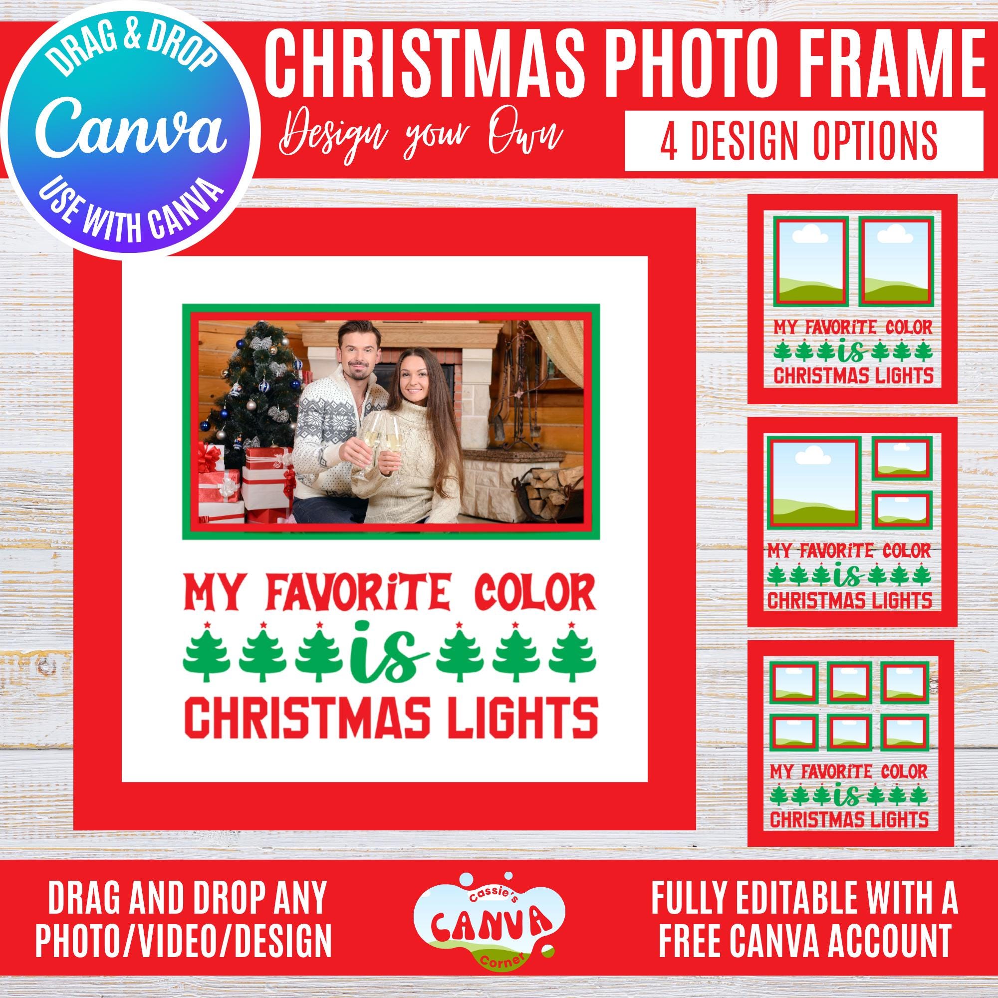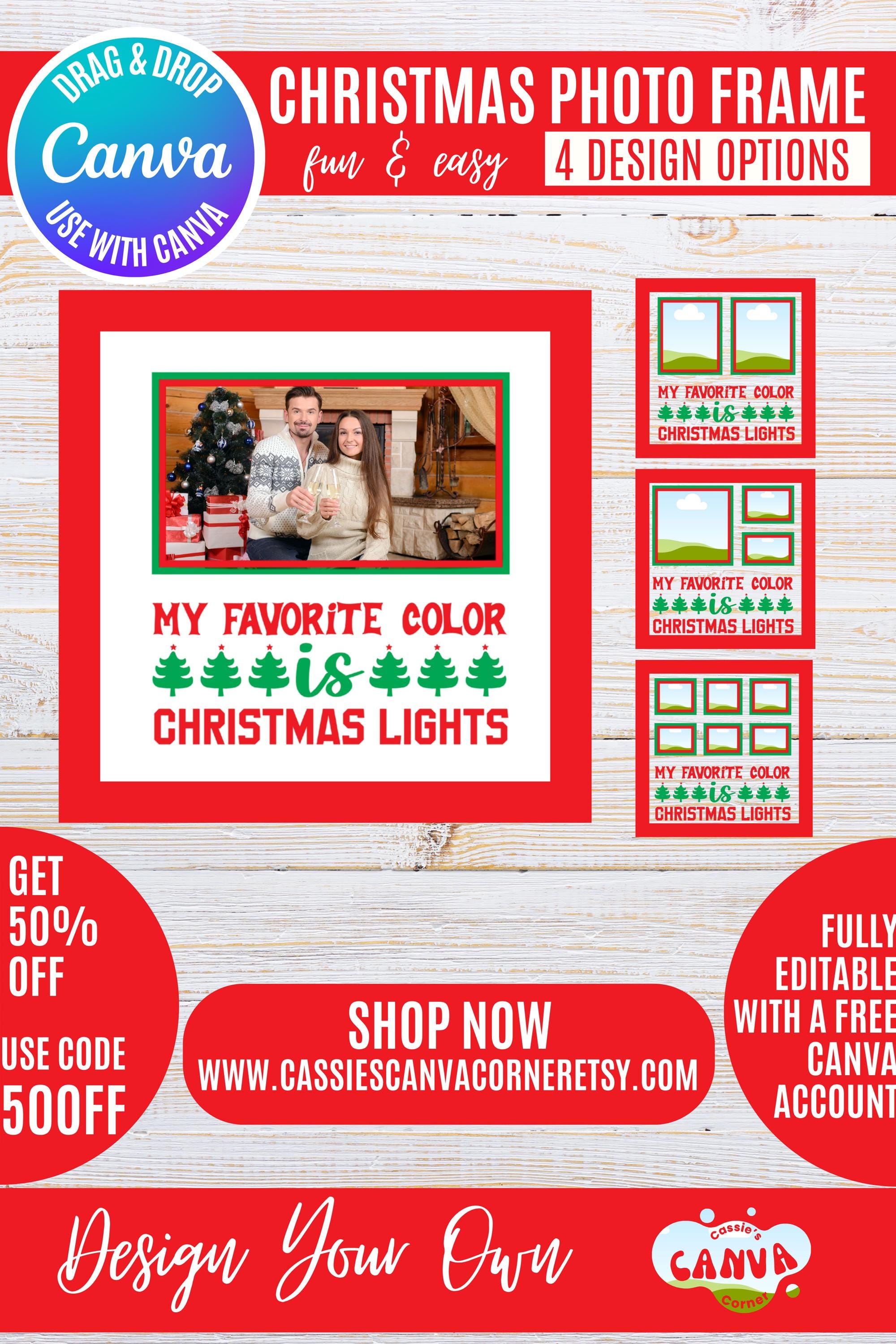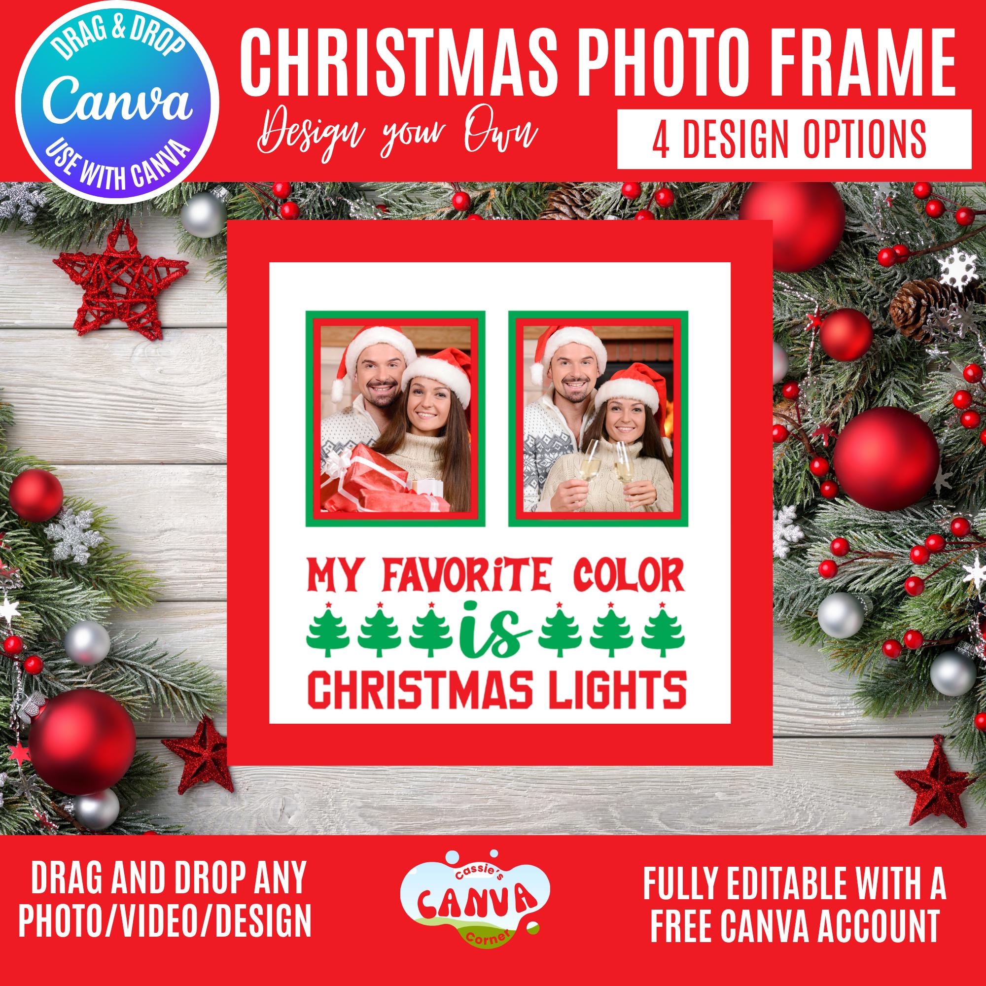 Canva Christmas Photo Frame Bundle | “My Favorite Color is Christmas Lights” Holiday Frames for 1, 2, 3 & 6 Photos | Festive Winter Canva Templates