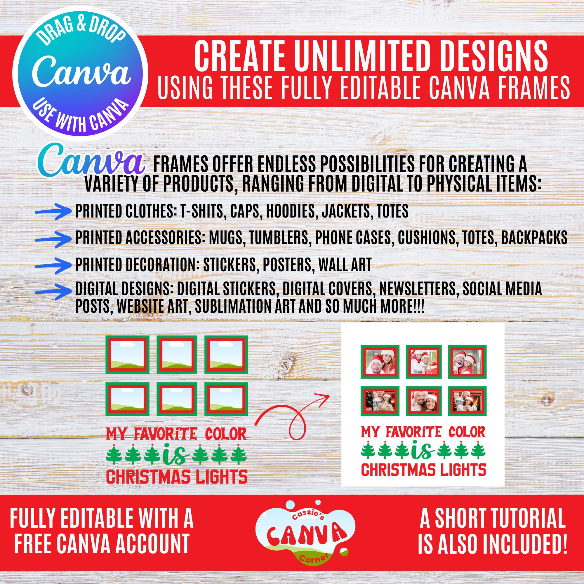 To see the ENTIRE STORE 10,000+ CANVA FRAMES/TEMPLATES, Follow this link: https://www.etsy.com/shop/cassiescanvacorner