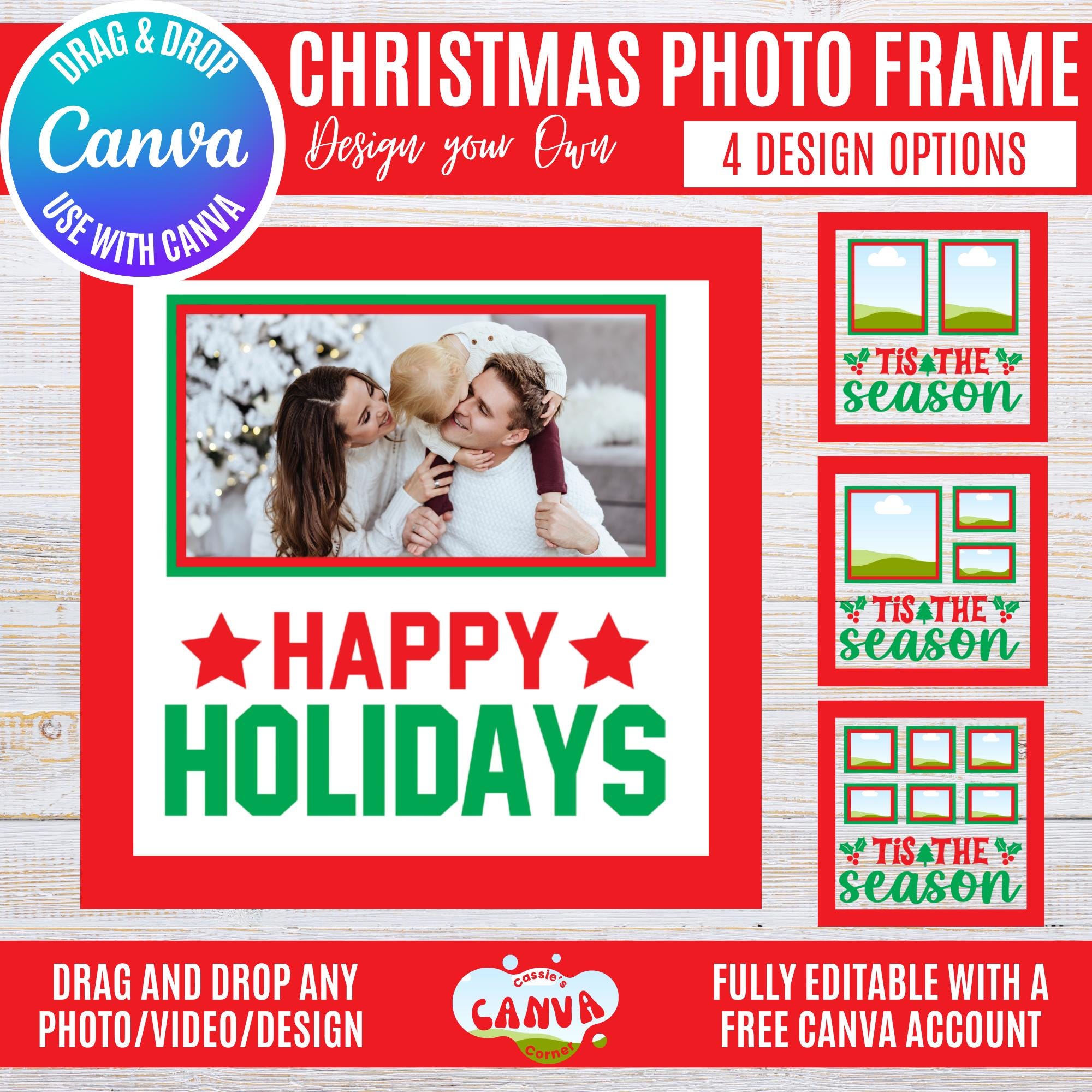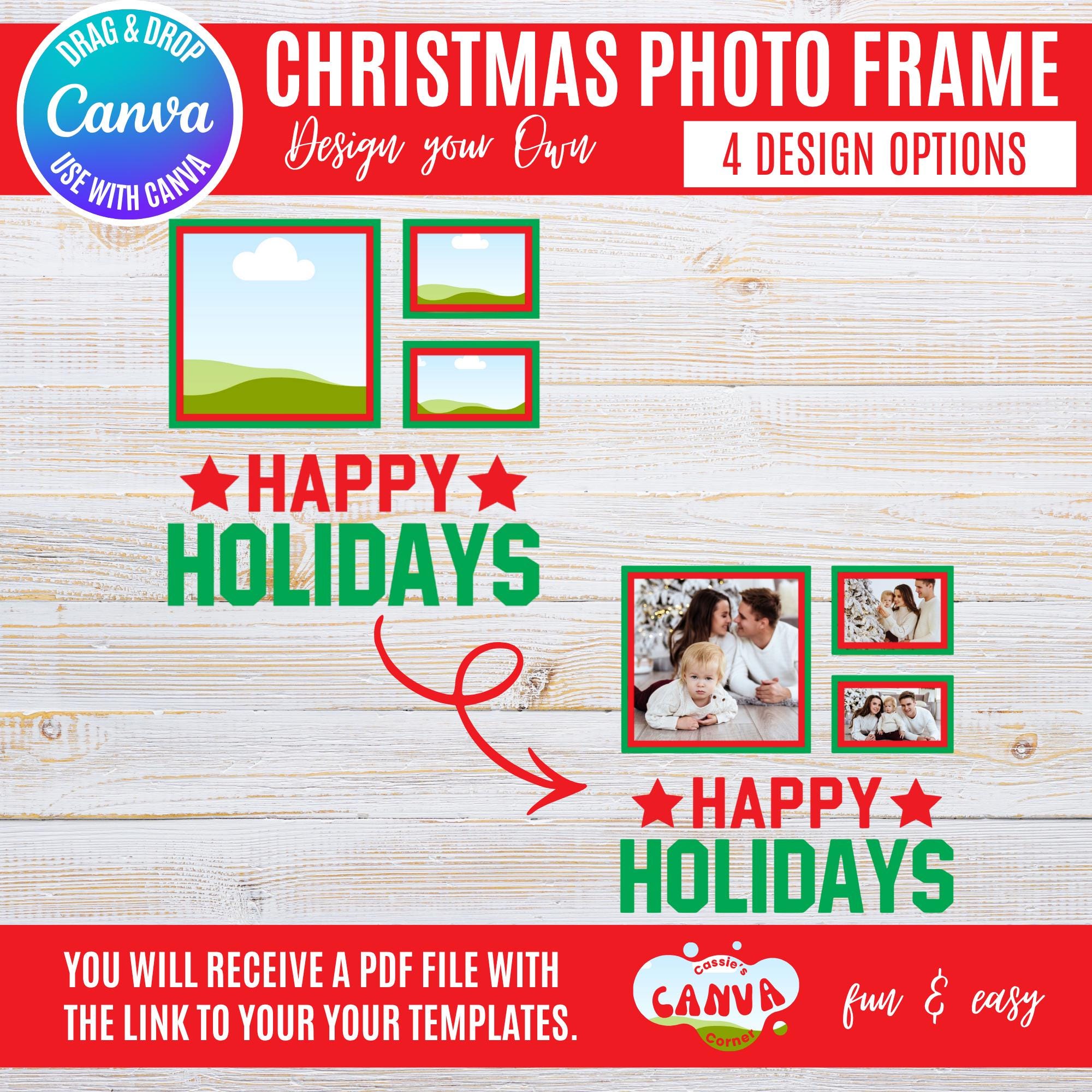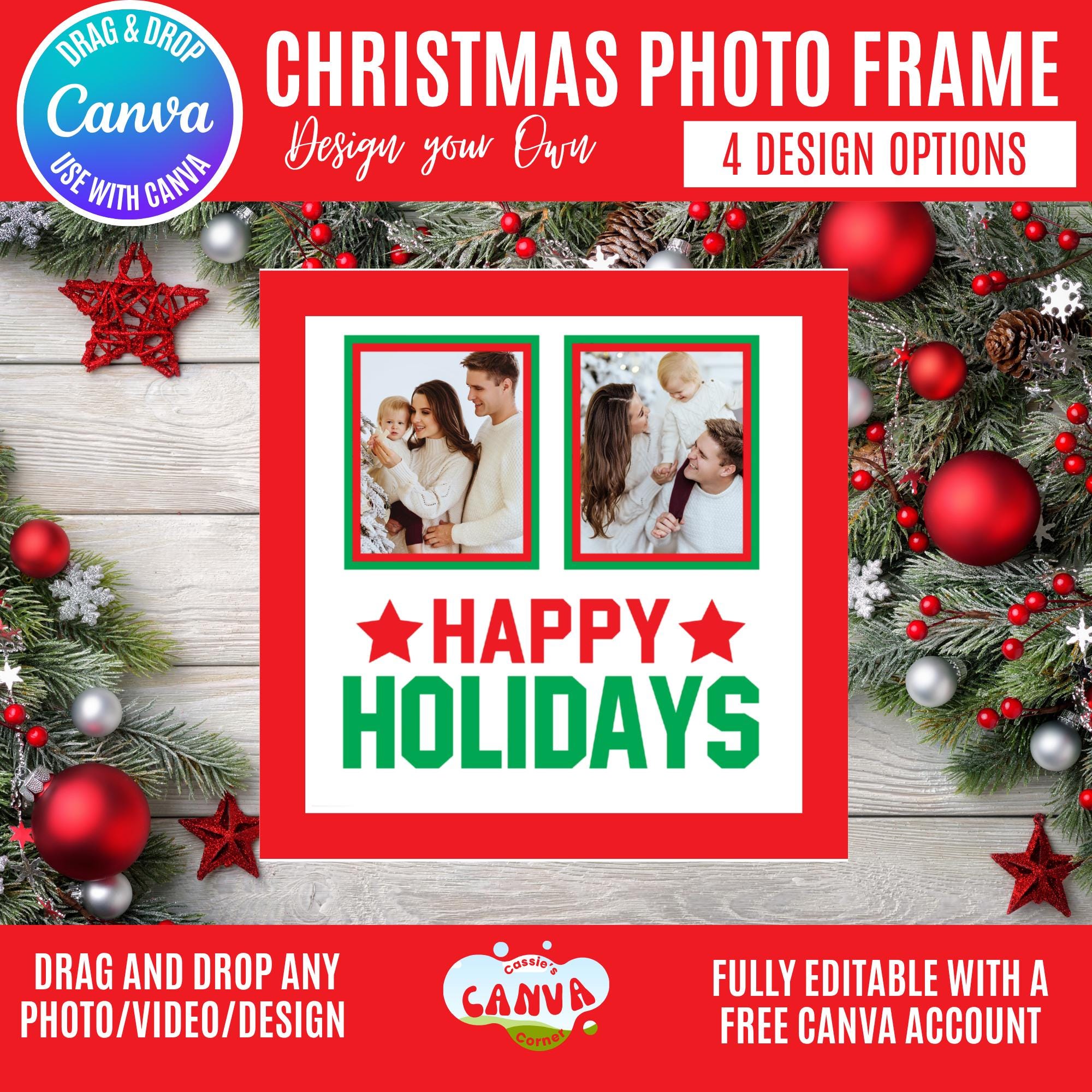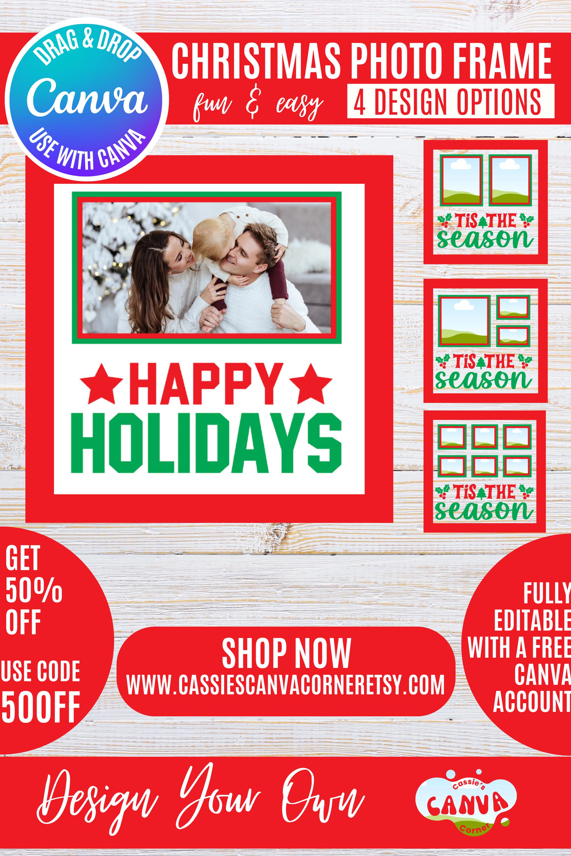 Canva Christmas Photo Frame Bundle | “Happy Holidays” Holiday Frames for 1, 2, 3 & 6 Photos | Festive Winter Canva Templates