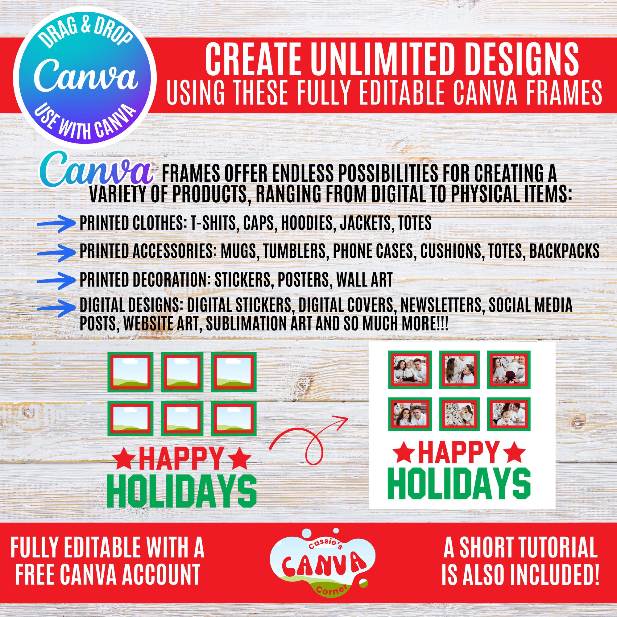 To see the ENTIRE STORE 10,000+ CANVA FRAMES/TEMPLATES, Follow this link: https://www.etsy.com/shop/cassiecanvacorner