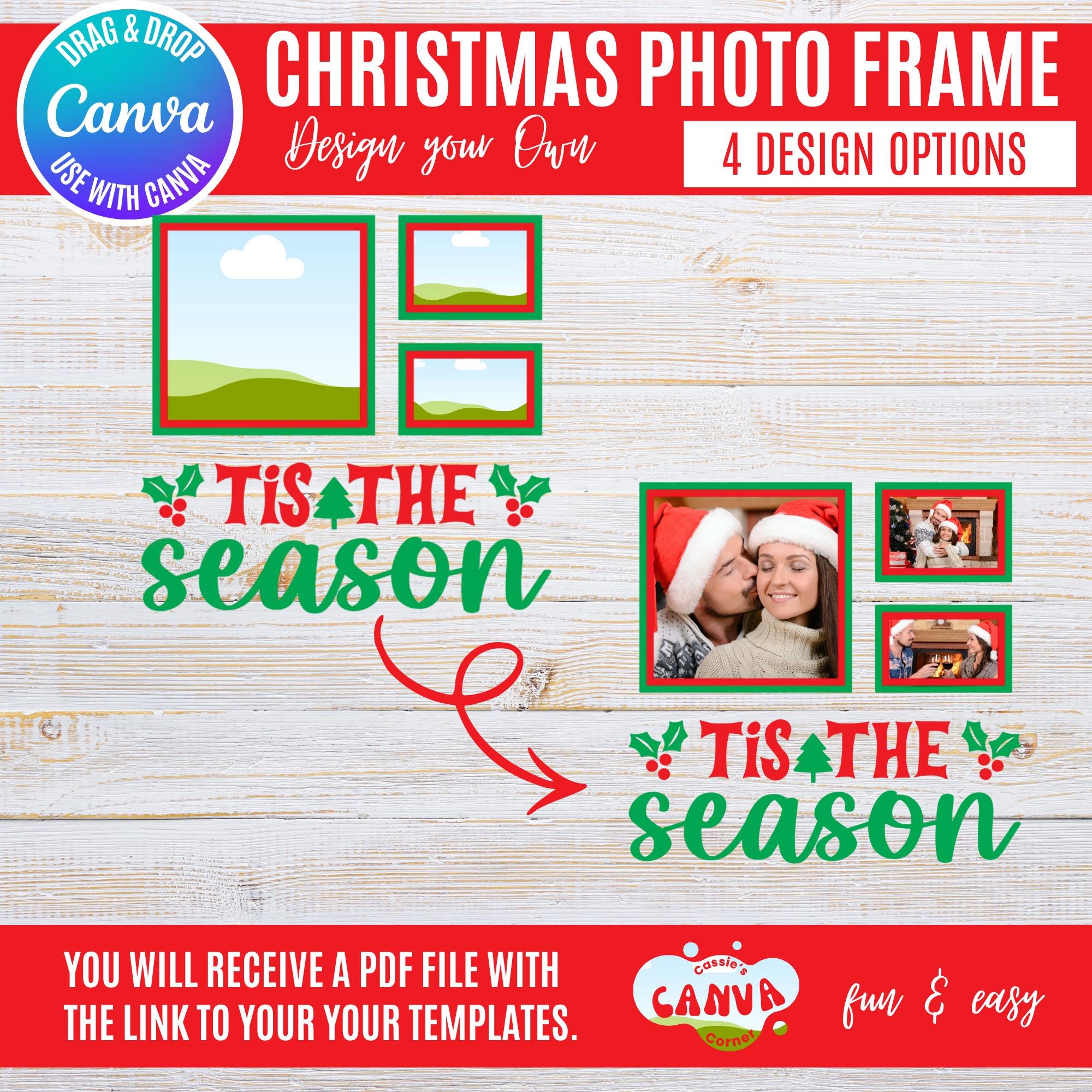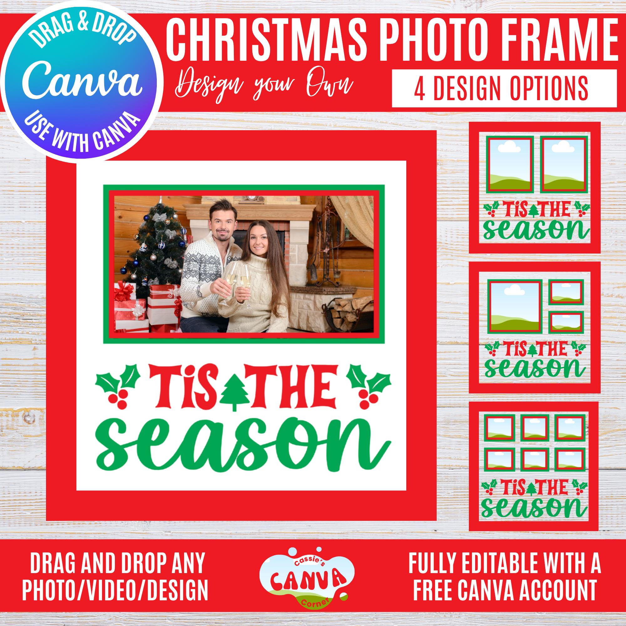 Canva Christmas Photo Frame Bundle | “Tis the Season” Holiday Frames for 1, 2, 3 & 6 Photos | Festive Winter Canva Templates