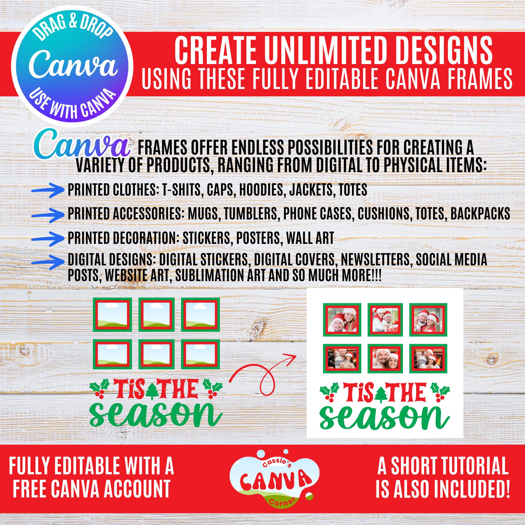 To see the ENTIRE STORE 10,000+ CANVA FRAMES/TEMPLATES, Follow this link: https://www.etsy.com/shop/cassiecanvacorner