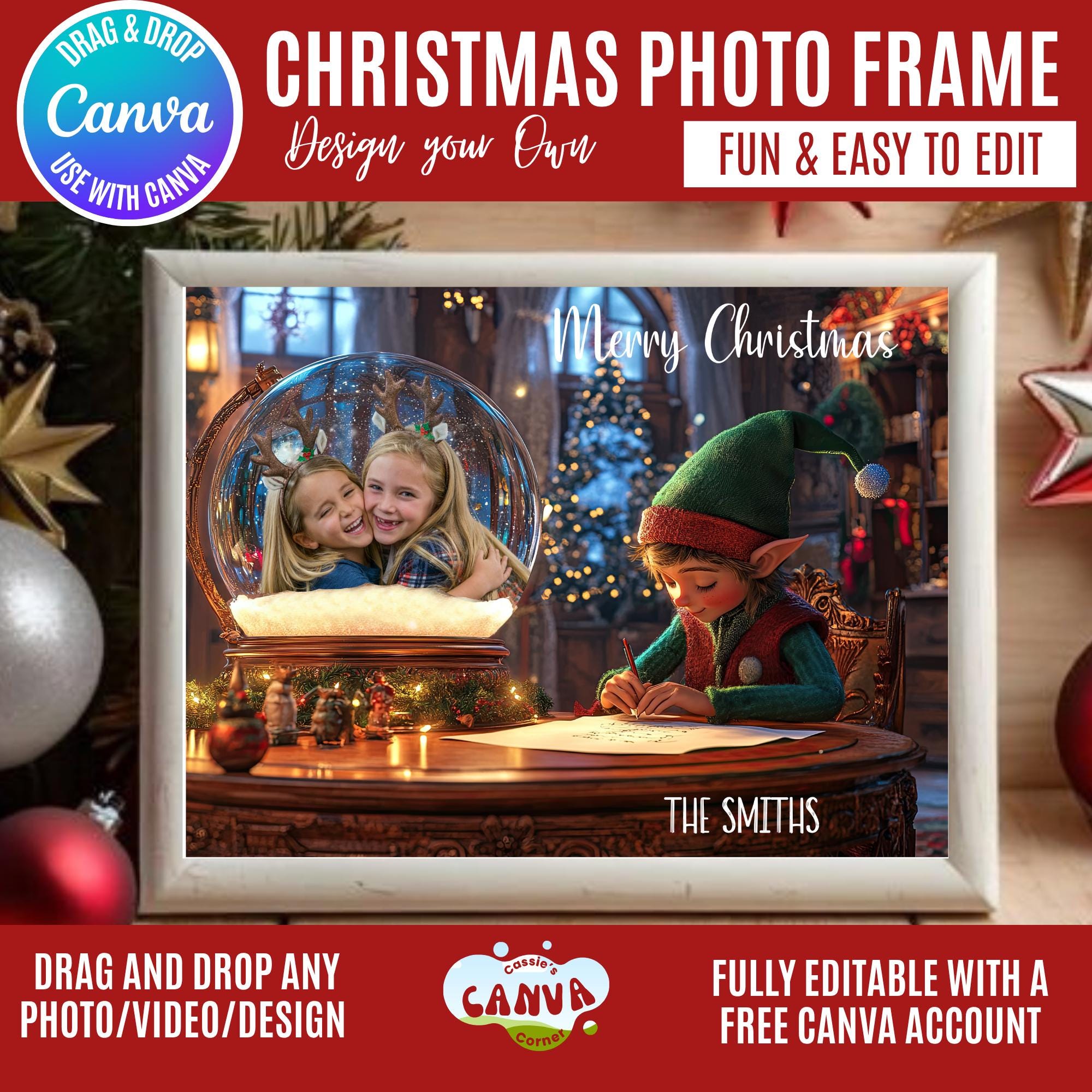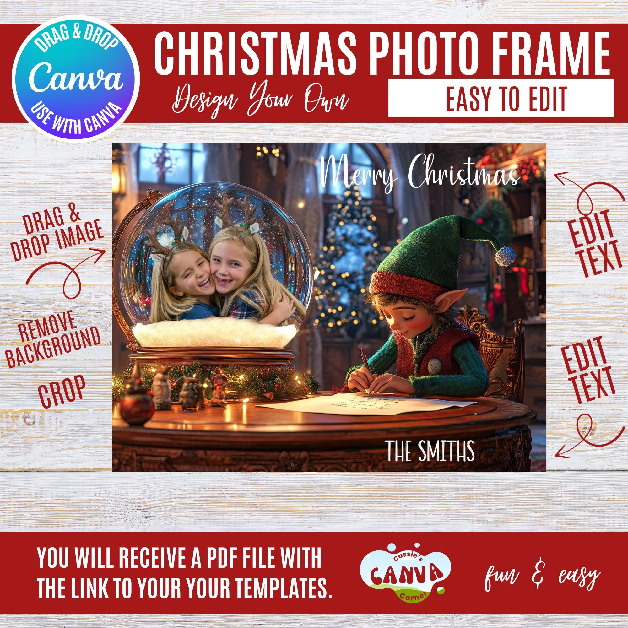 Elf Snowglobe Christmas Photo Frame Canva Template (Digital Download)