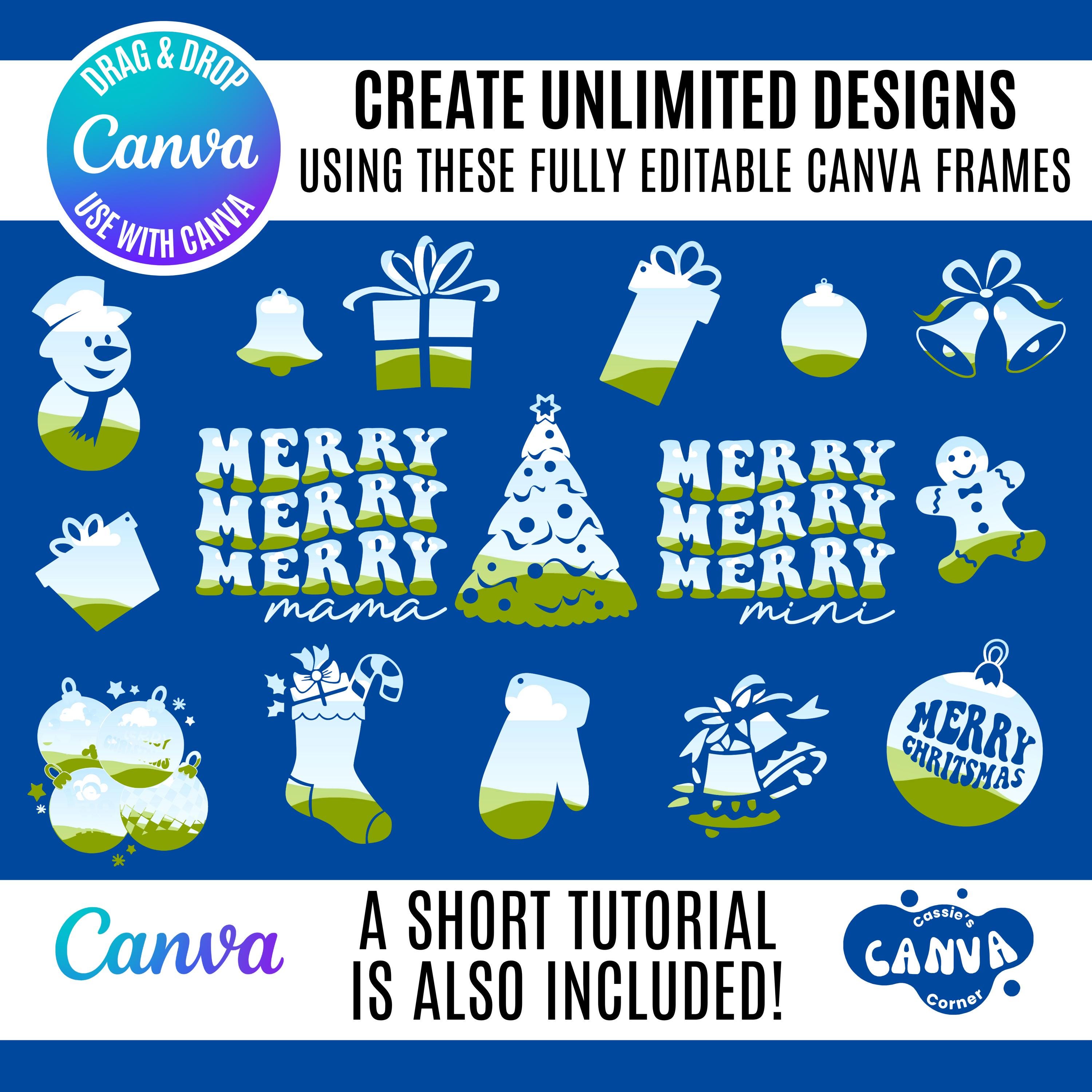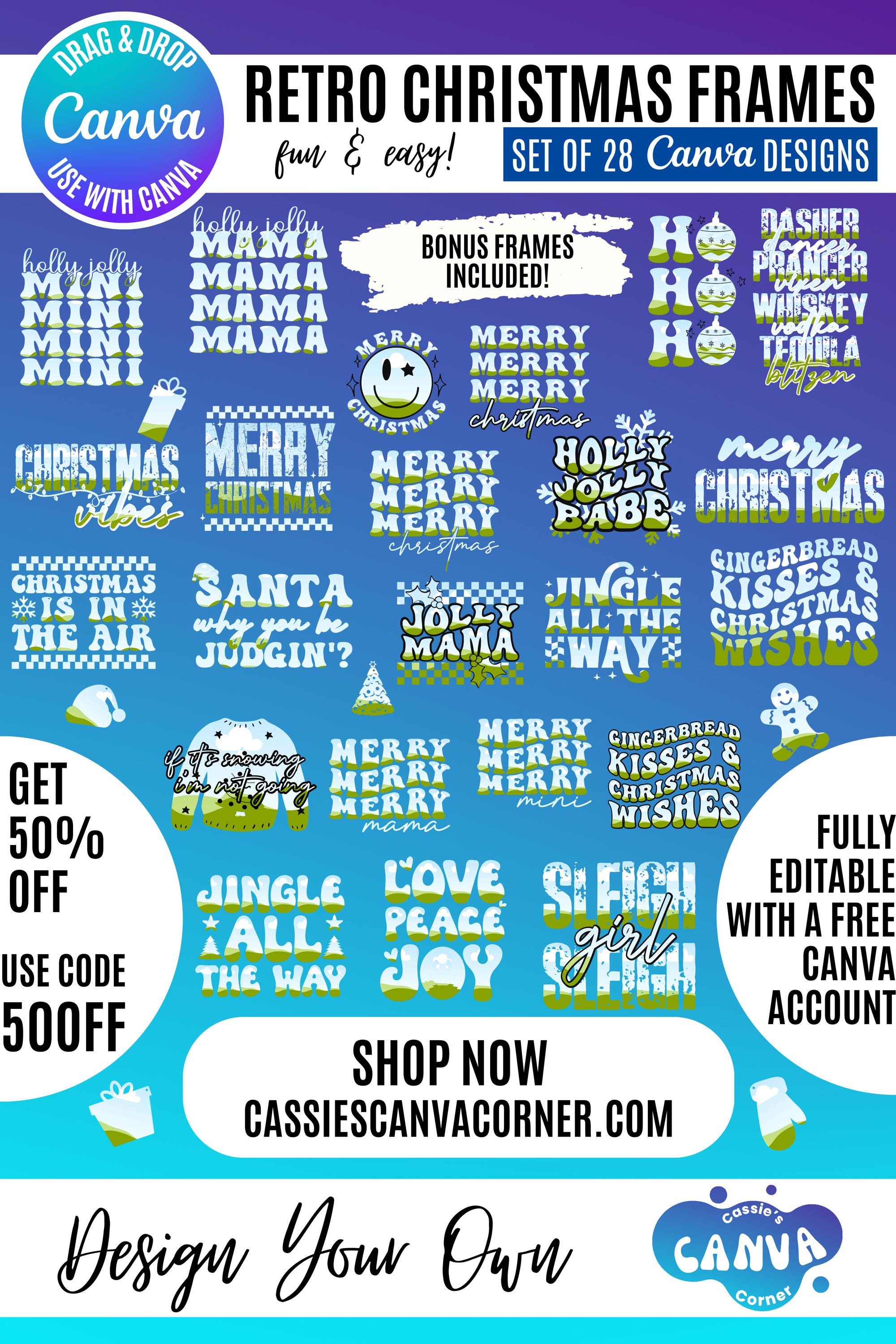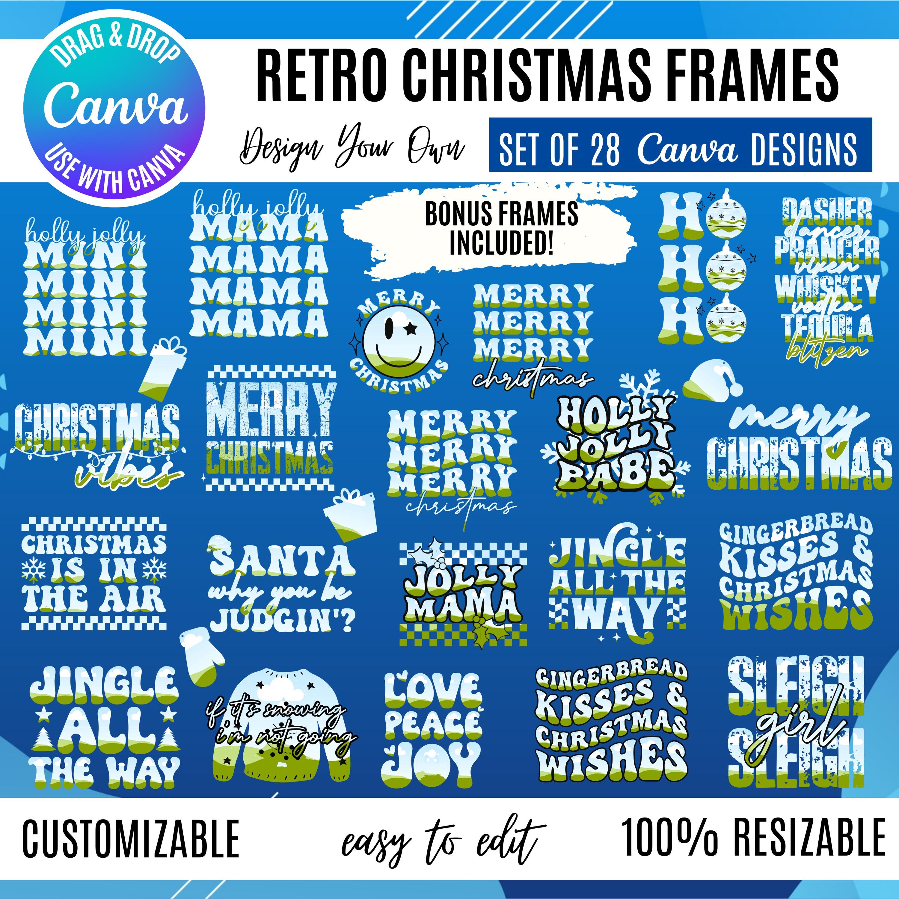 This festive set includes 28 unique retro-inspired Christmas designs featuring playful vintage graphics, classic holiday colors, and mid-century charm. This bundle also includes bonus Christmas frames!
