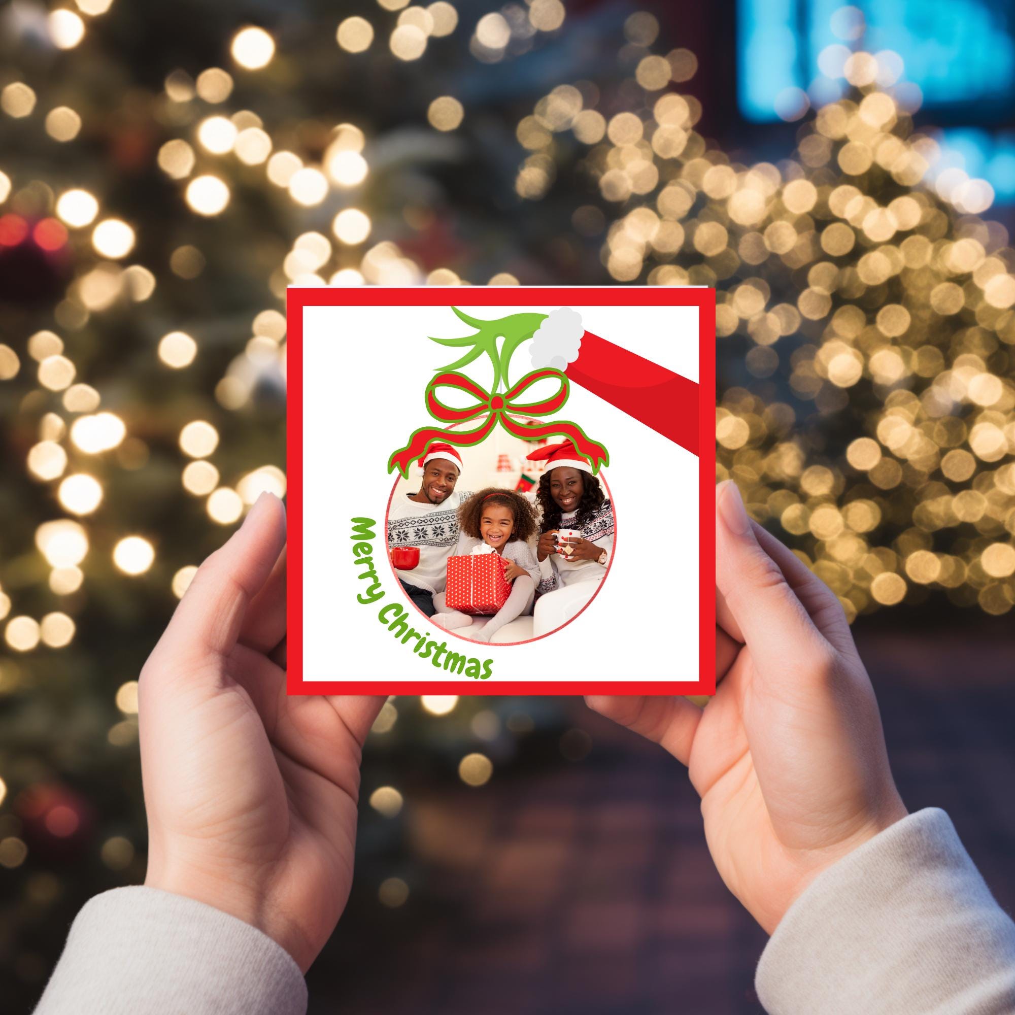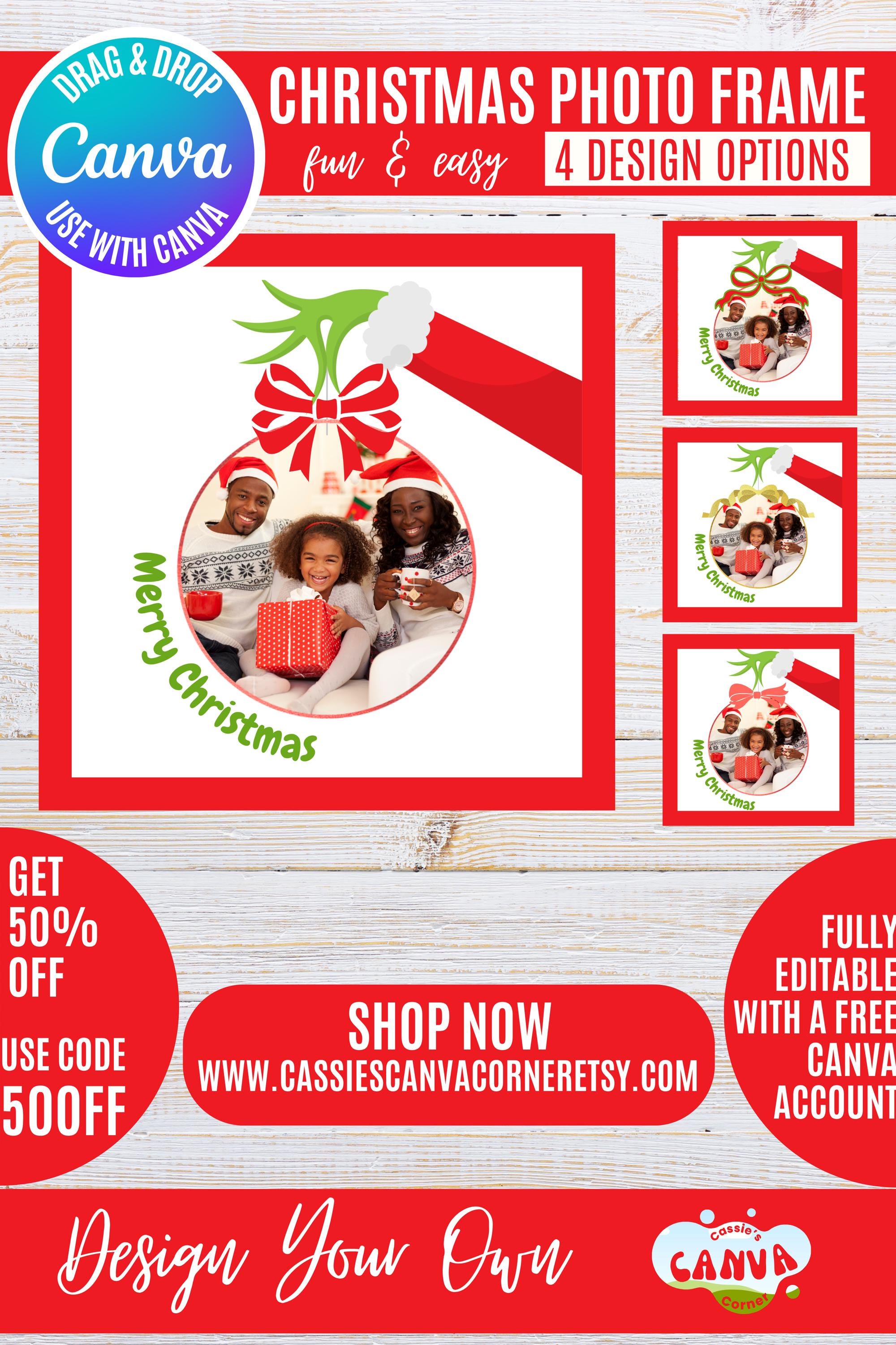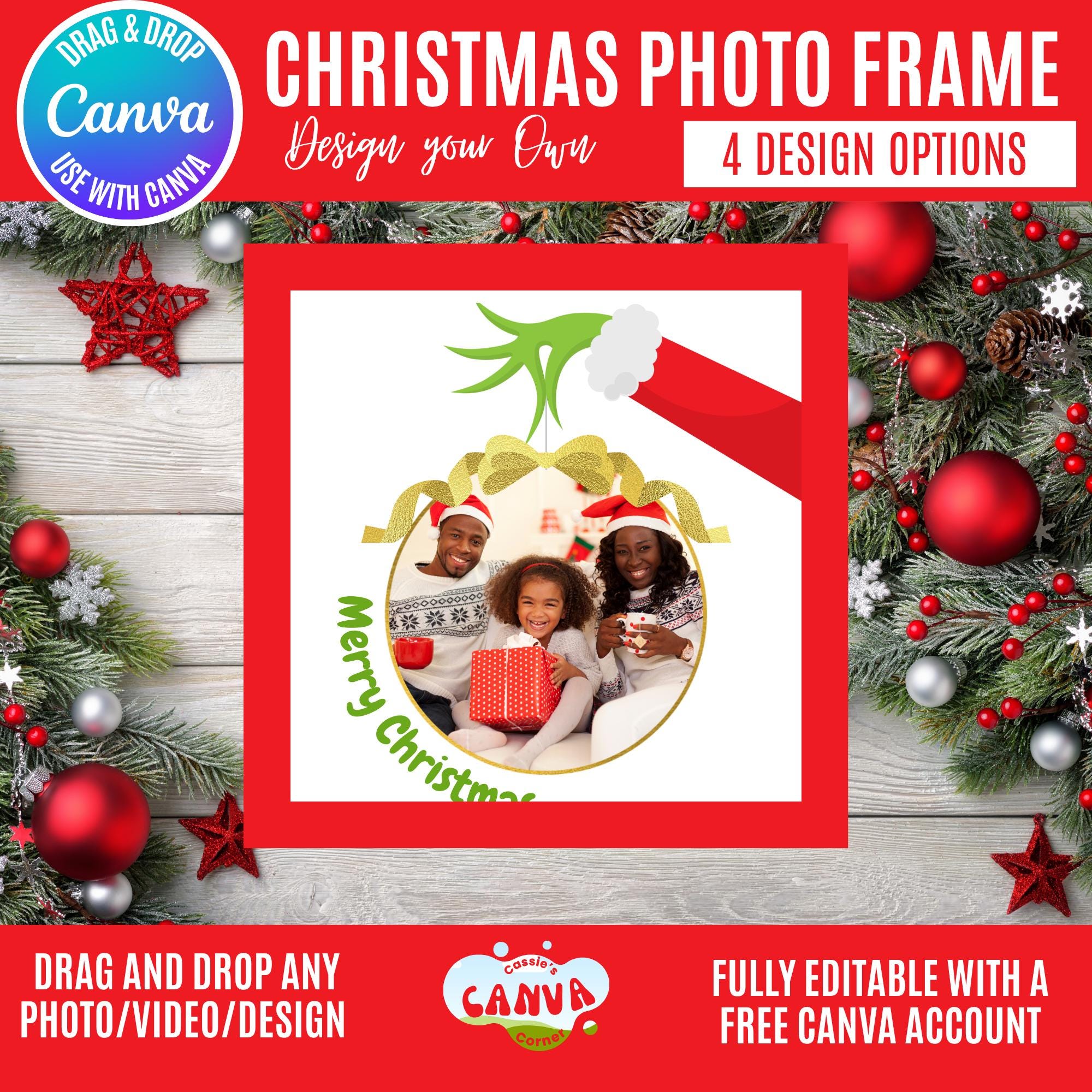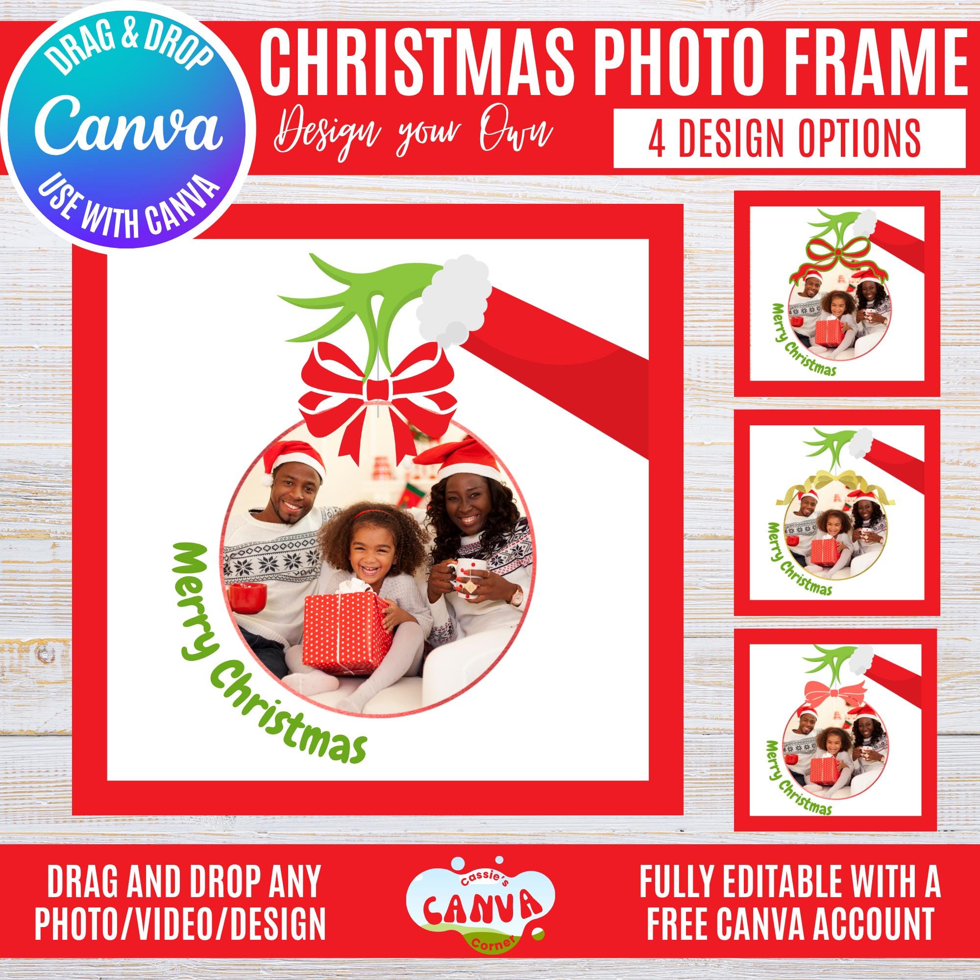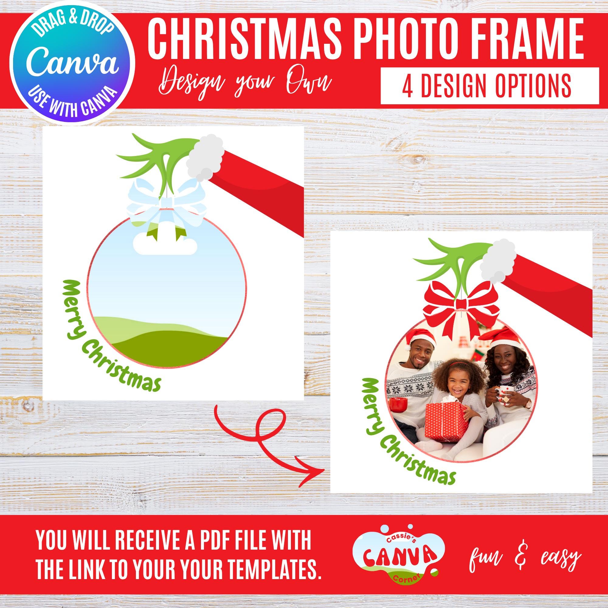 Christmas Grinch Picture Frame Canva Template, Canva Christmas Photo Placeholder, Holiday Photo Frame Design, Editable Snowglobe Photo Template Canva