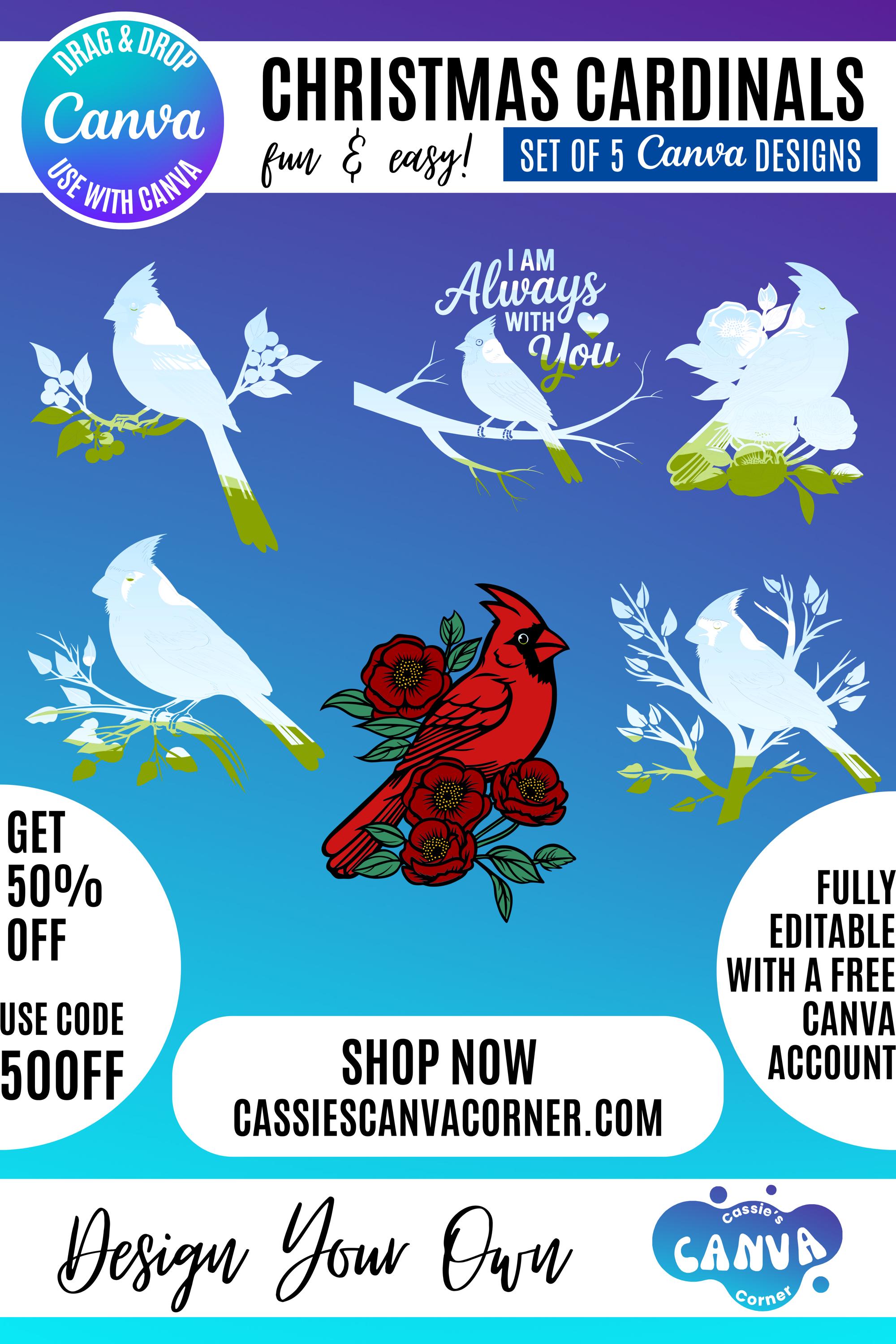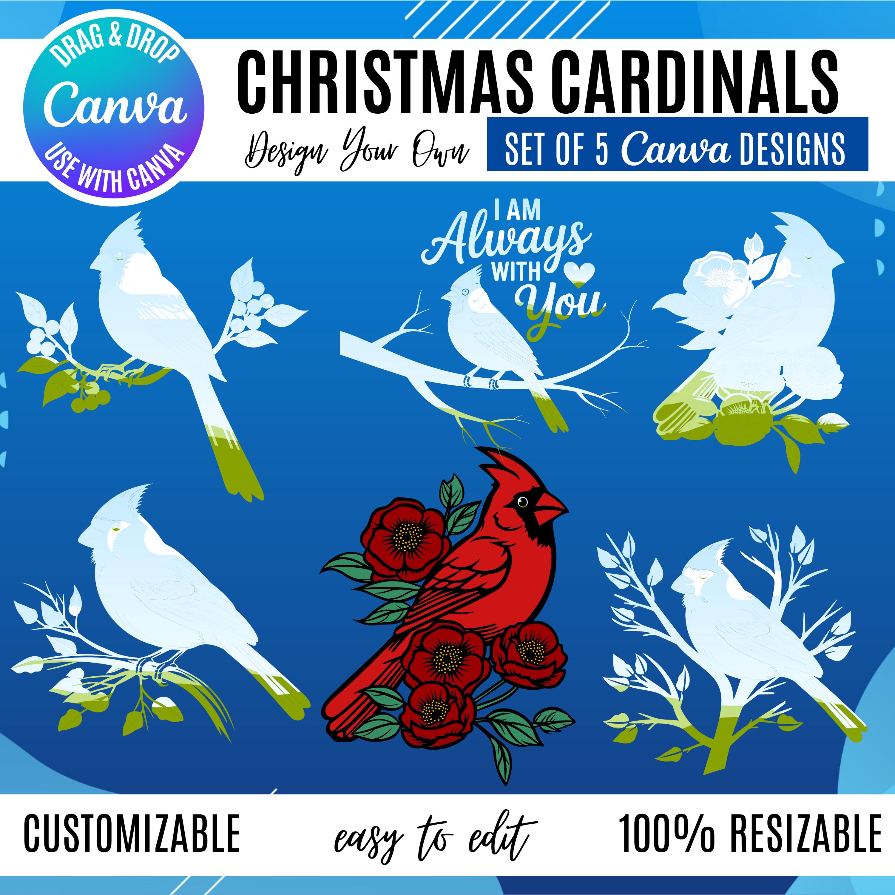 Canva Christmas Cardinal Bundle • 5 Festive Red Cardinal Designs • Editable Holiday Graphics • Winter Bird Clipart Templates