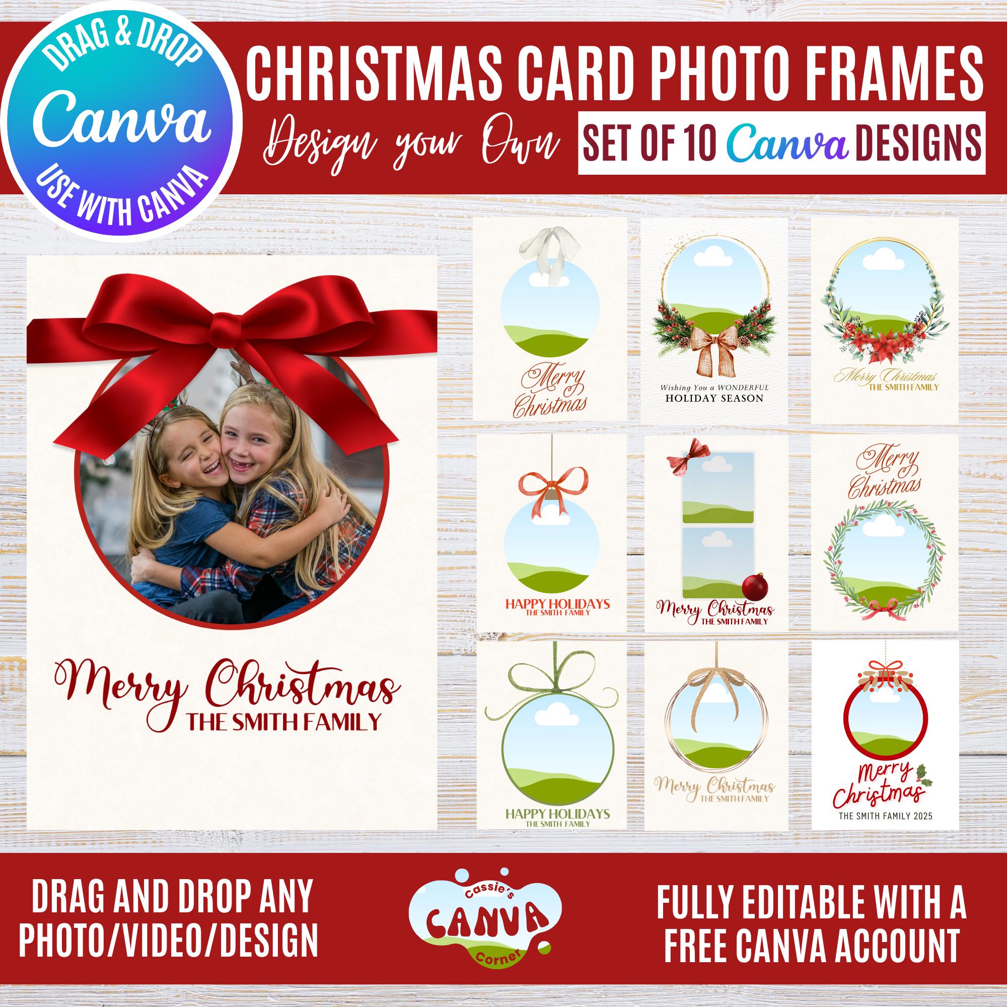 Showcase your holiday memories in festive style with this Canva Christmas Card Photo Frame Bundle, featuring ten beautifully designed templates. Each layout includes easy-to-use photo placeholders and editable text areas, making it simple to personalize for holiday cards, social media posts, family keepsakes, marketing materials, and more.