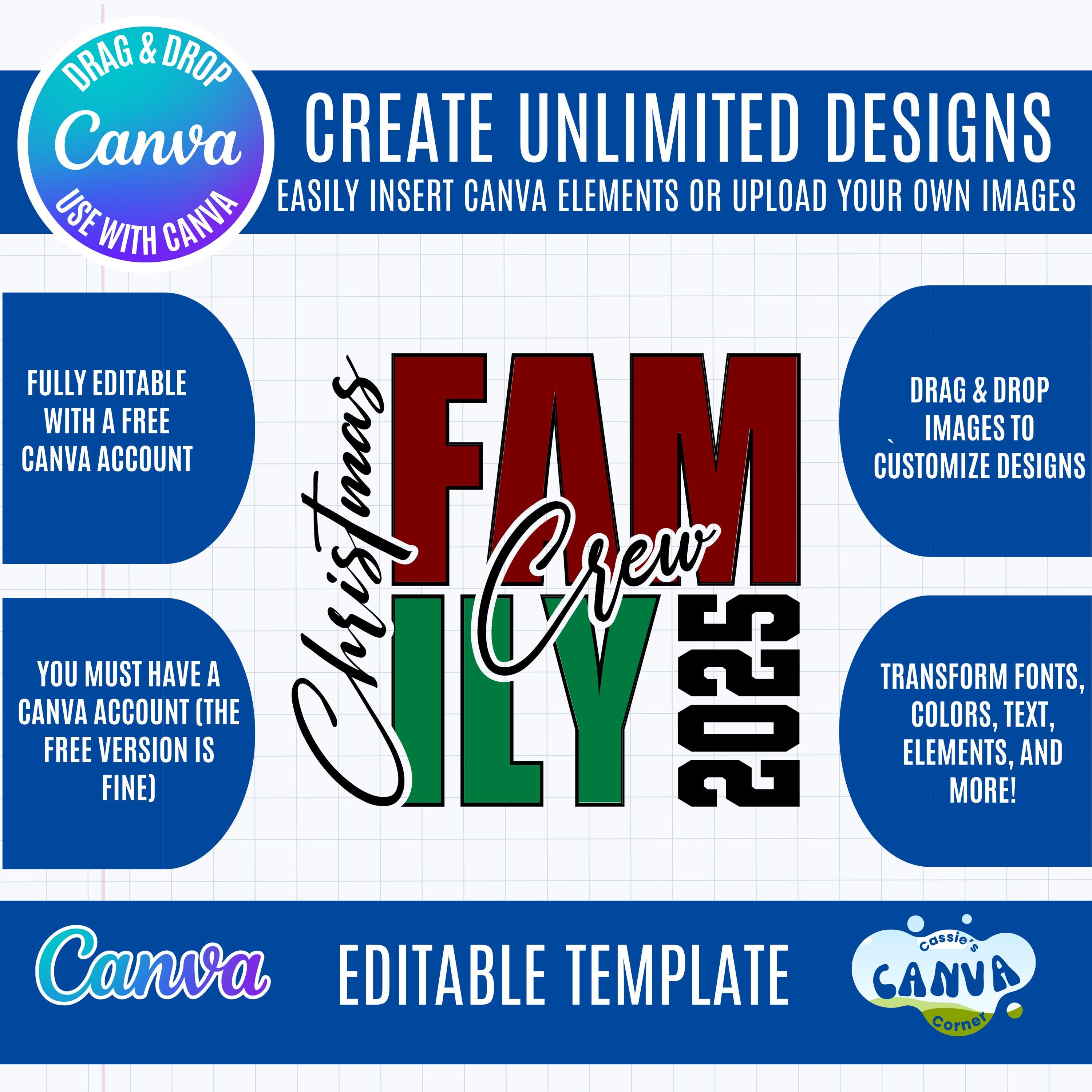 Bring your holiday family spirit to life with this fun and festive Family Christmas Crew Canva Bundle!