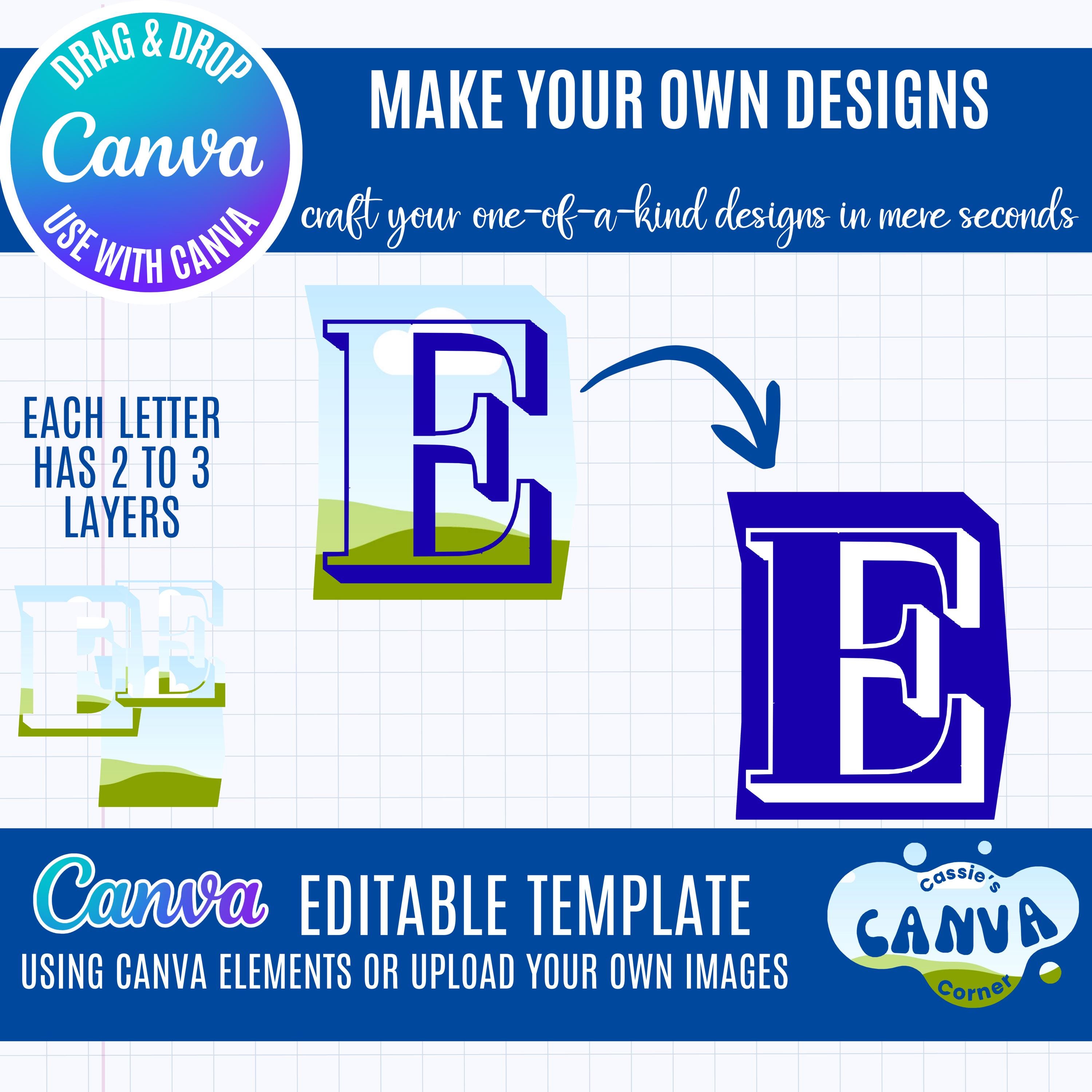 You'll receive a full A–Z alphabet in both lower and upper sets that work with Canva, these high-quality files are fully drag-and-drop ready and ideal for both digital and print use. All of the letters have at least 2 layers, but some have 3 layers and even 4 layers.