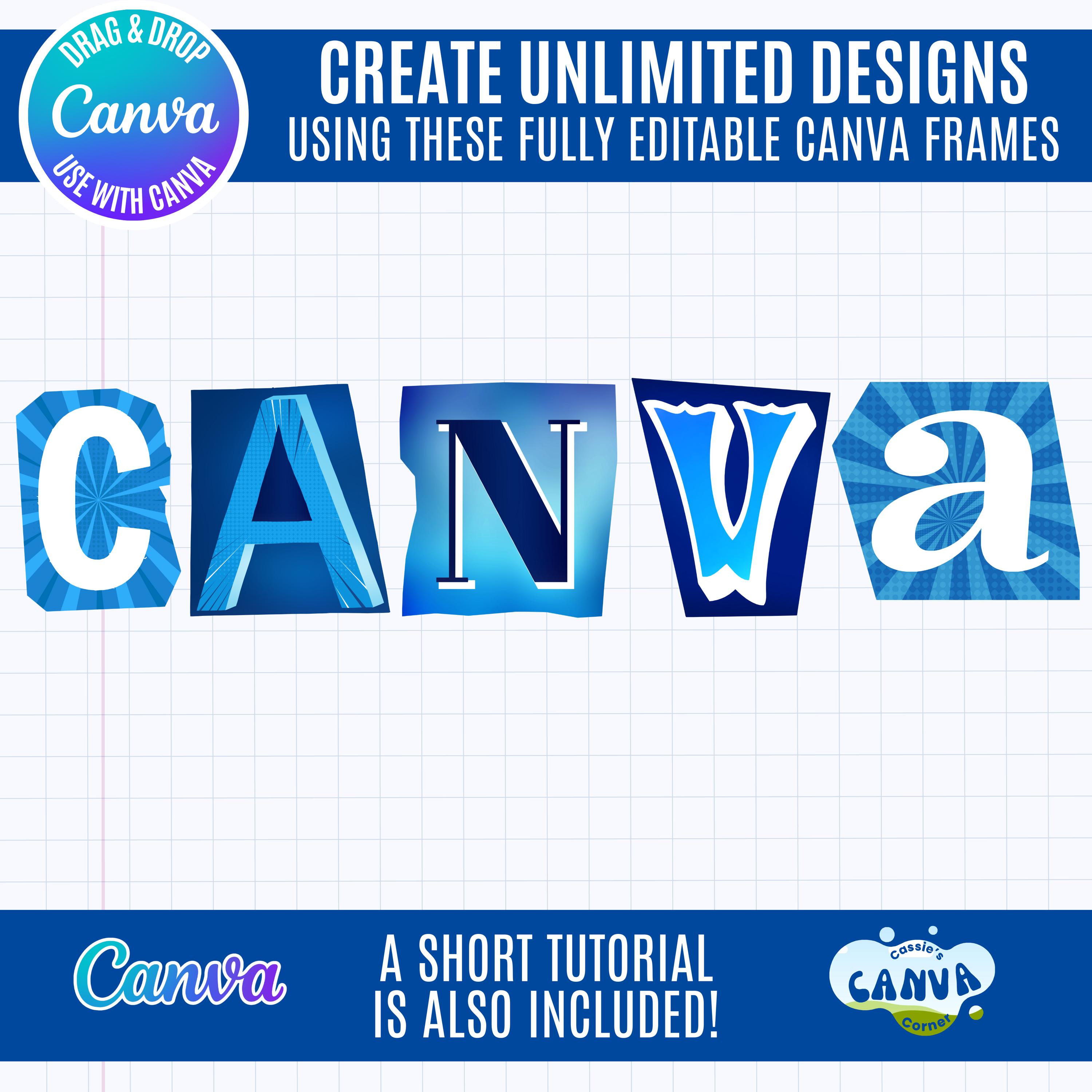 *** This listing offers a digital download, allowing you to access your files right away. Because this is a digital product, no physical items will be mailed to you. *** The images provided in this listing serve as examples of what you can create independently. *** The colors and resolution may differ from one screen or printer to another. *** For alphabet Canva frames, please note that these are NOT an installable font, it is a CANVA FRAME TEMPLATE.