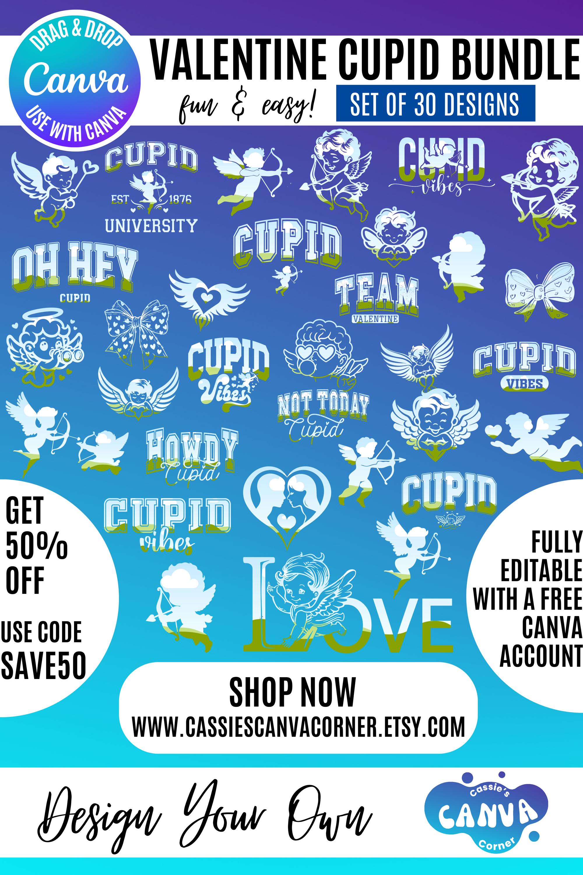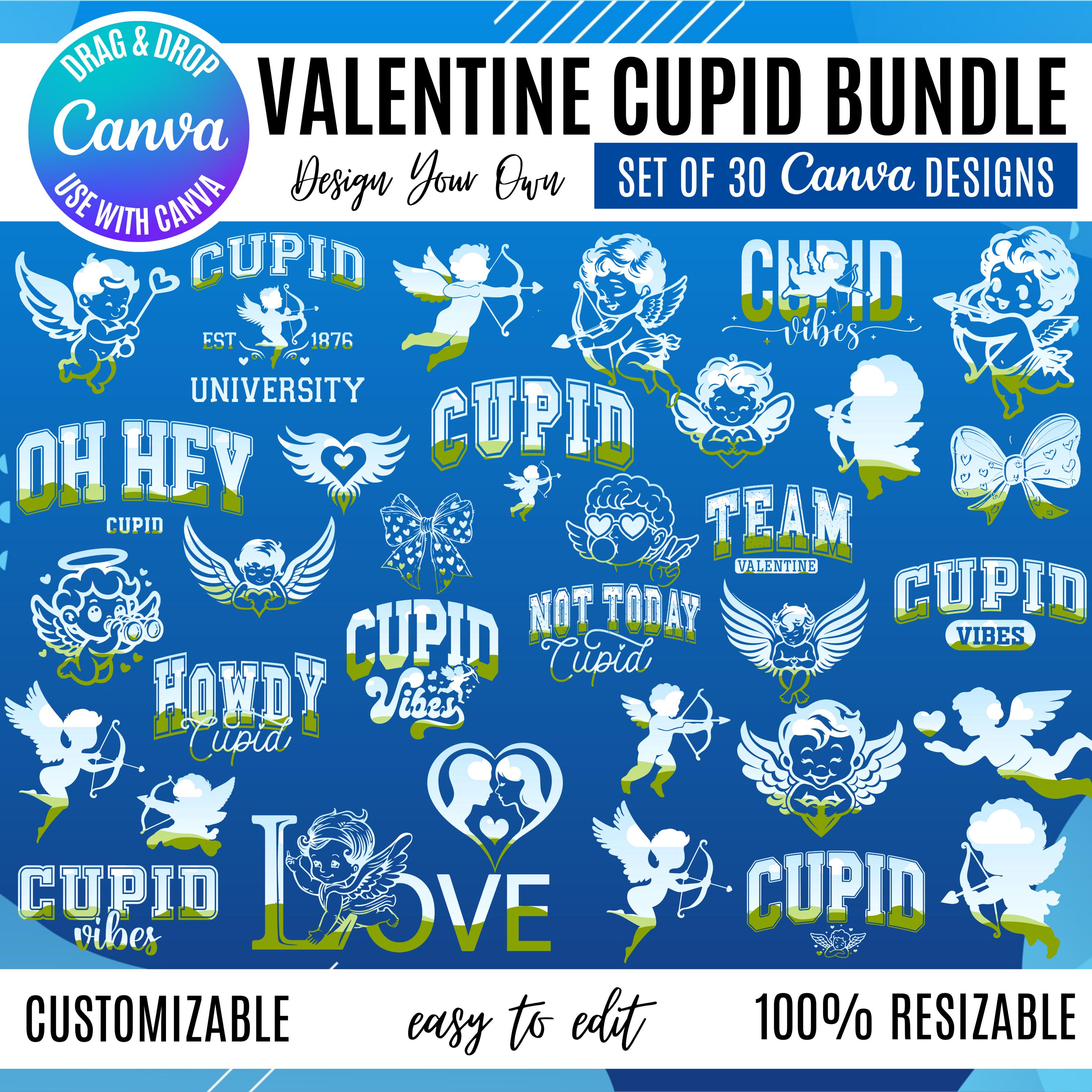 Valentine Cupid Canva Bundle | 30 Cupid Designs | Editable Valentine Templates | Cupid Graphics | Instant Digital Download