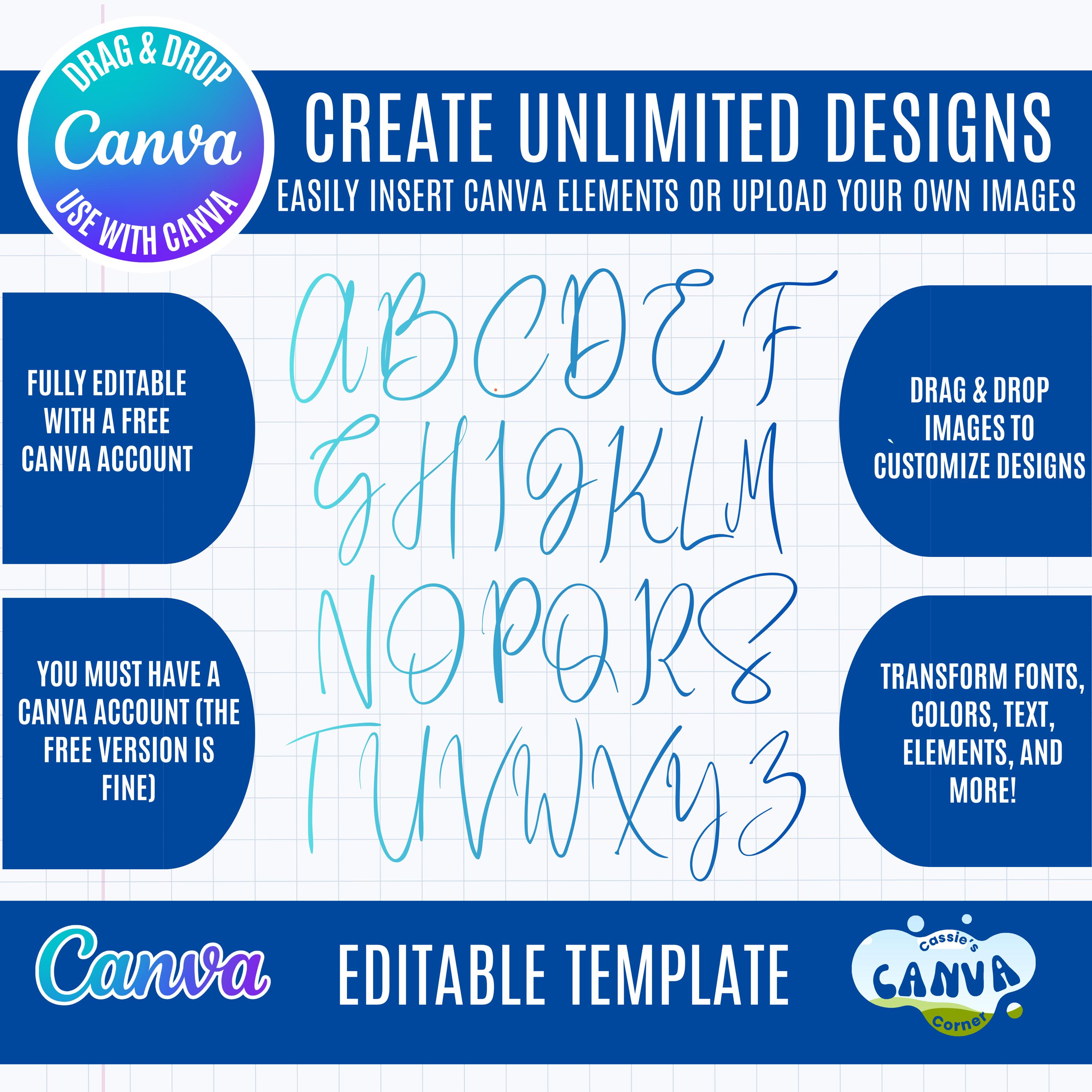 *** This listing offers a digital download, allowing you to access your files right away. Because this is a digital product, no physical items will be mailed to you. *** The images provided in this listing serve as examples of what you can create independently. *** The colors and resolution may differ from one screen or printer to another. *** For alphabet Canva frames, please note that these are NOT an installable font, it is a CANVA FRAME TEMPLATE.