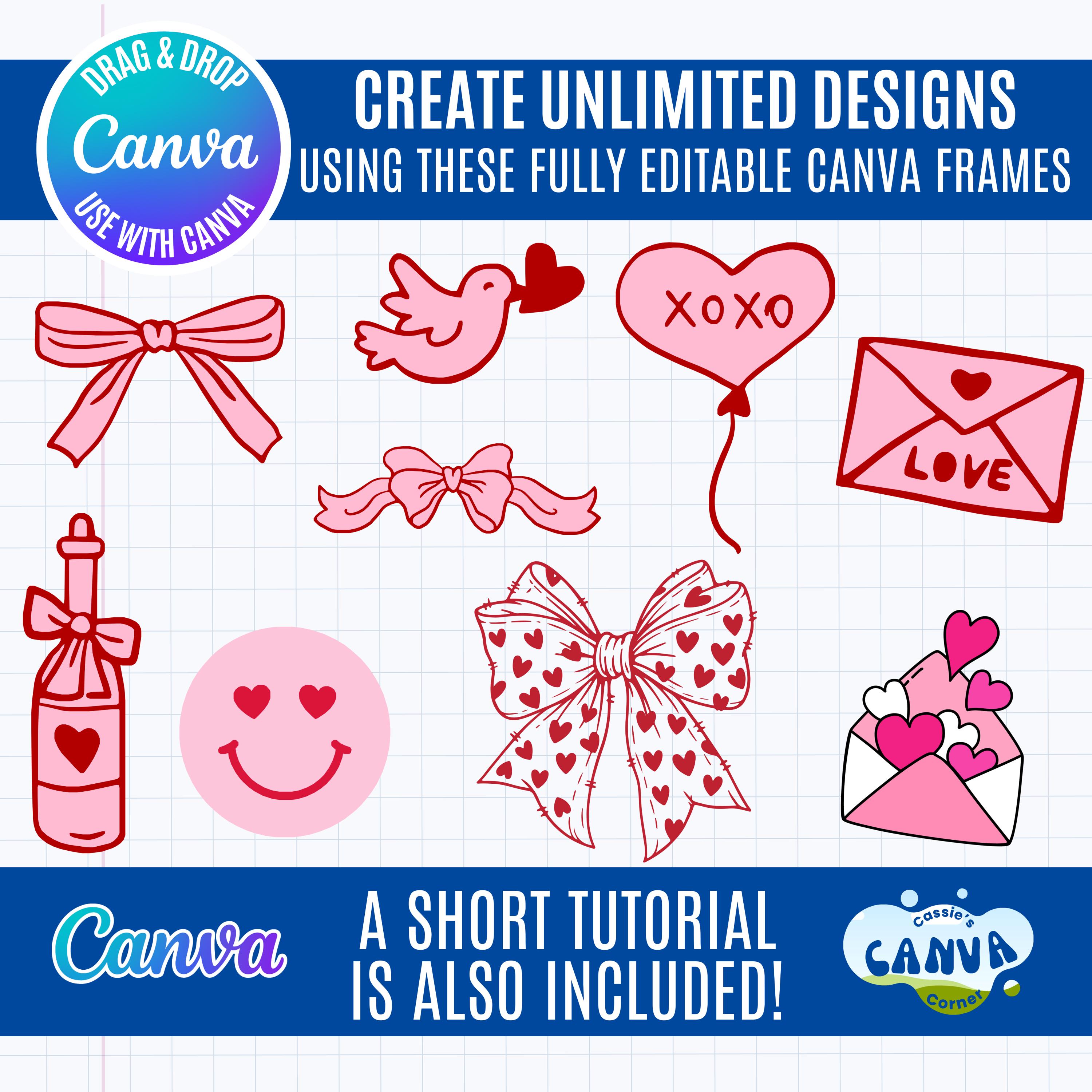 This bundle includes a variety of Valentine-themed designs, all fully editable in Canva—no design experience needed!