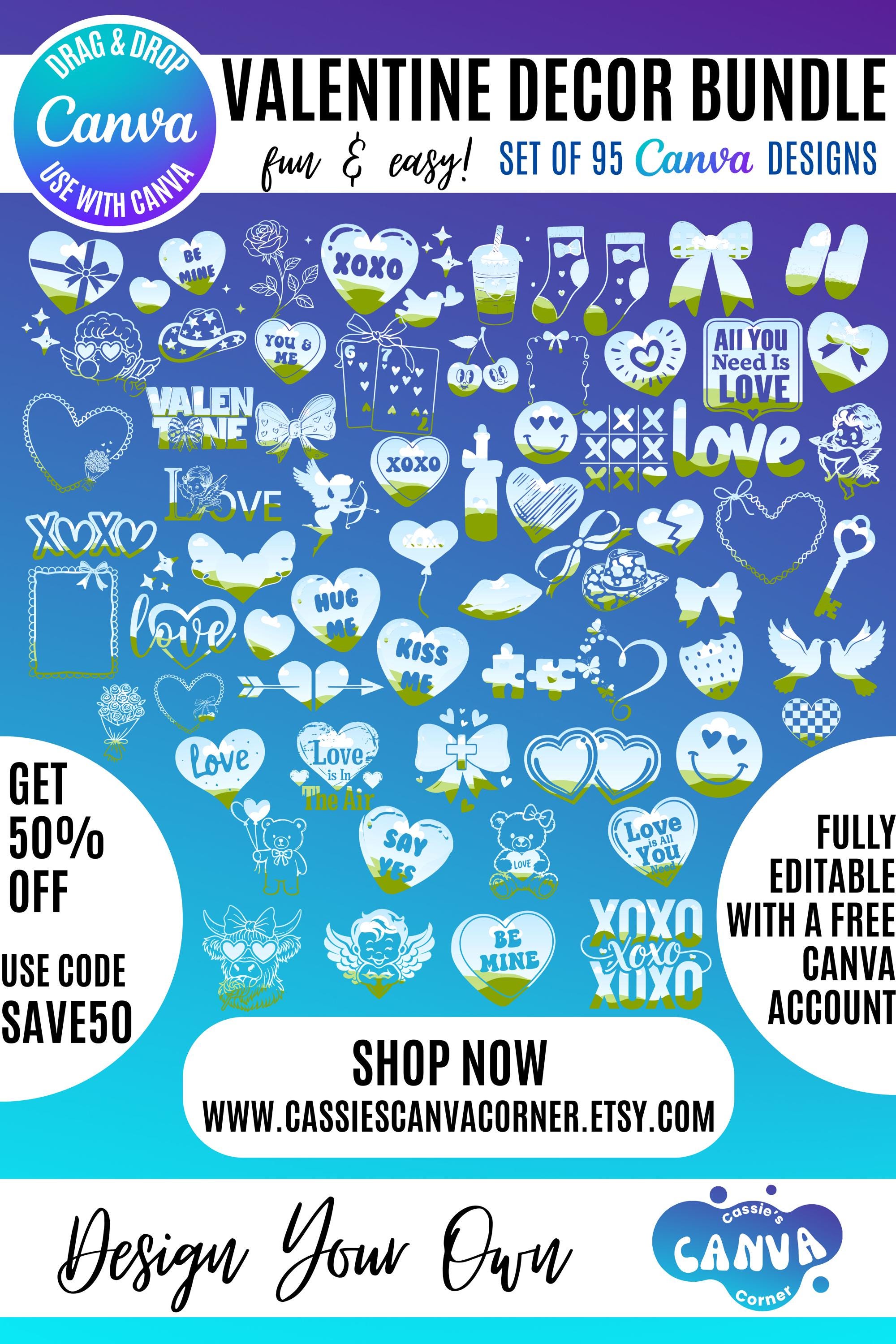 💖 Valentine Canva Bundle | 95 Valentine’s Day Designs | Editable Canva Templates | Cards, Posters, Social Media & More 💕