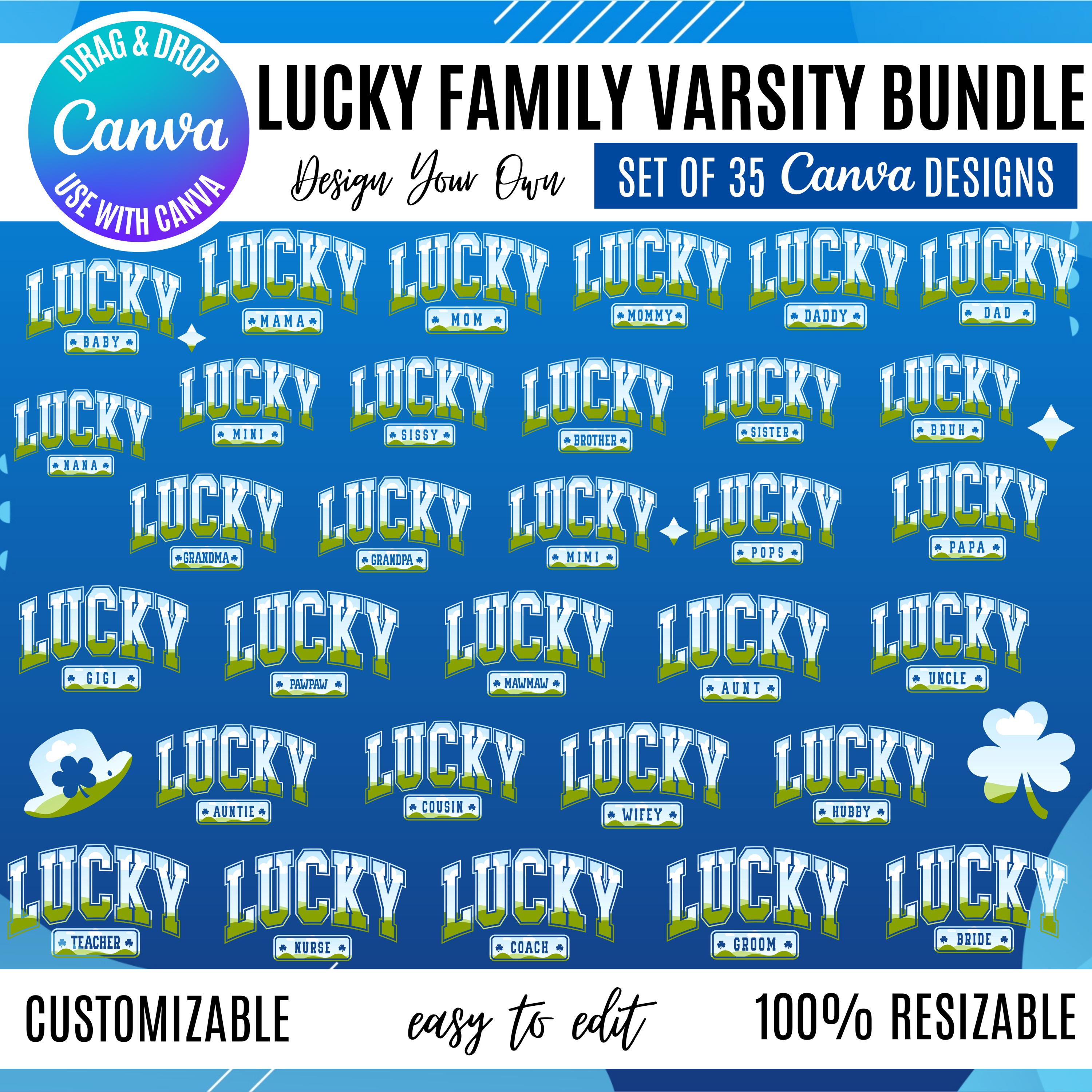 Lucky Family Varsity Canva Bundle | Saint Patrick’s Day Designs | Lucky Mama Dad Mini | St. Patrick’s Day Family Shirts