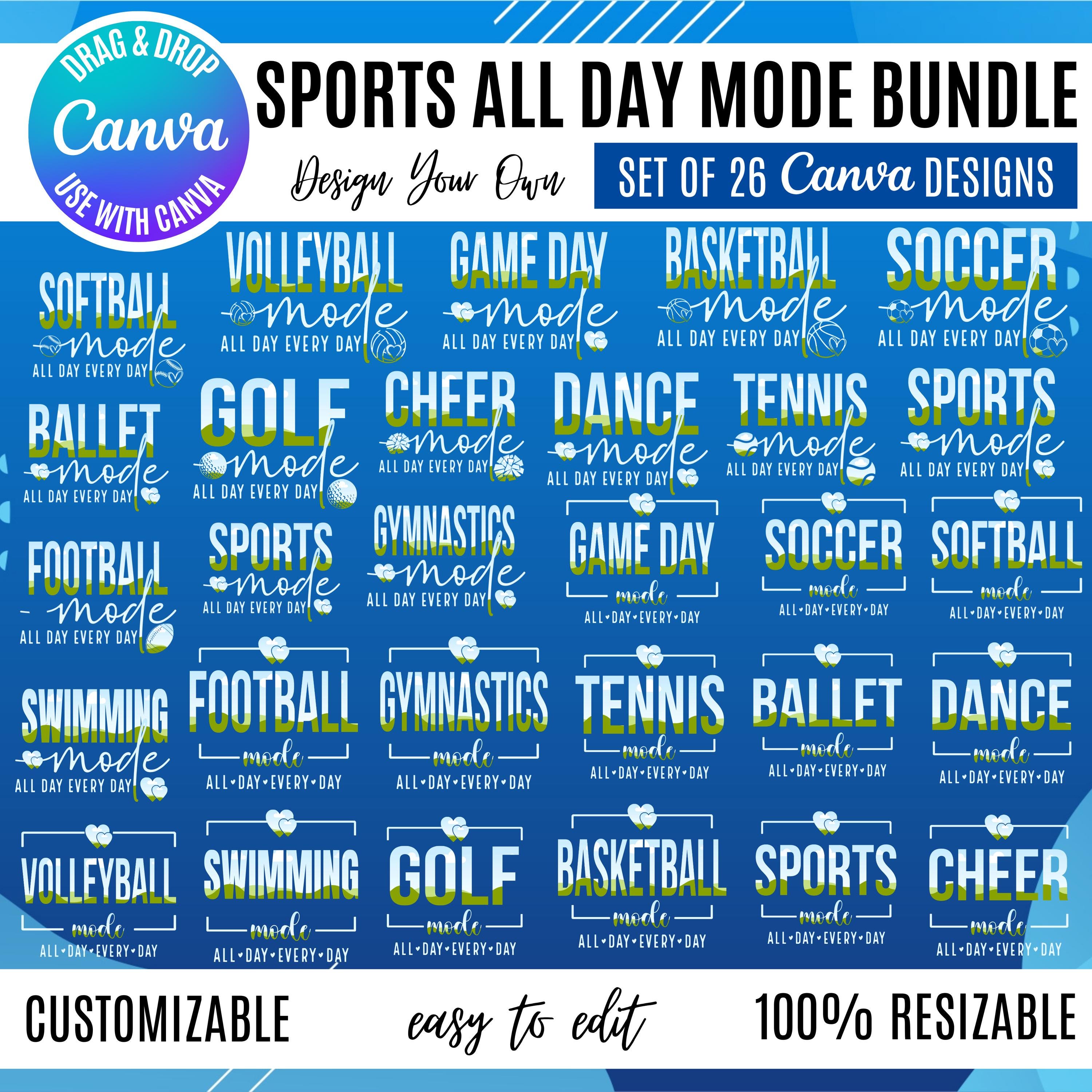 Sports Mode All Day Every Day Canva Bundle | 14 Sports Designs | 2 Style Options | Sports Mom, Game Day, Team Spirit Graphics
