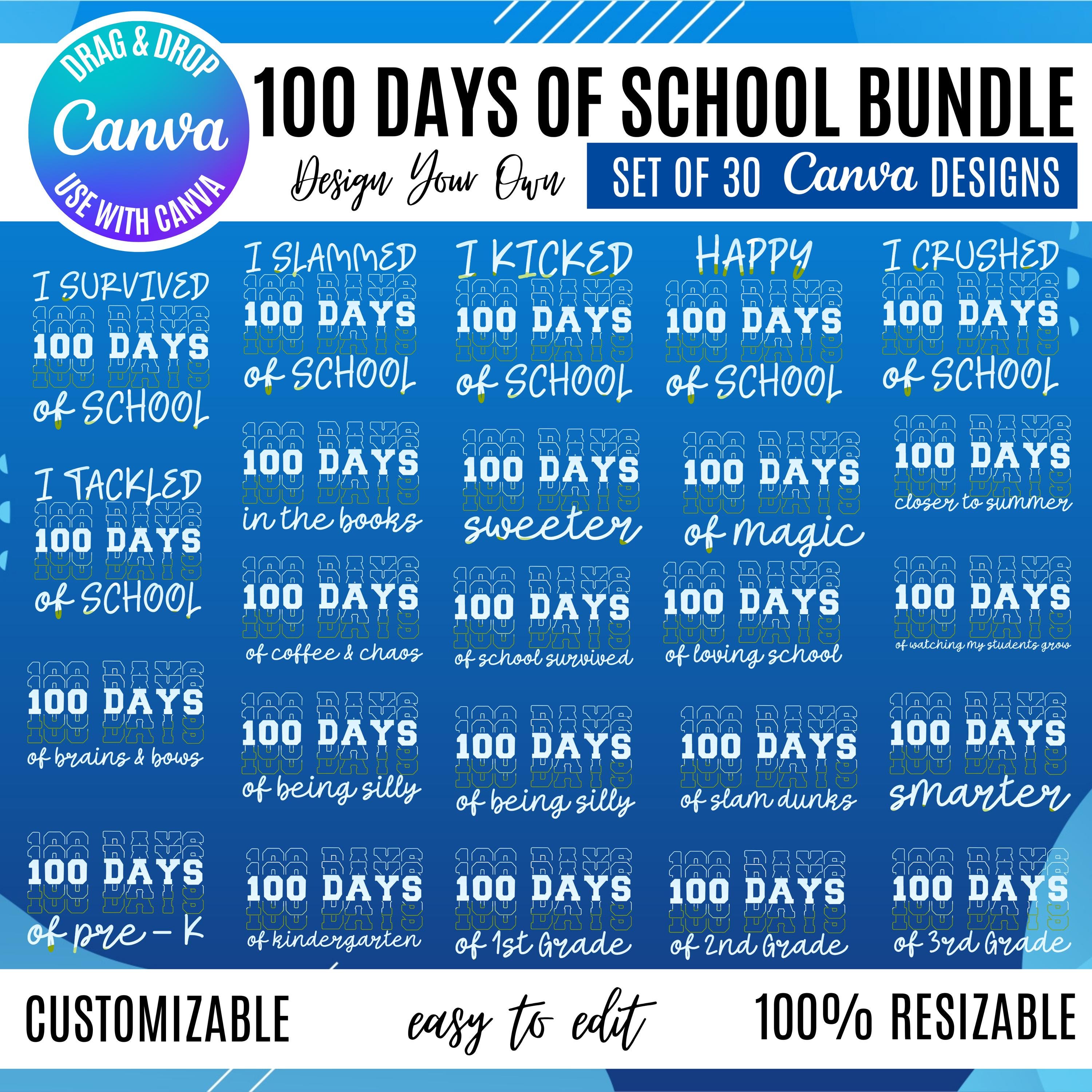 100 Days of School Canva Bundle, Teacher Student Graphics (Digital Download), Canva School bundle