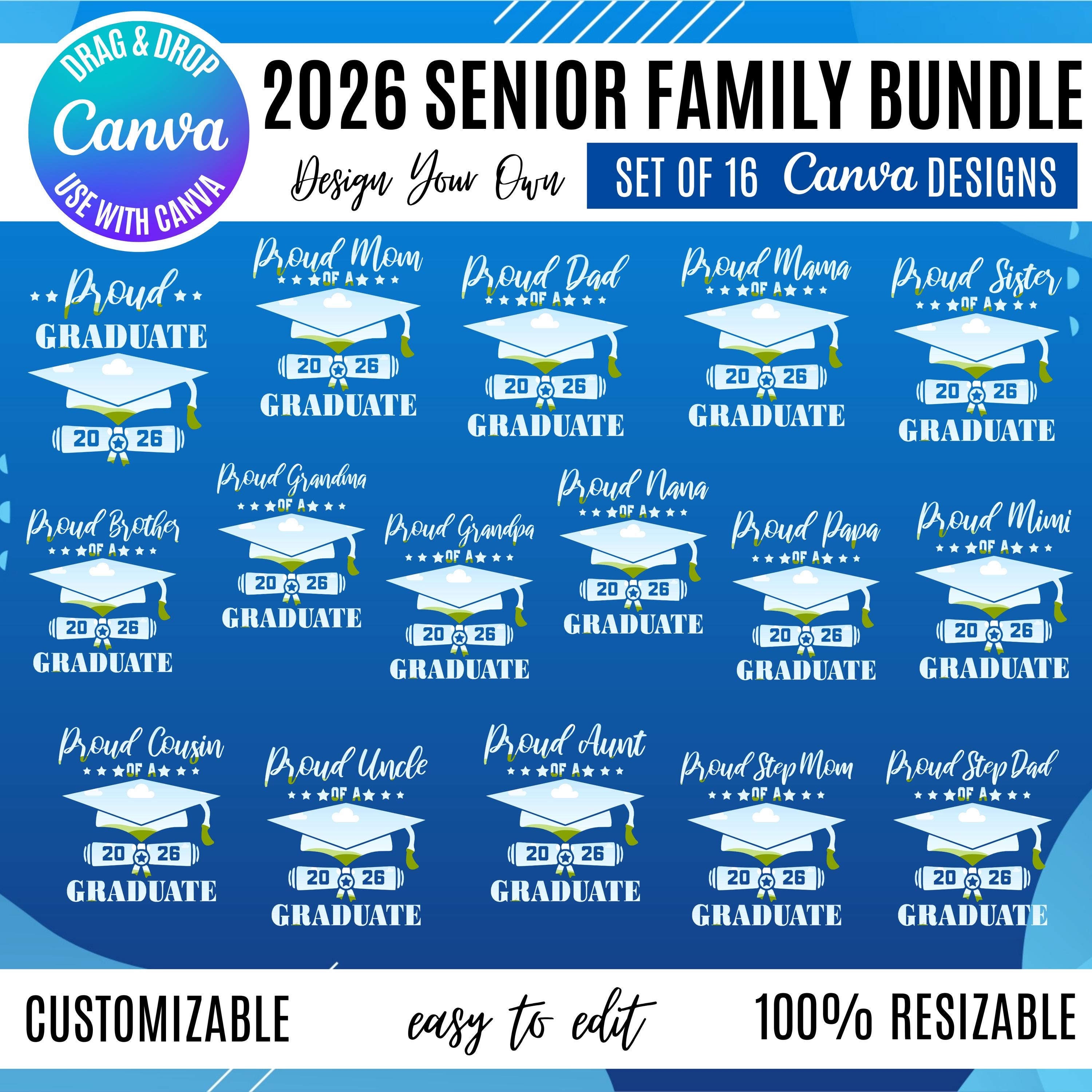 Class of 2026 Senior Family Canva Bundle | Proud Mom Dad Grandma 2026 Senior | Graduation Digital Designs