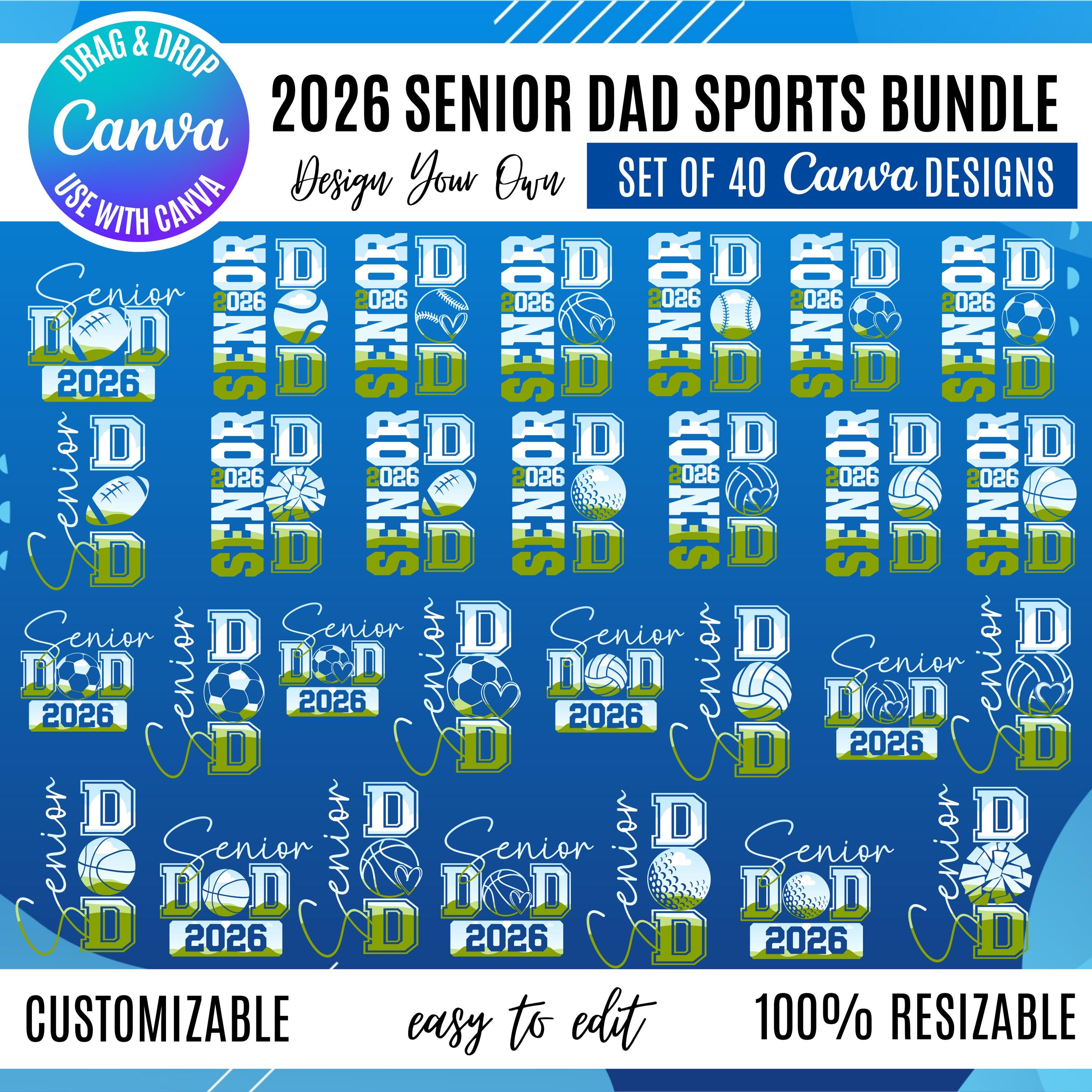2026 Senior Sports Dad Canva Bundle | Class of 2026 Volleyball Basketball Football Cheer Softball Designs