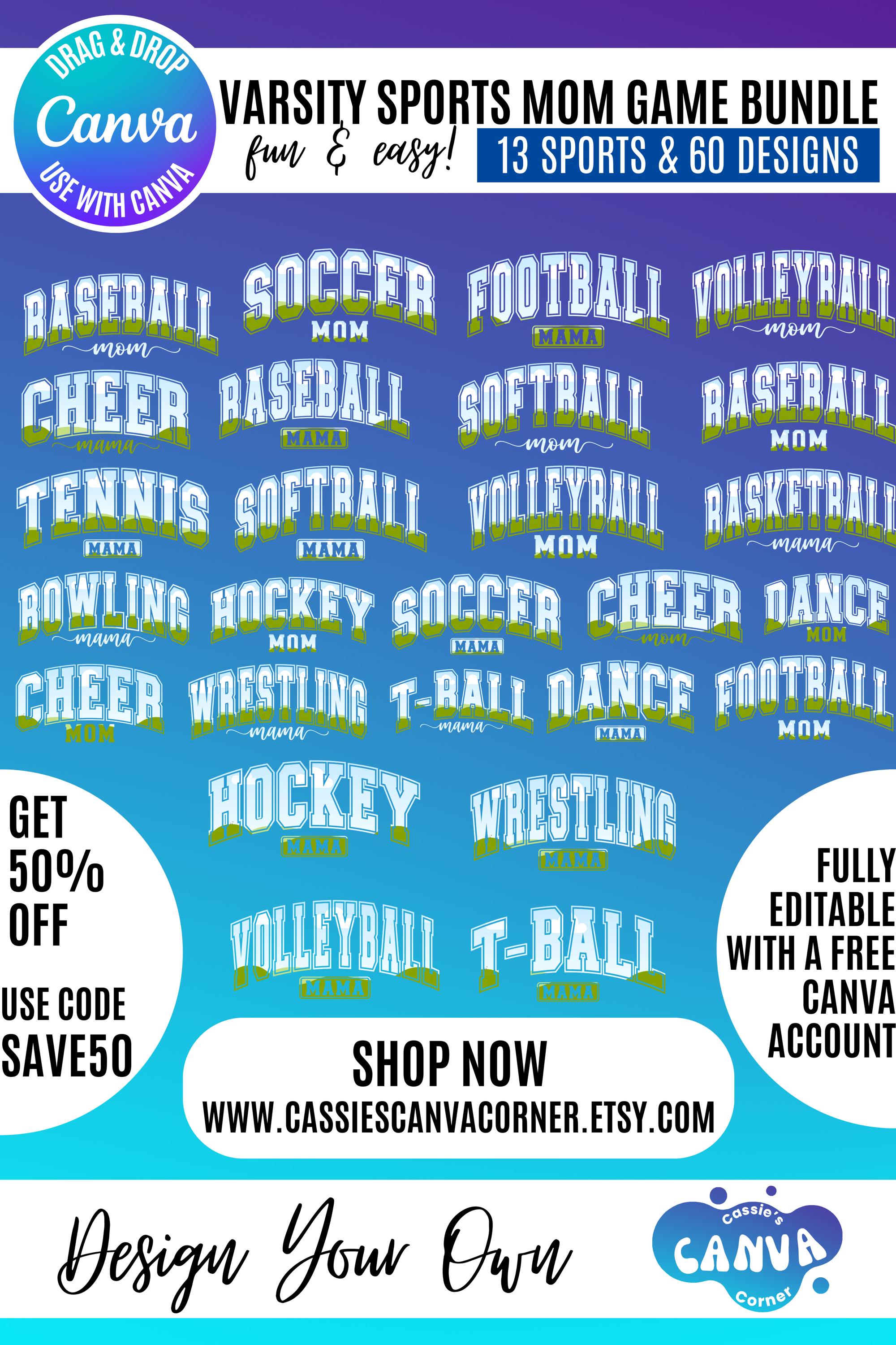 Celebrate proud Sports Moms in style with this Varsity Sports Mom Canva Bundle! 🎉