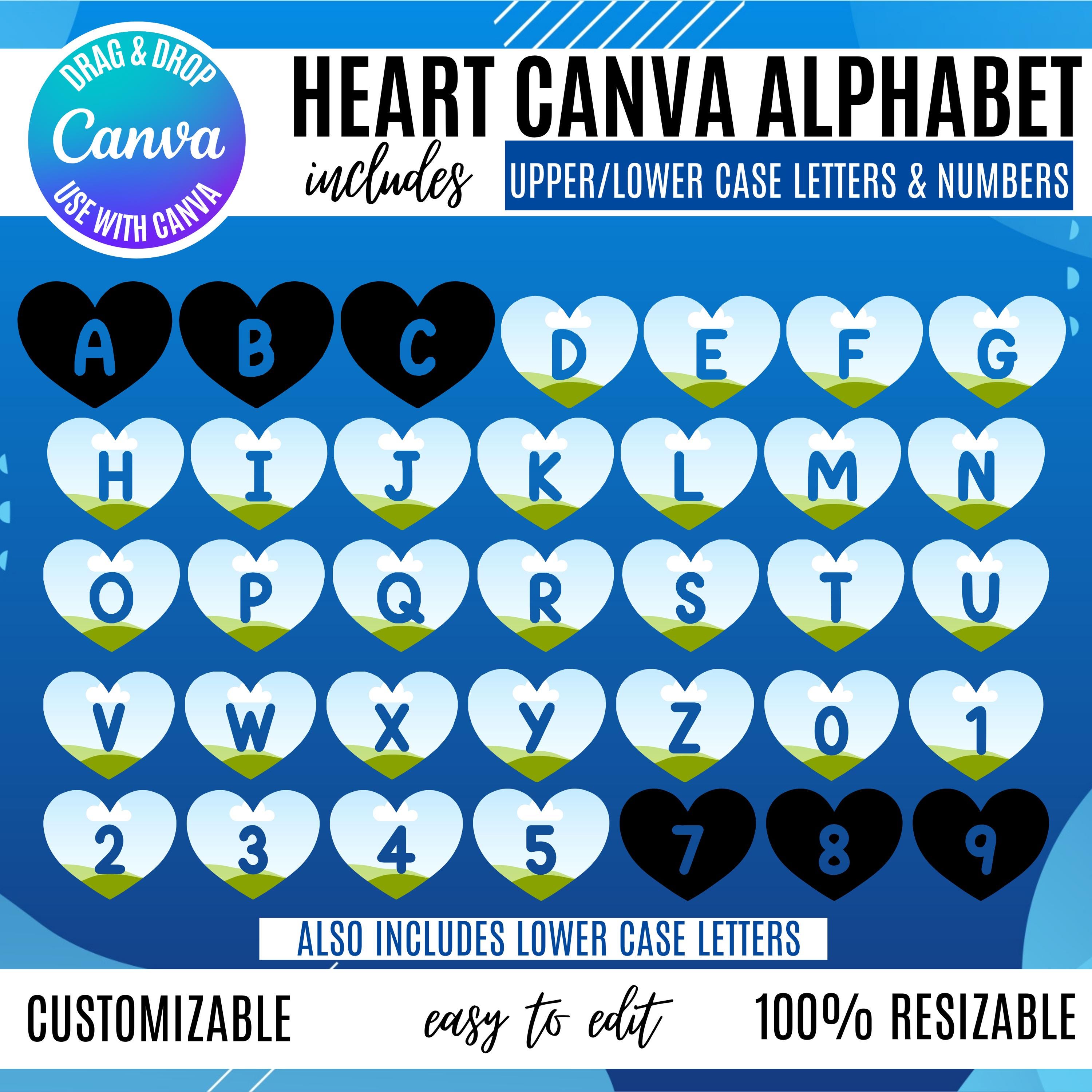 Heart Alphabet Letters & Numbers Canva Bundle | Uppercase & Lowercase Heart Font | Love Letter Alphabet | DIY Valentine Design Set