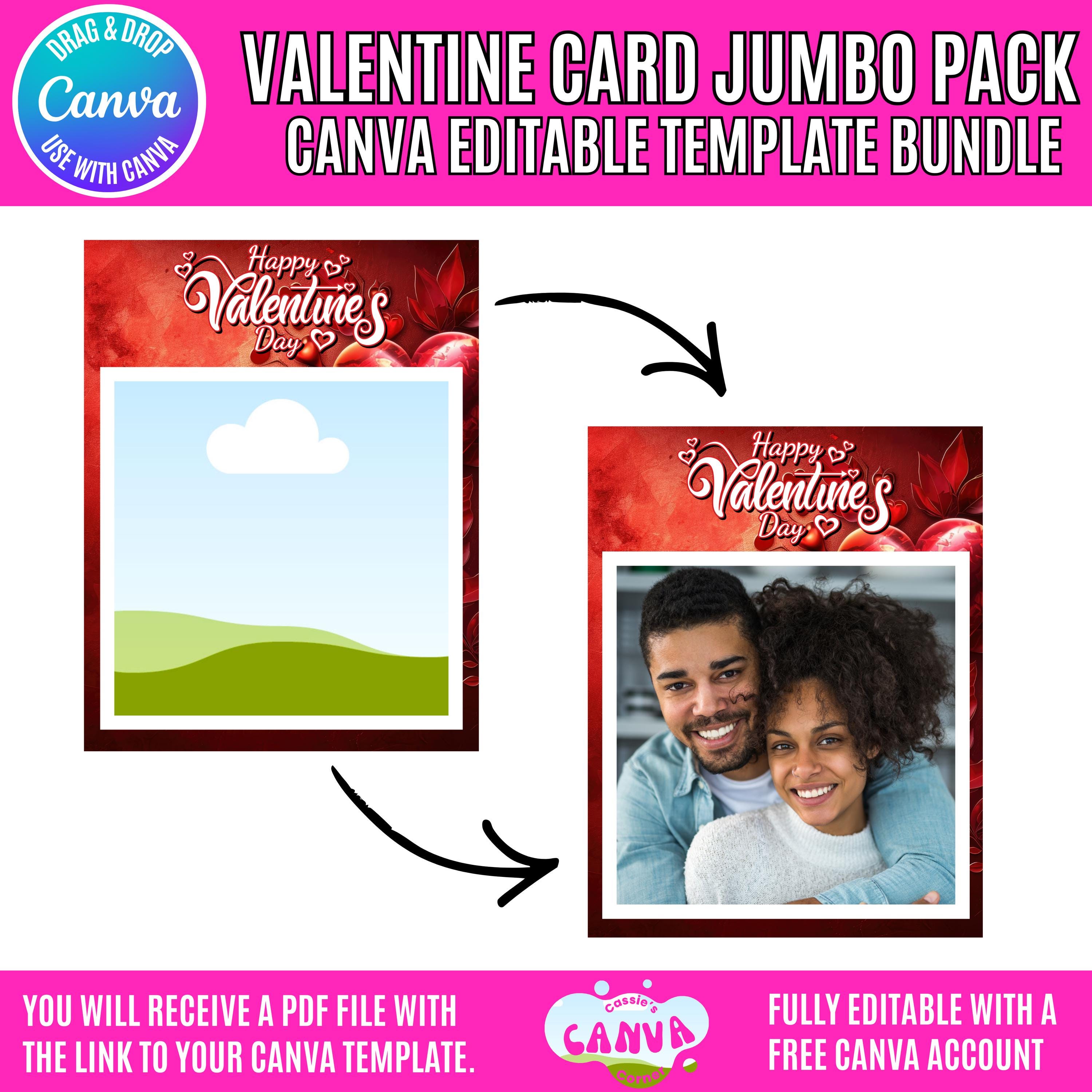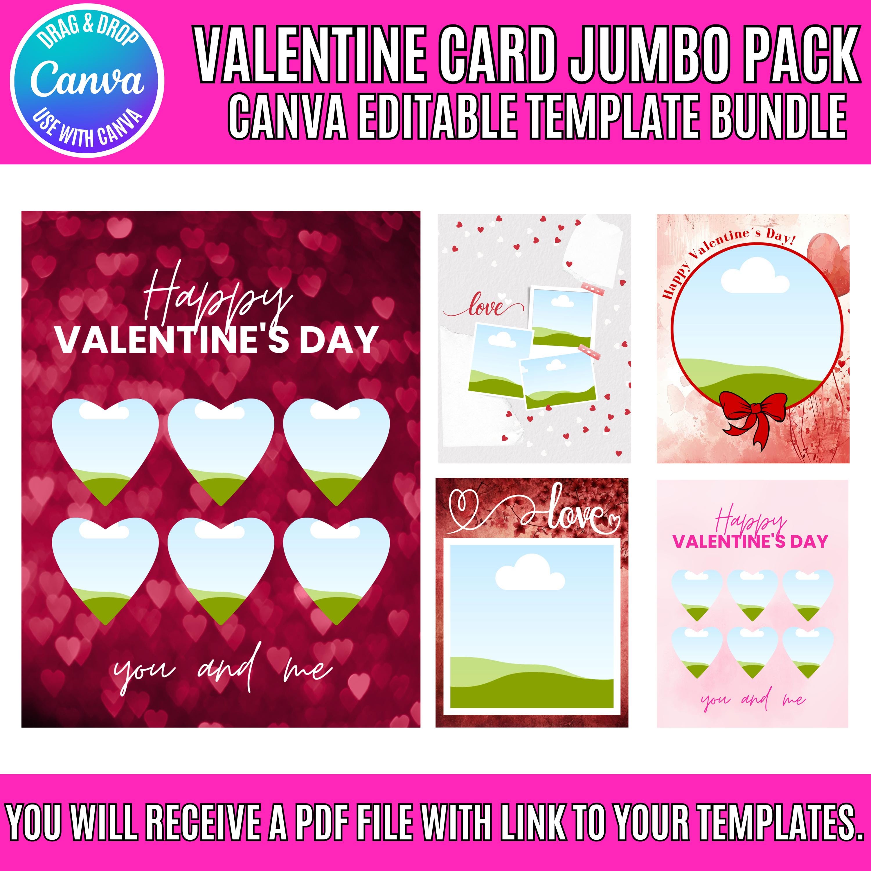 Valentine Photo Card Canva Bundle | 1–12 Photo Placeholders | Editable Valentine’s Day Cards | DIY Printable & Digital Templates, Valentine Jumbo Pack Cards Canva Editable Template gift cards Custom Photo Collage, Kids Classroom Valentine’s Day Treat Cards