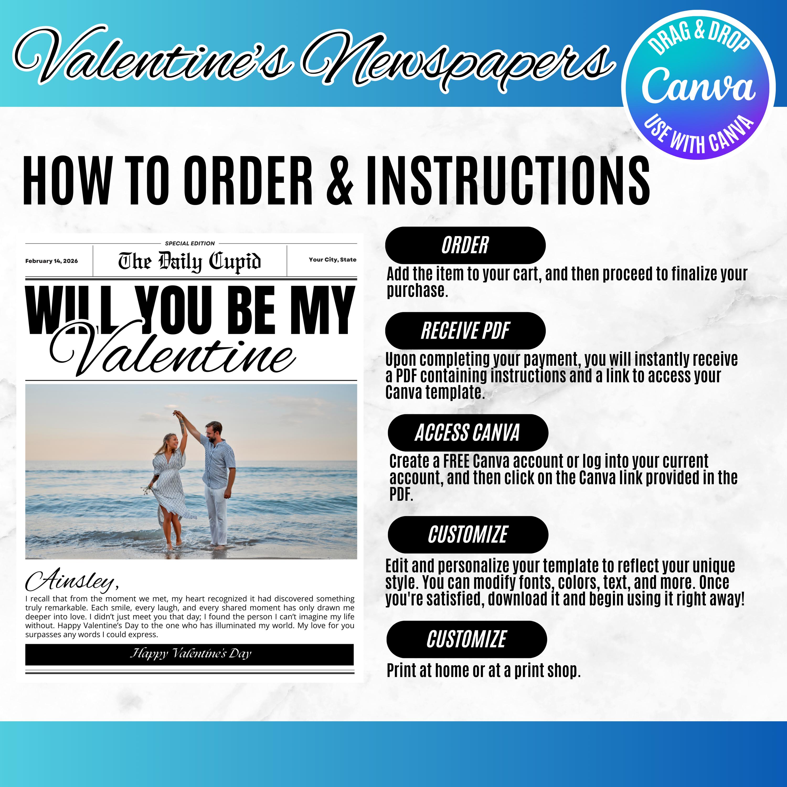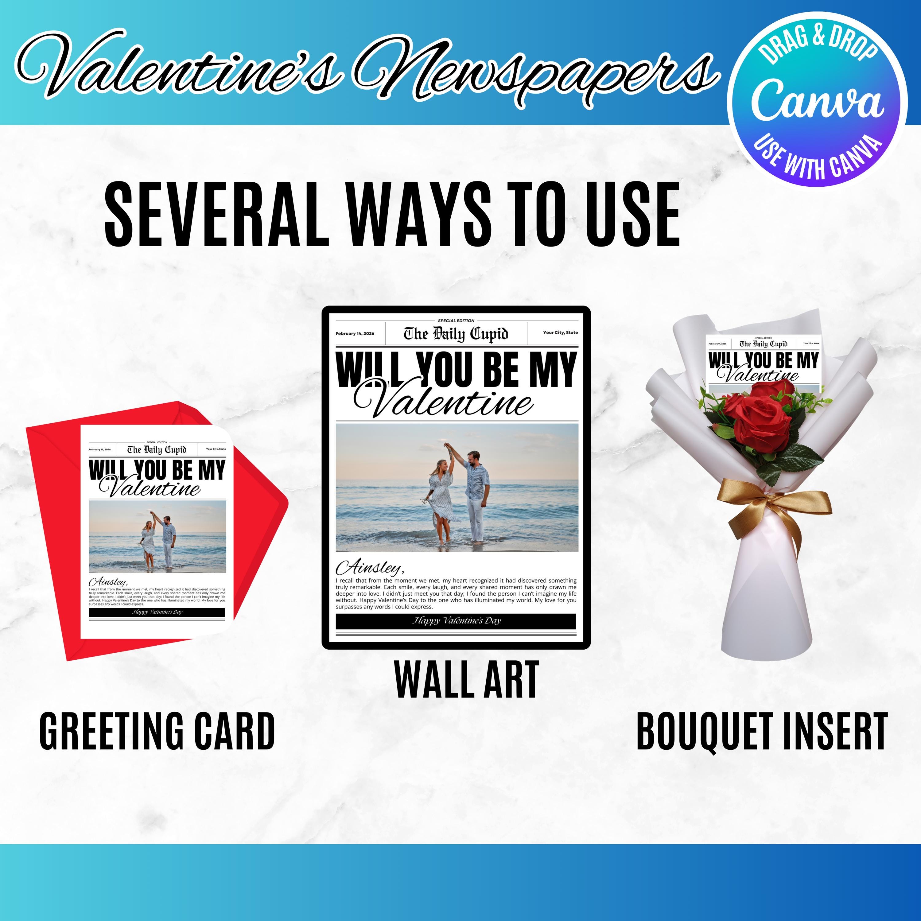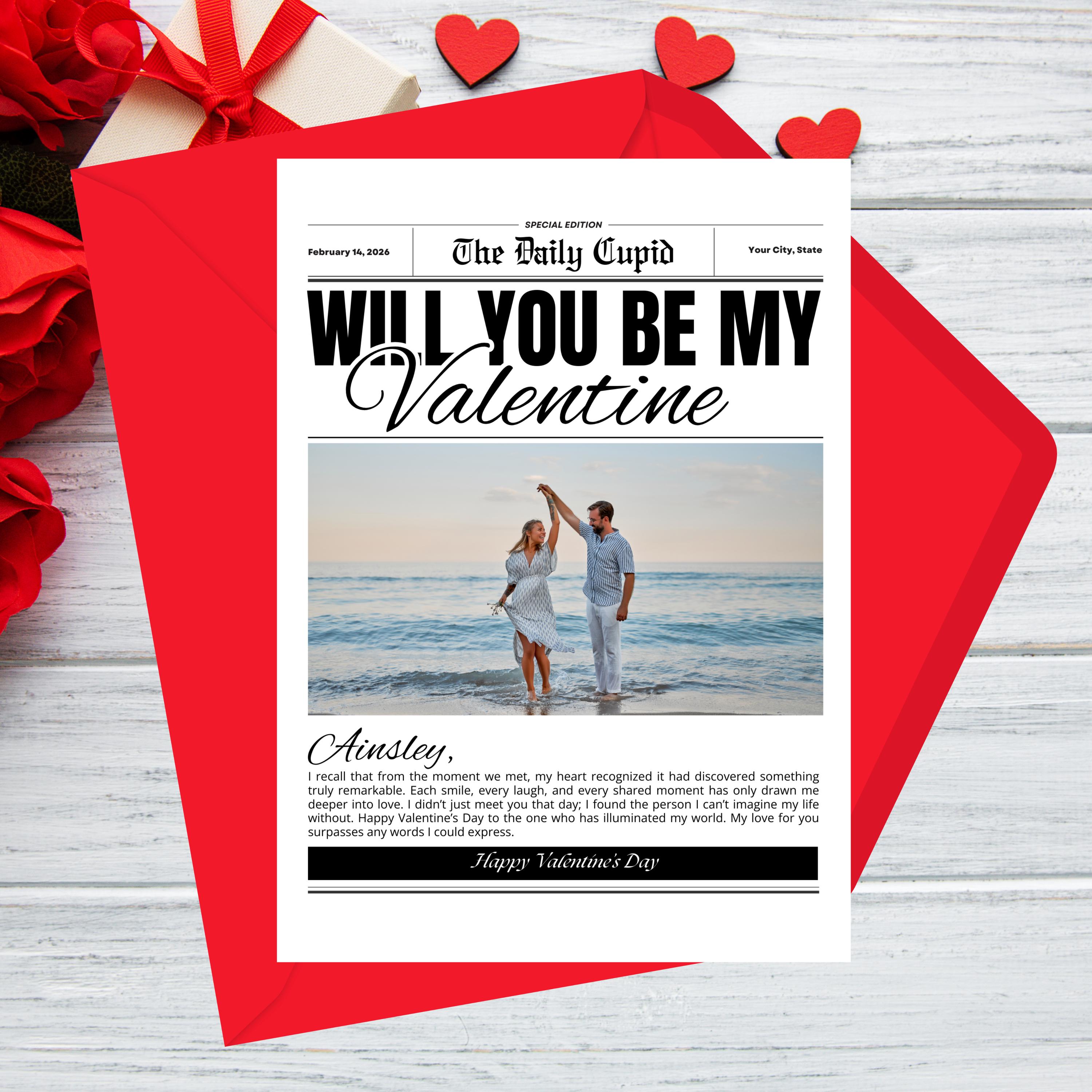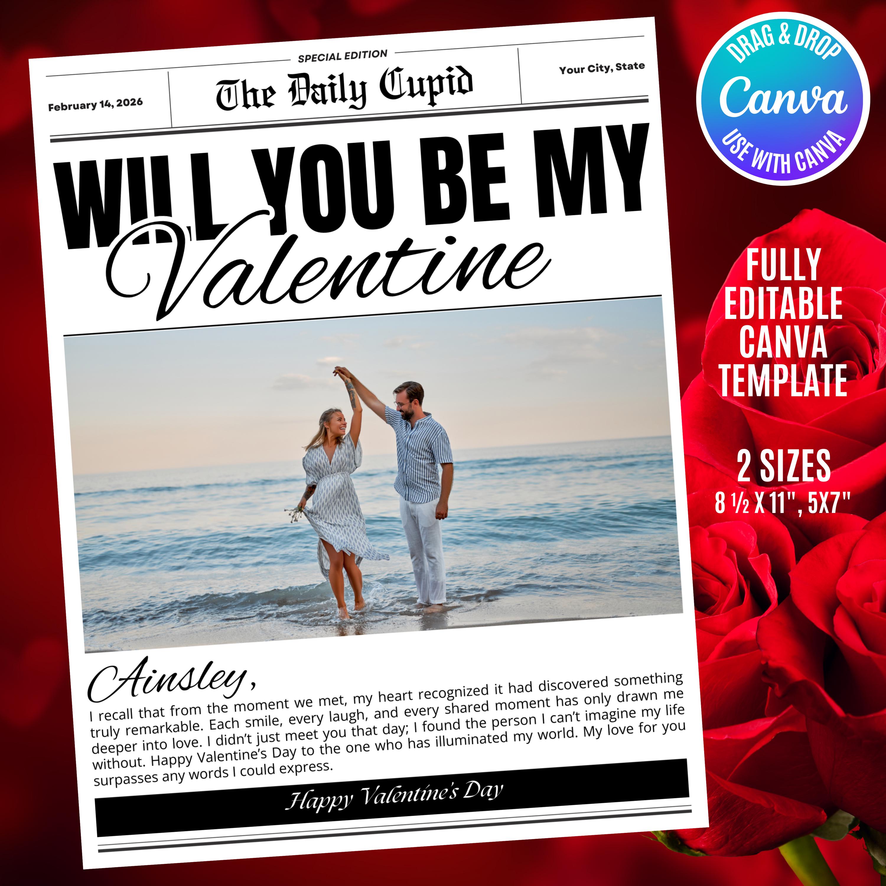 Personalized Will You Be My Valentine Newspaper Template, Galentine’s Day Newspaper, DIY Valentine Gift, Editable Canva Design, PDF Download