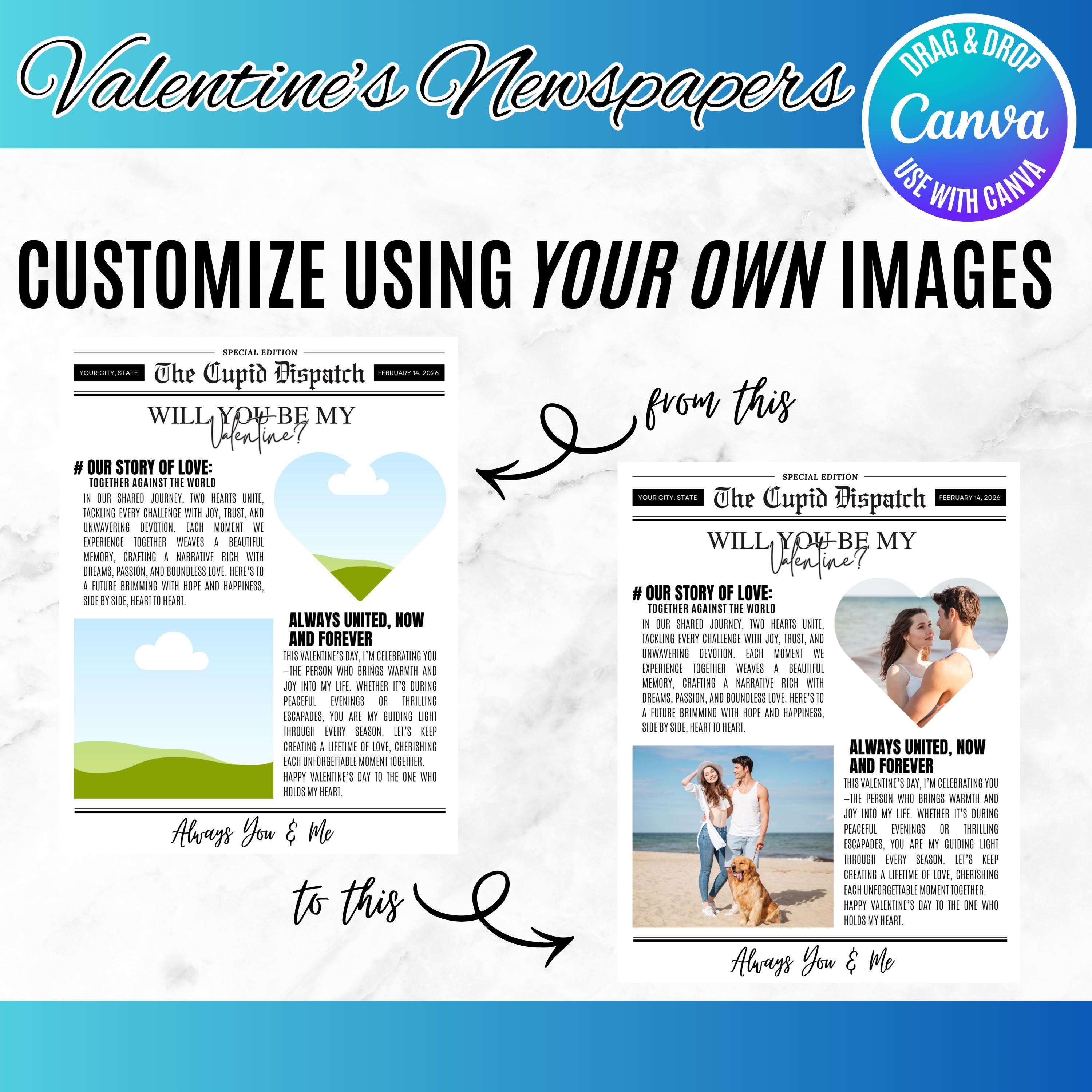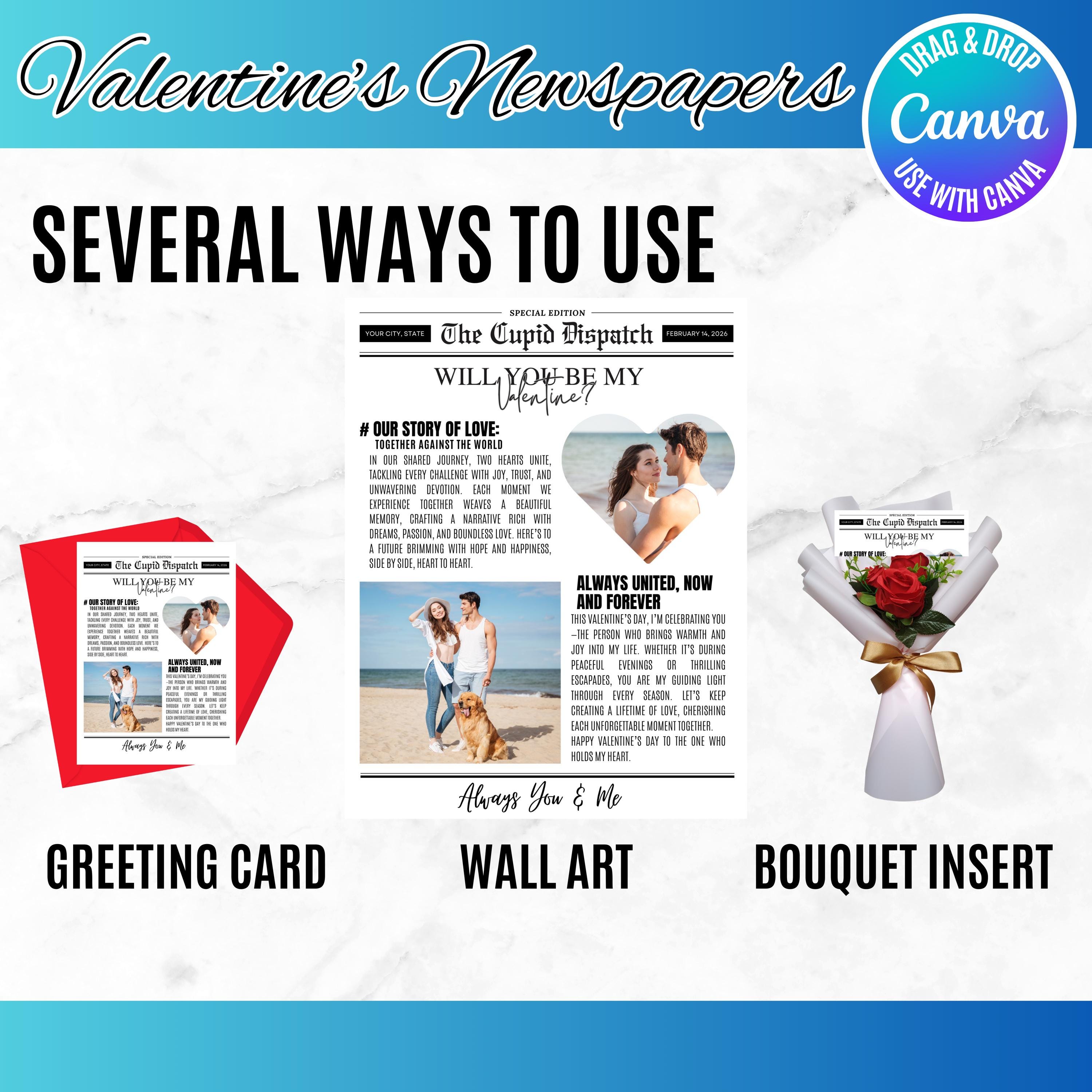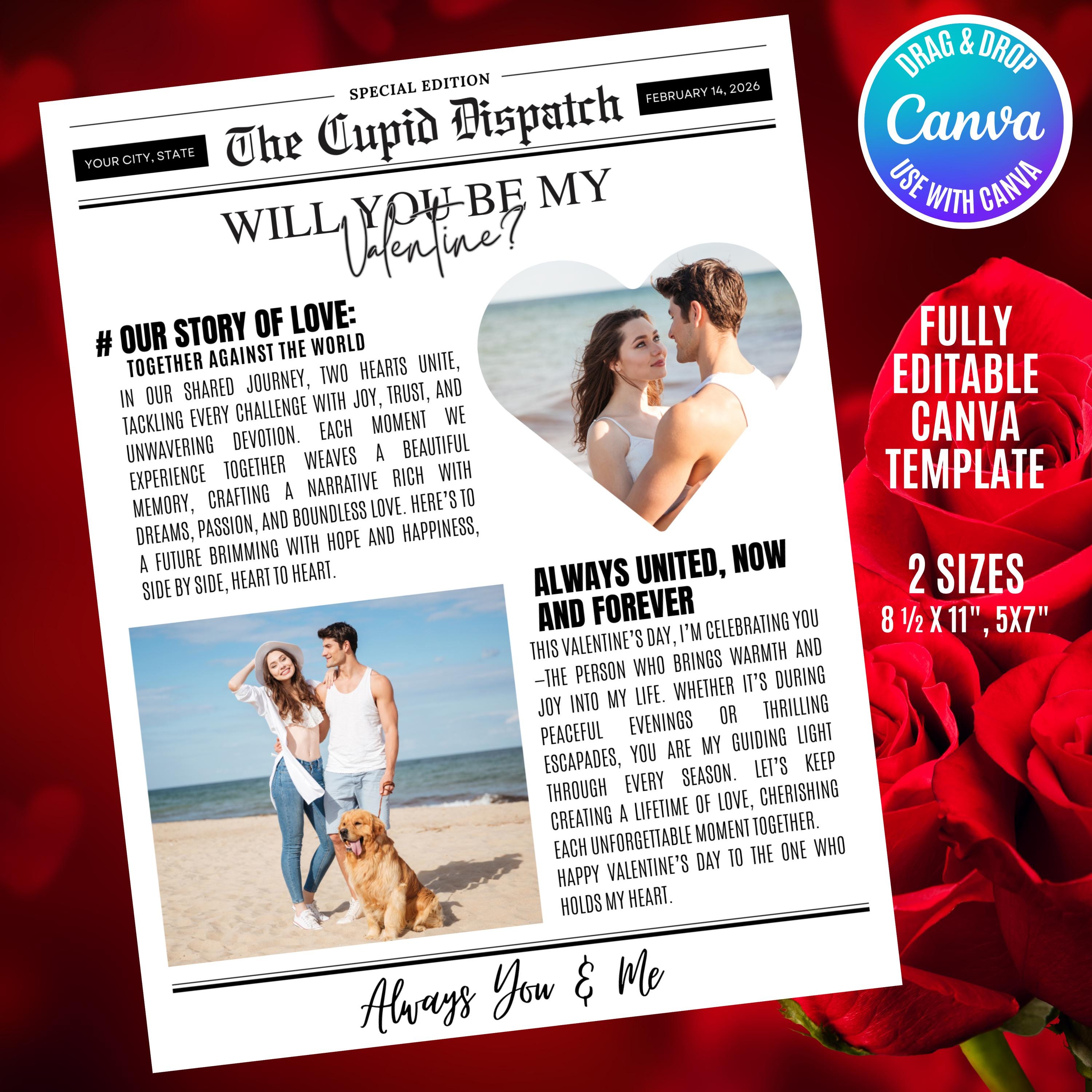 Personalized Will You Be My Valentine Newspaper Template, Galentine’s Day Newspaper, DIY Valentine Gift, Editable Canva Design, PDF Download
