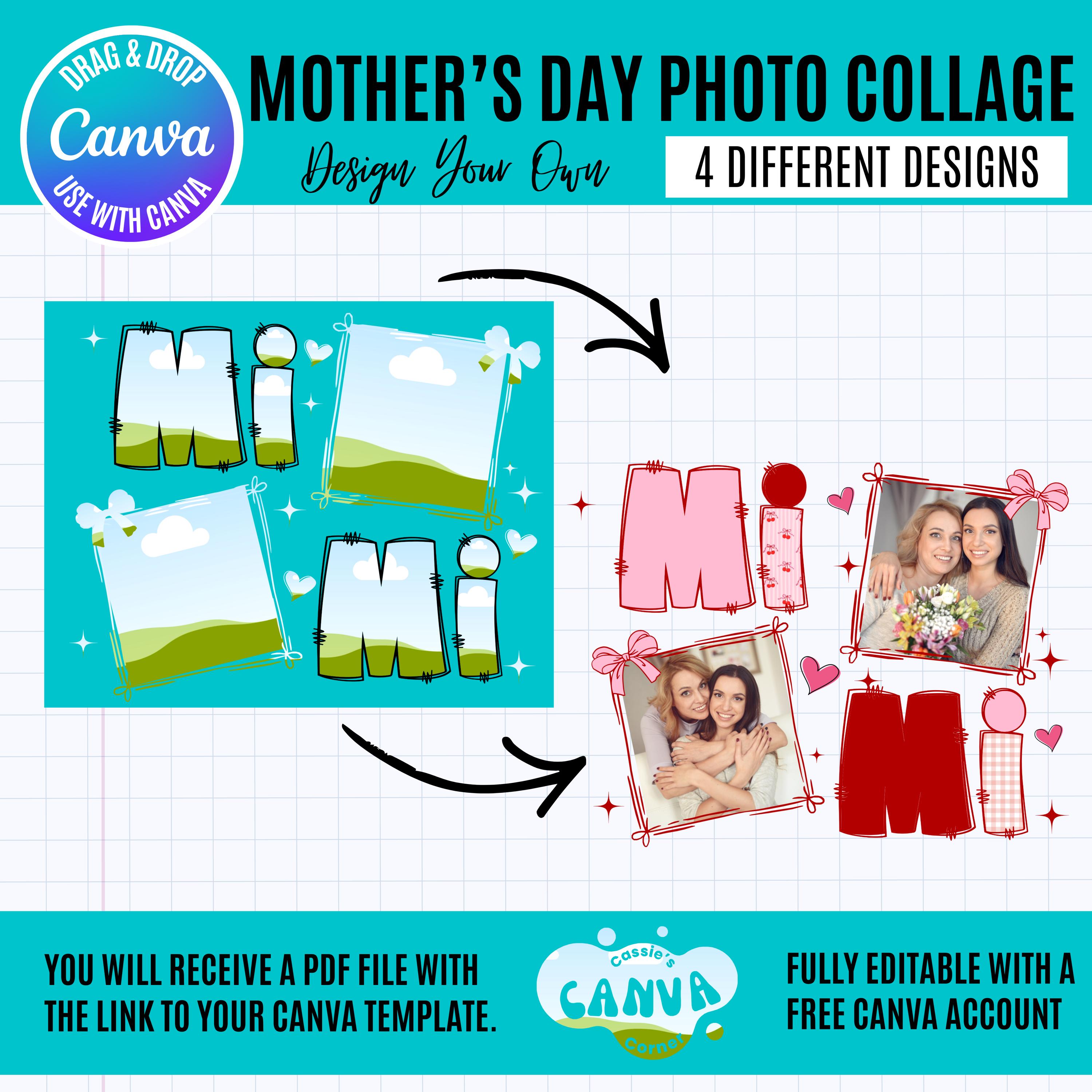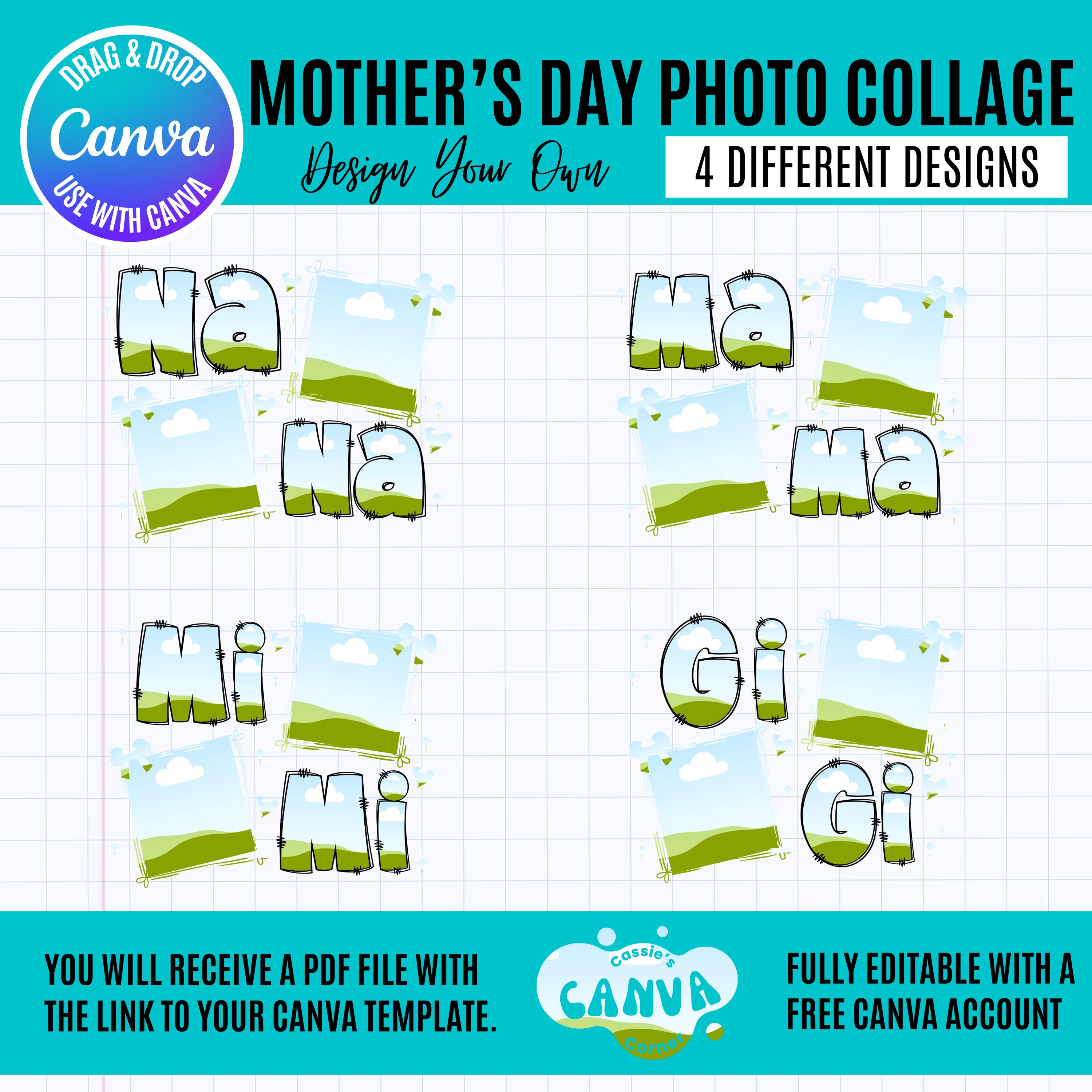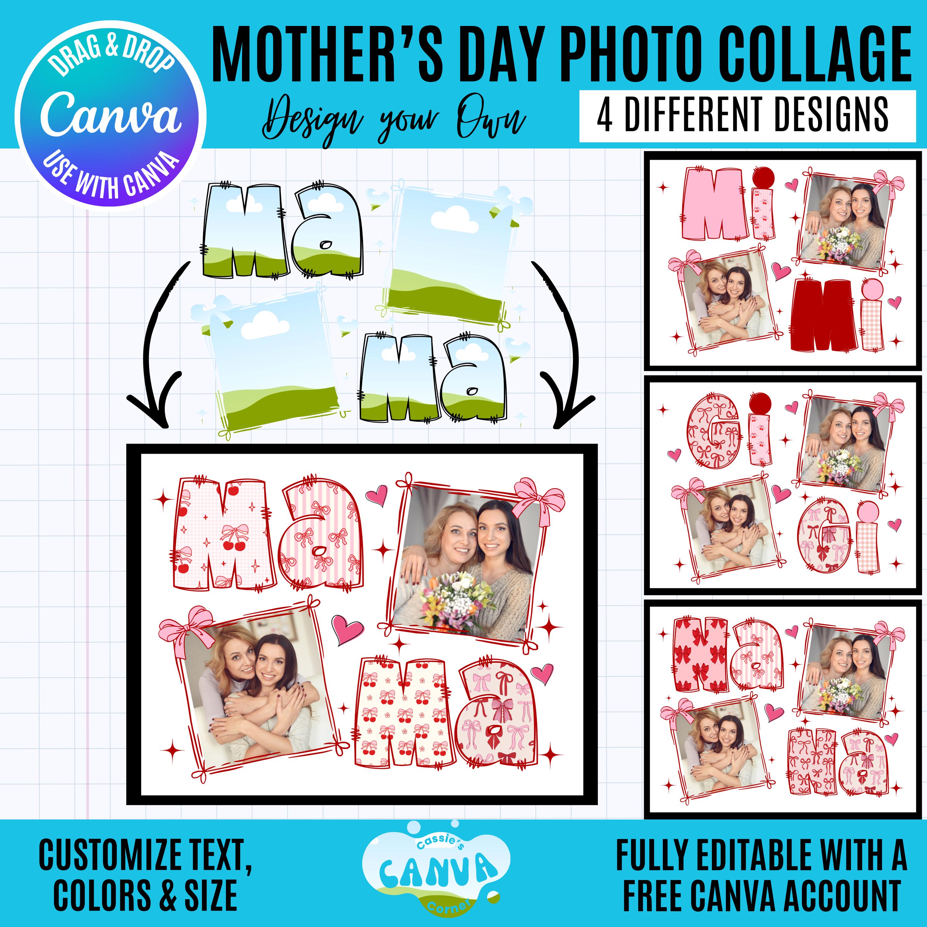 Mother’s Day Photo Collage Canva Bundle | Mama Gigi Nana Mimi | Canva Mom Coquette Photo Frames | Editable Mother’s Day Gift