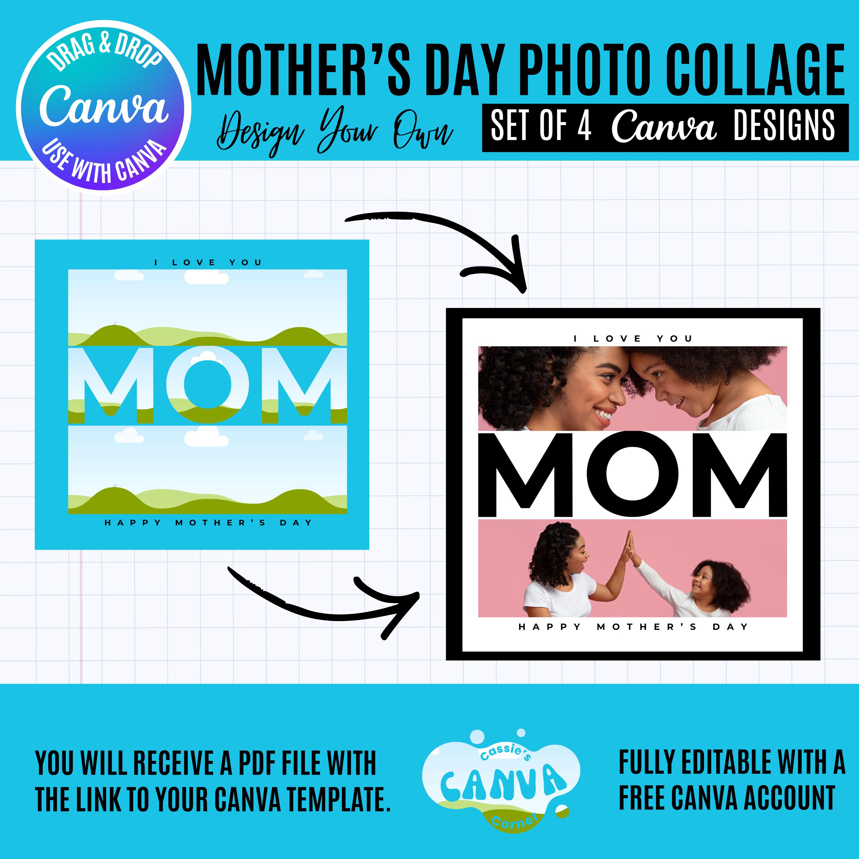 Mother’s Day Canva Photo Bundle, editable Mom Photo Template, Personalized Mother’s Day Gift, Custom Picture Collage for Mom, Canva Mom gift